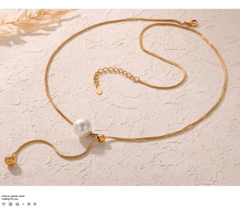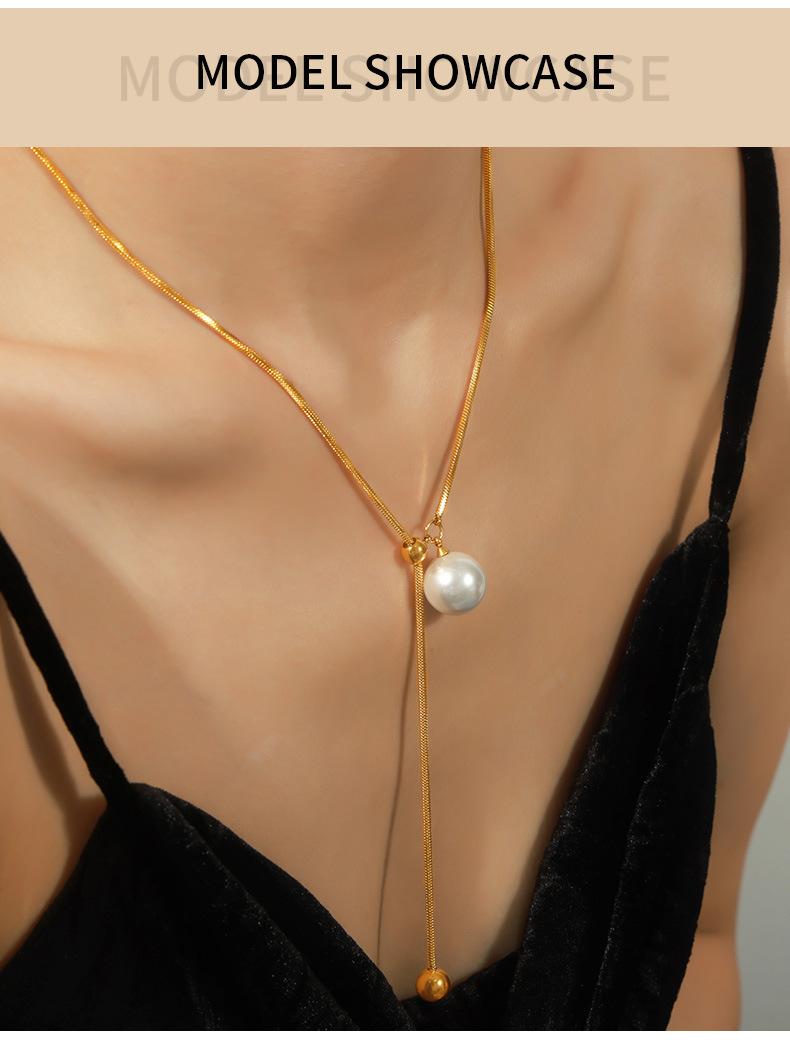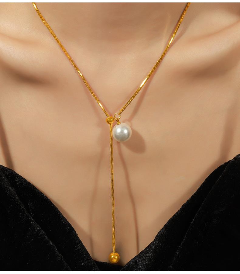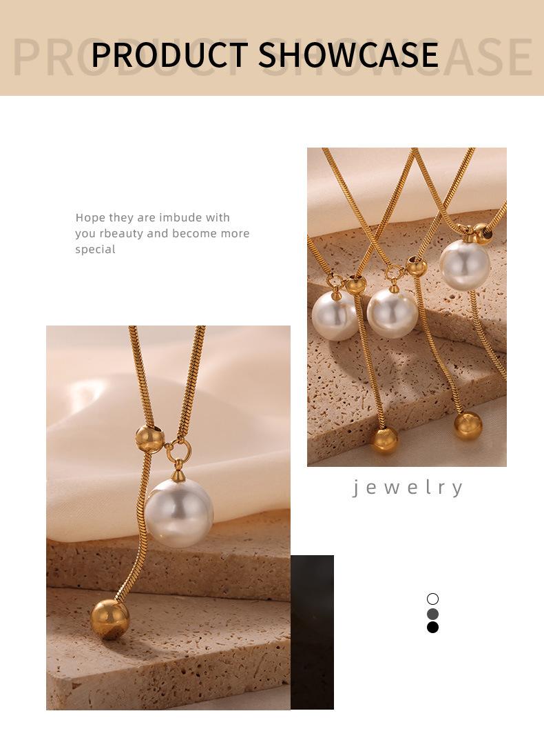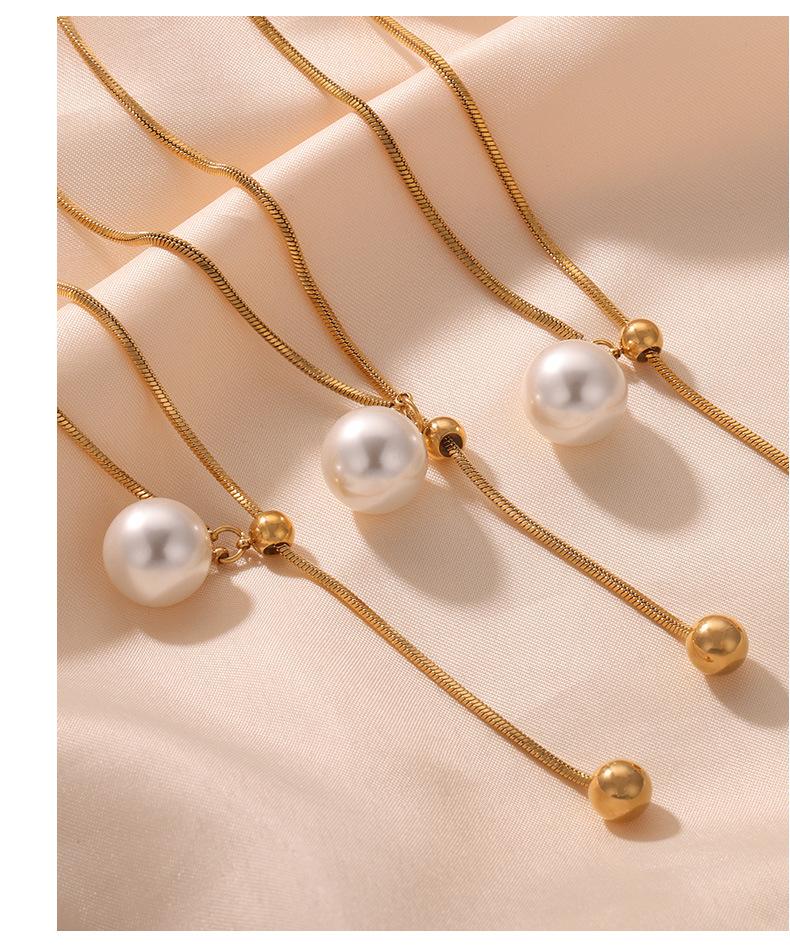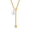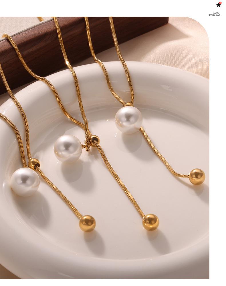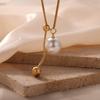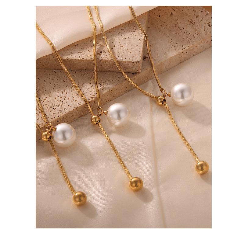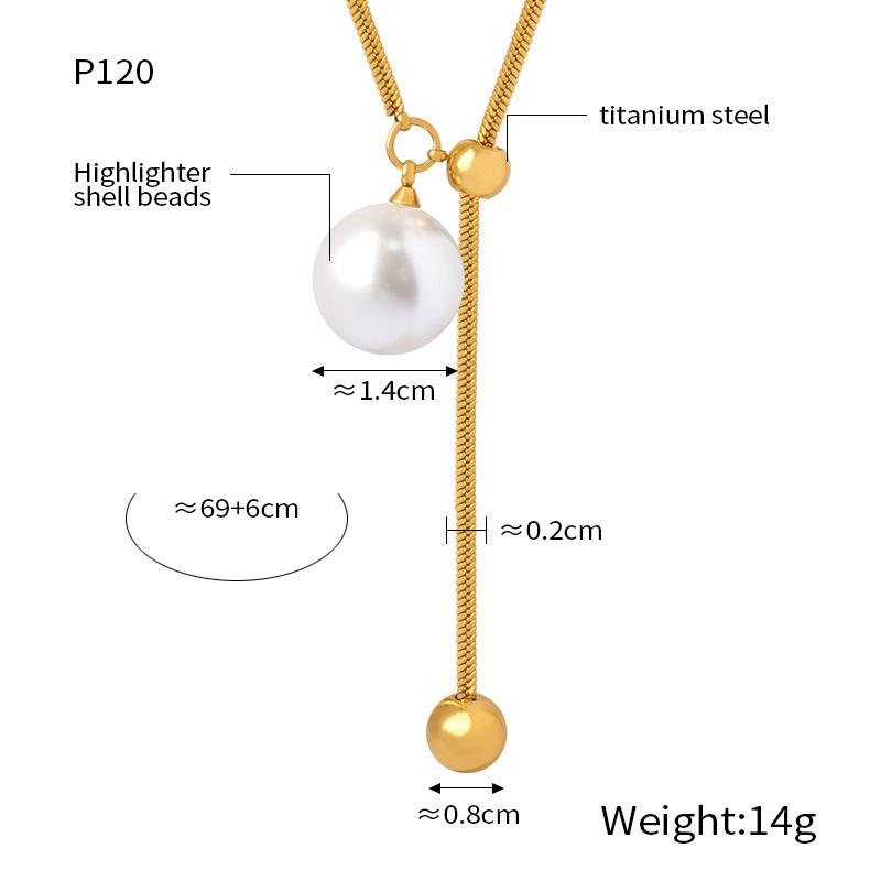 Nuevo collar de acero de titanio versátil de moda chapado en oro con colgante destacado de borla de cuentas redondas, collar de cuentas de concha, joyería al por mayor para mujer