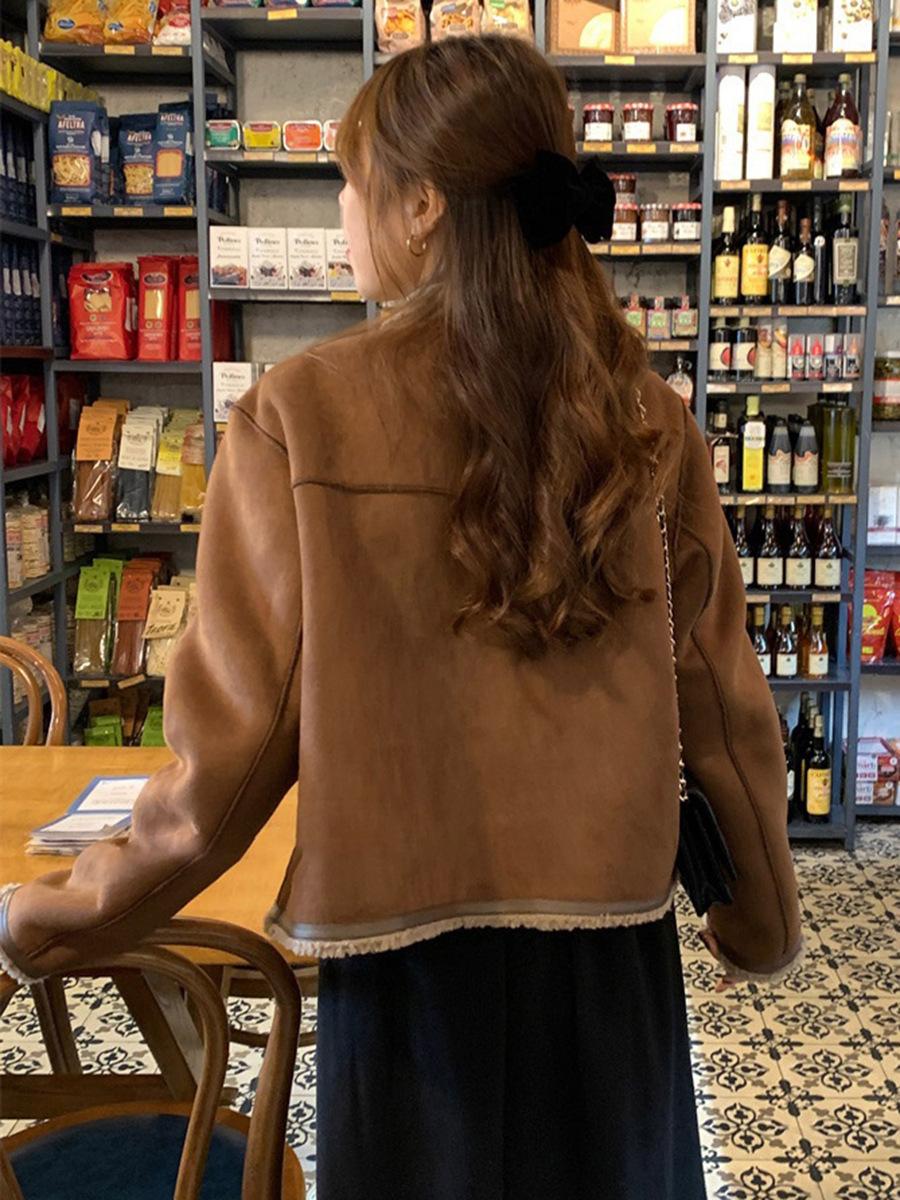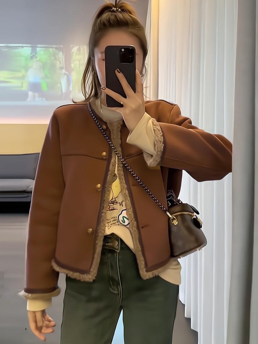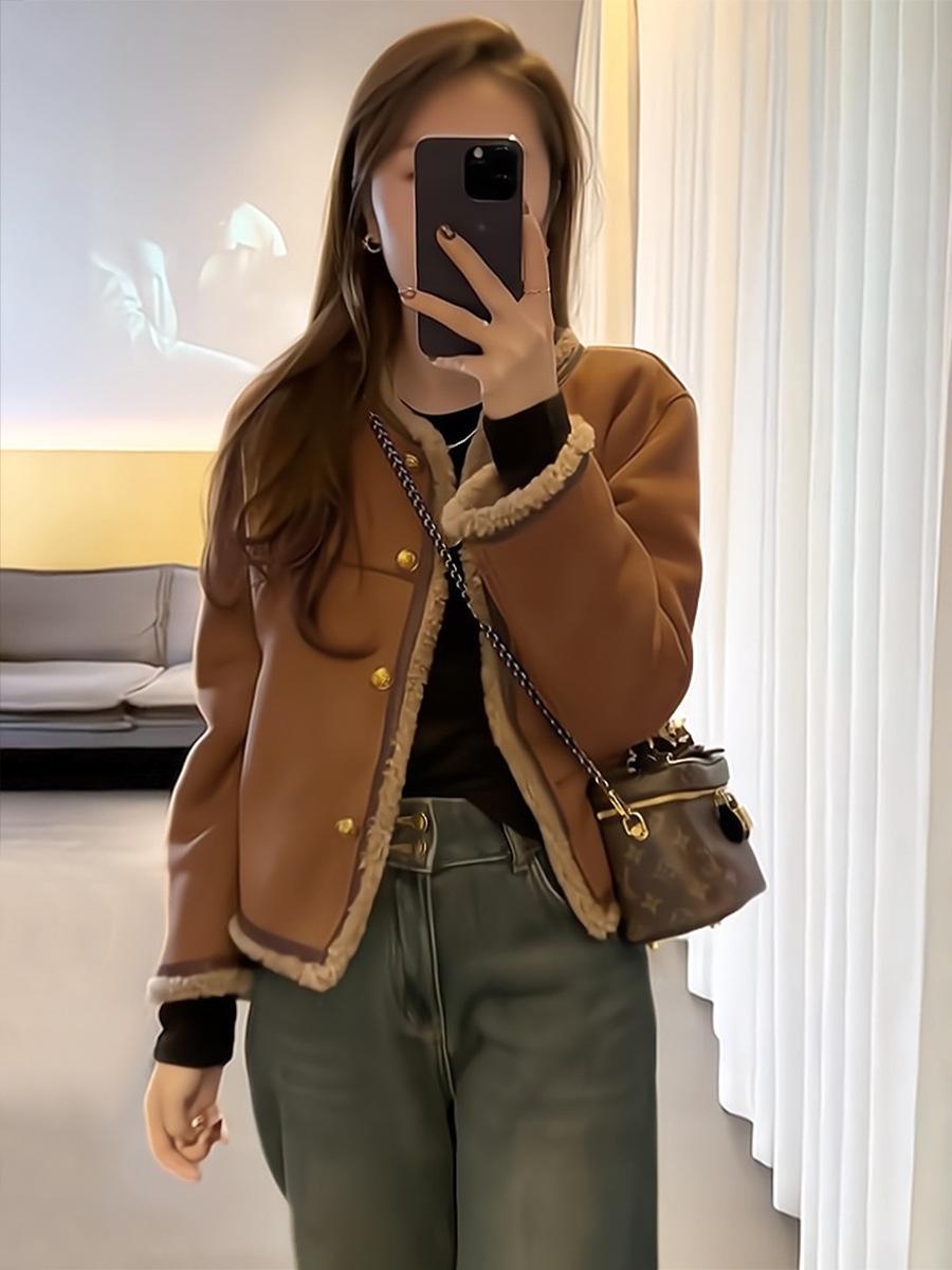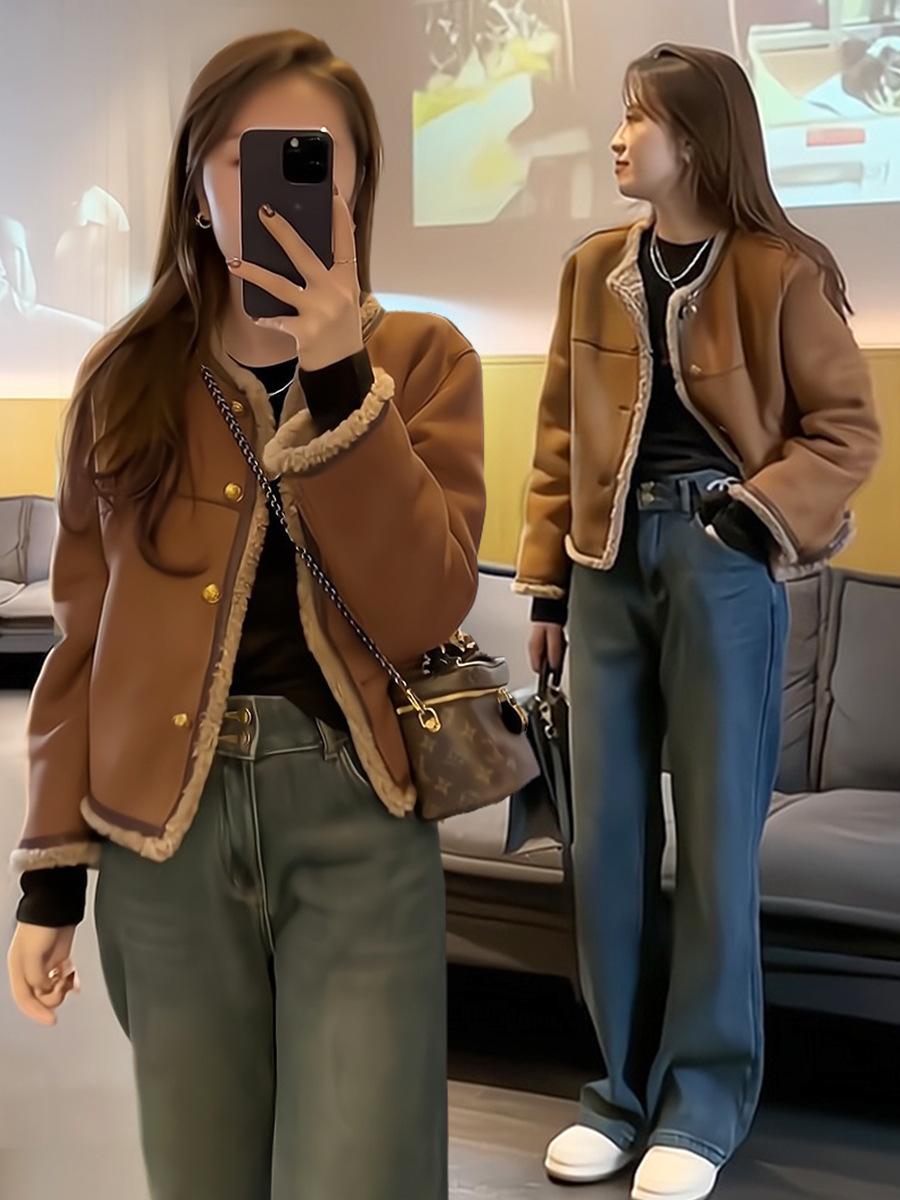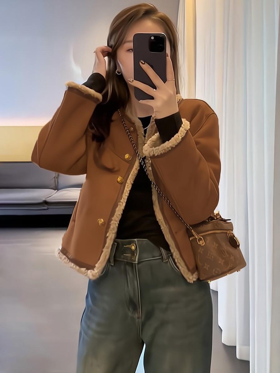 Abrigo de lana de cordero para mujer invierno corto estilo Chanel grueso con forro polar diseño de moda estilo coreano top integrado de piel