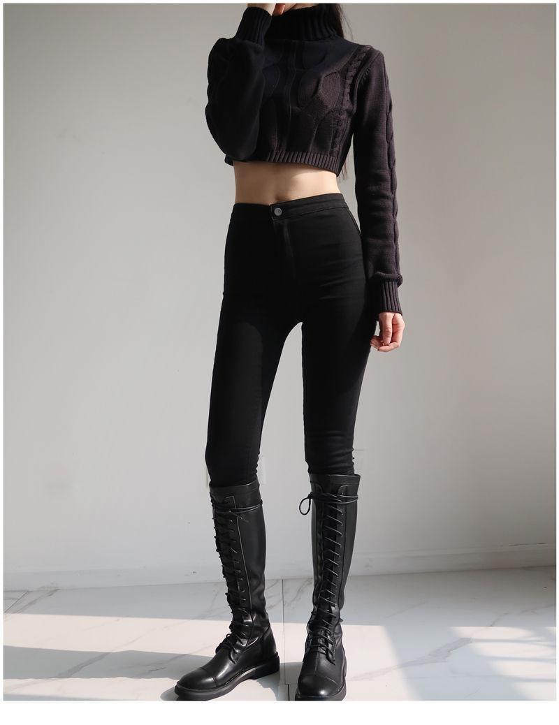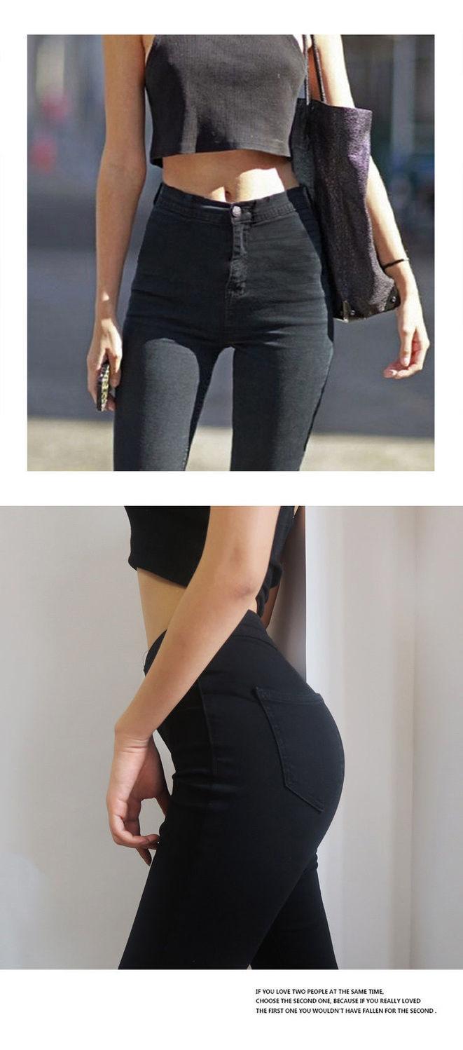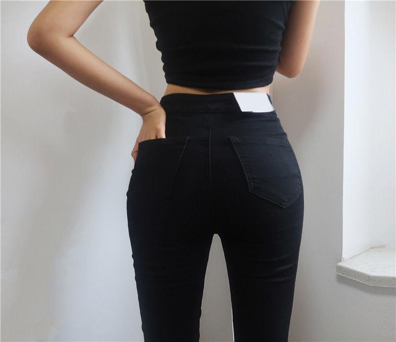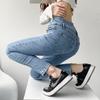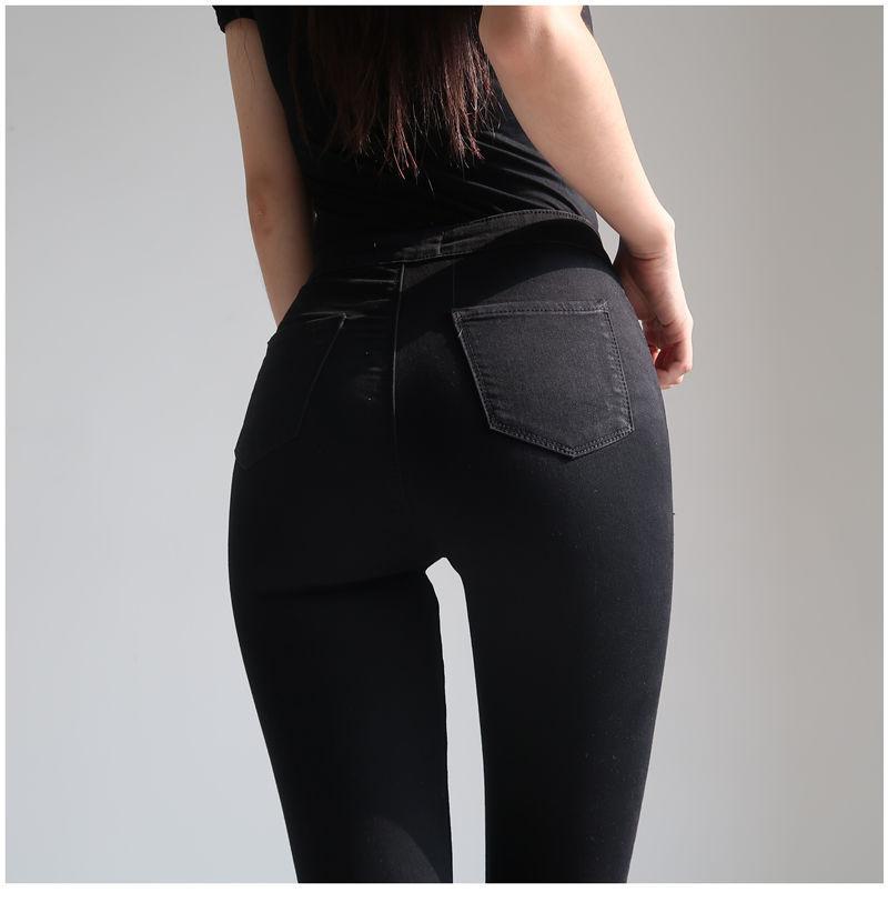 Pantalones vaqueros elásticos de cintura alta para mujer, de primavera y otoño, con realce de cadera, largos y ajustados, de nueve puntos, que combinan con todo y a la moda.