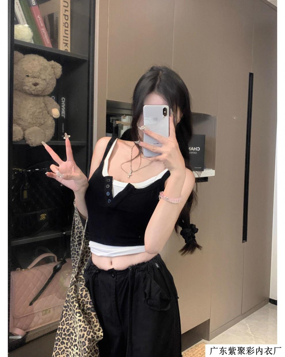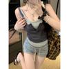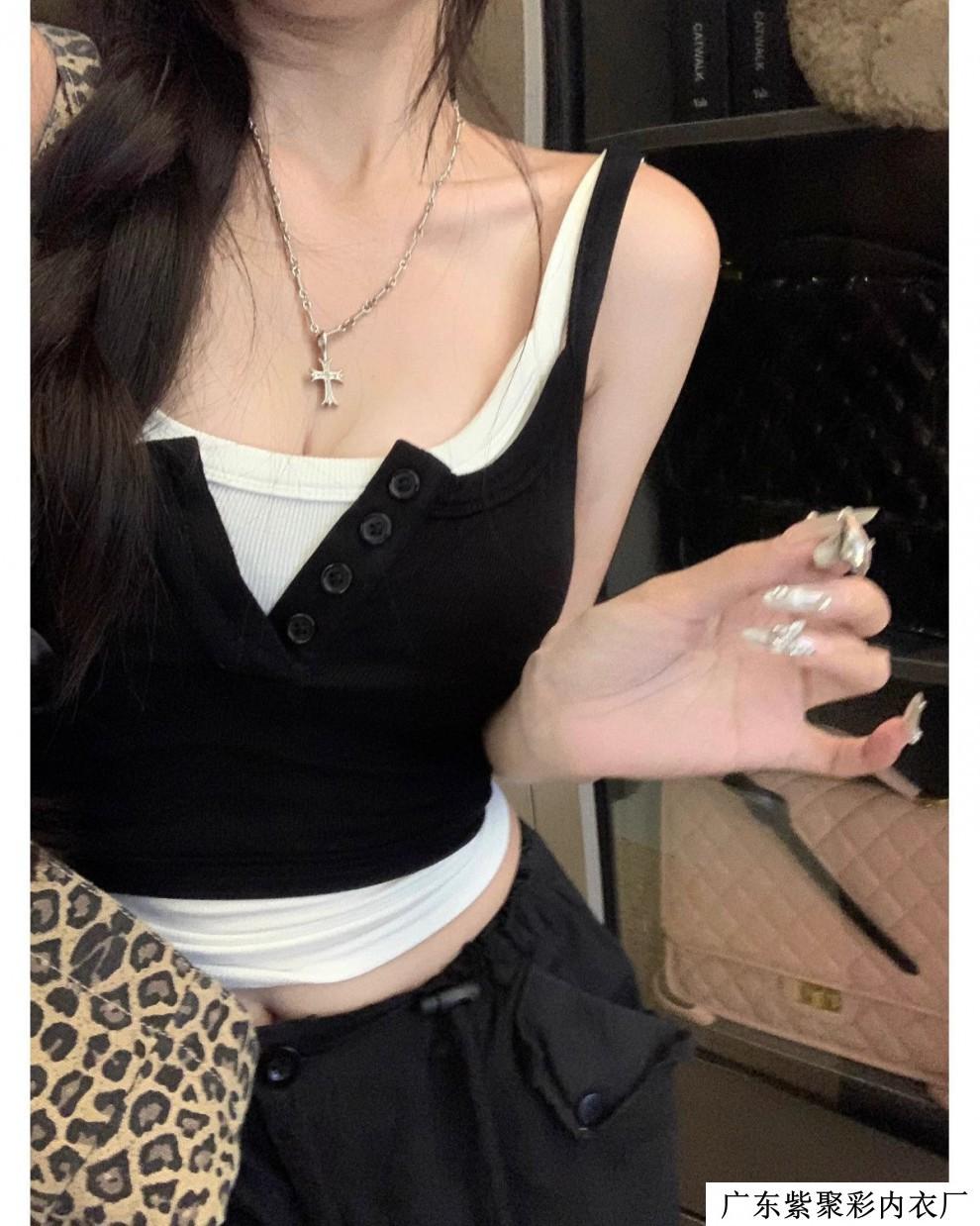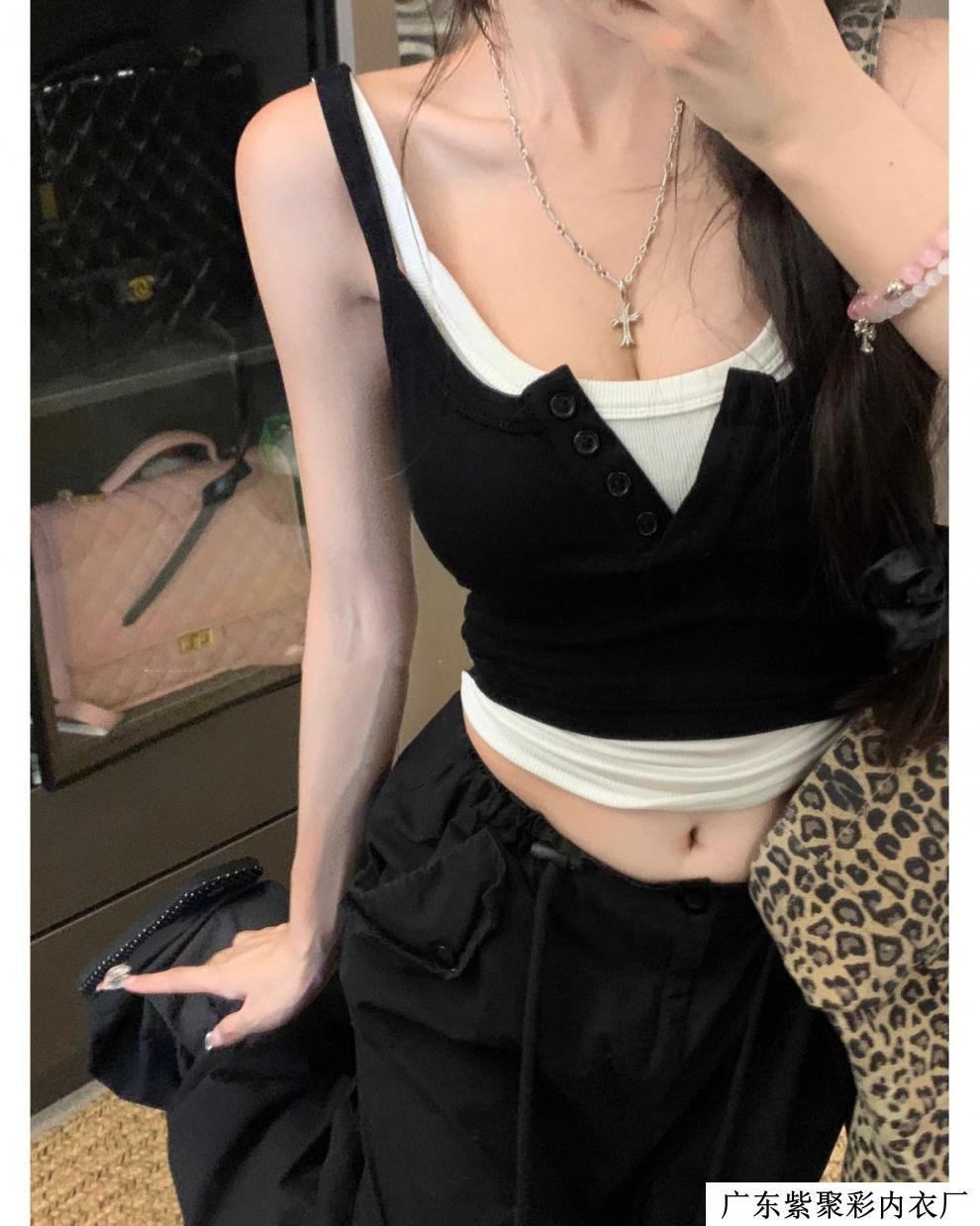 Chaleco pequeño de dos piezas con contraste de color, ajustado y adelgazante, con espalda descubierta, ideal para chicas sensuales y atractivas, combina con todo.
