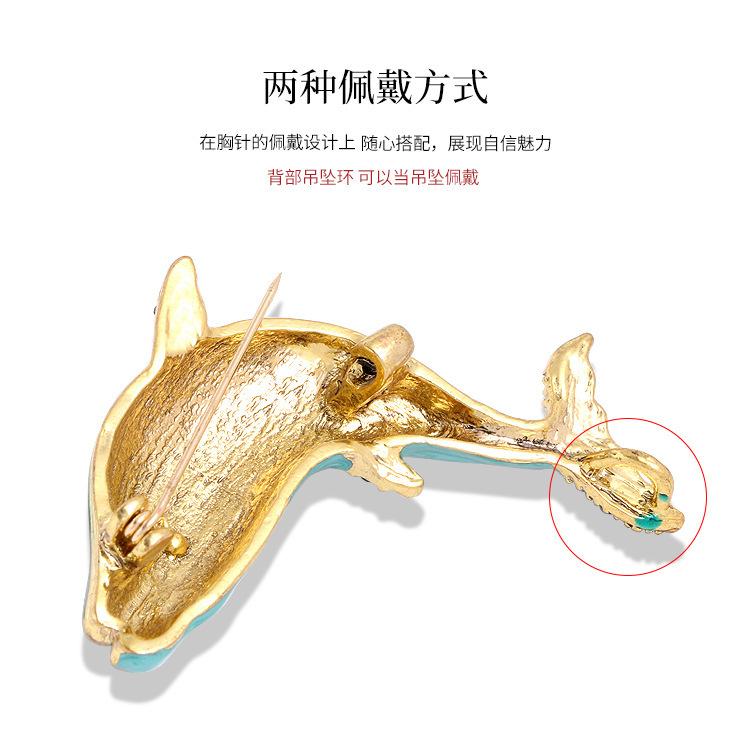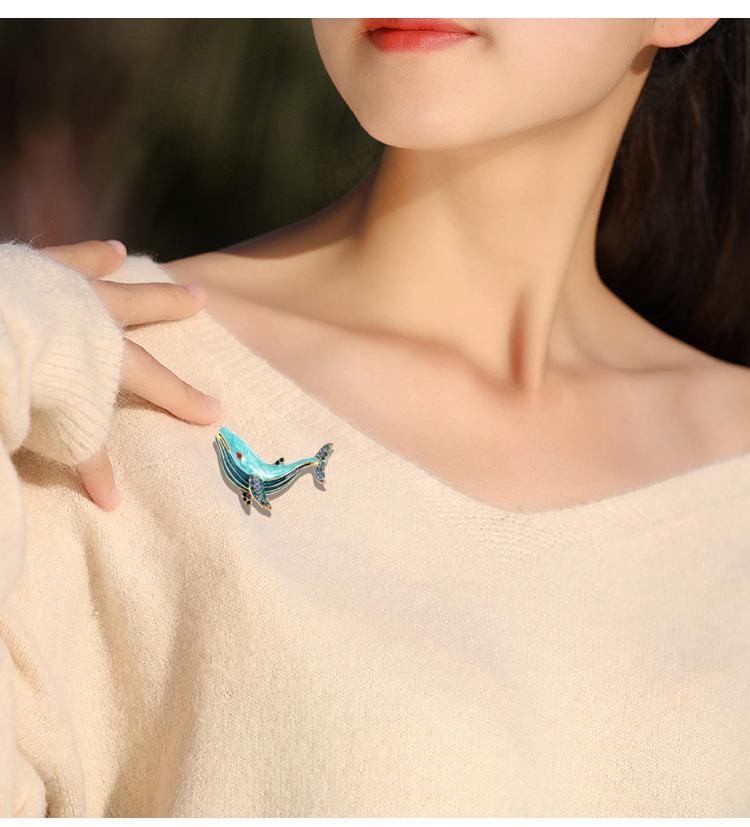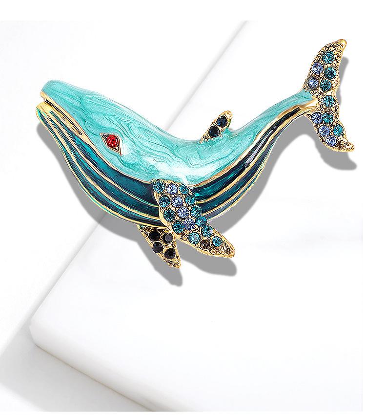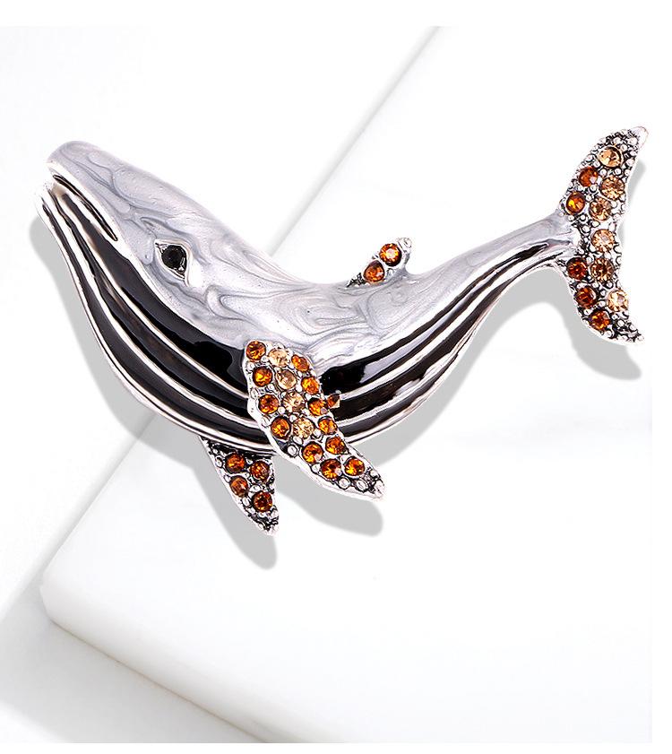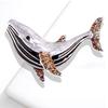 Broche de moda transfronteriza europea y americana con forma de ballena, con diamantes de imitación y aceite, broche de animales a juego con cristales.