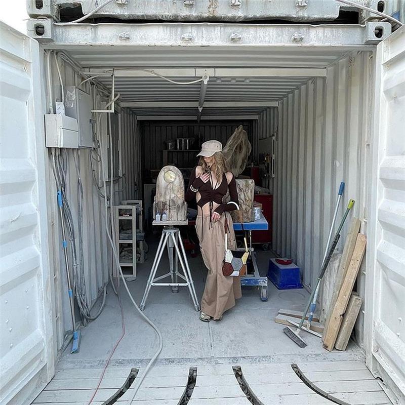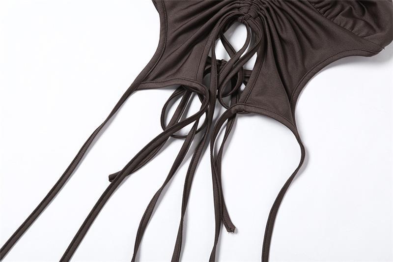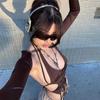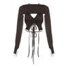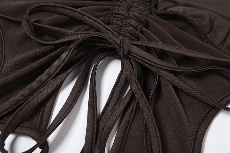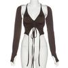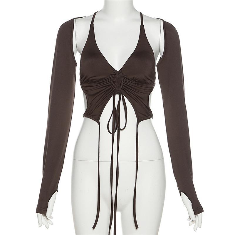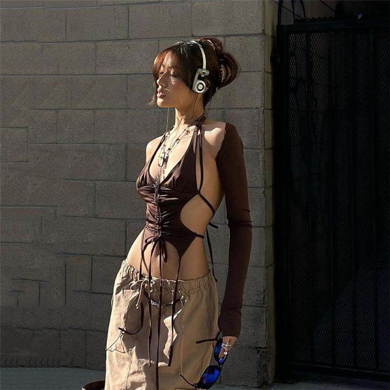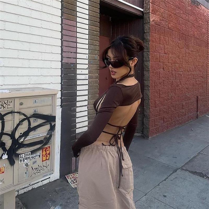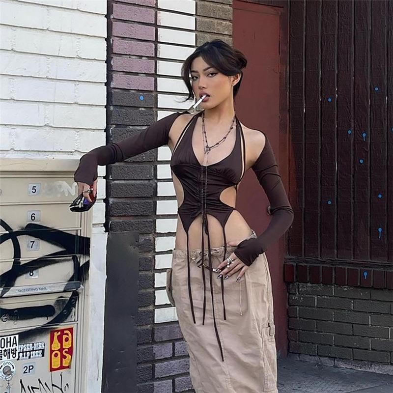 Camiseta de manga larga con cuello halter y tirantes sin espalda para mujer, estilo hip hop, estilo europeo y americano, con escote en V y ombligo corto, para verano de 2023