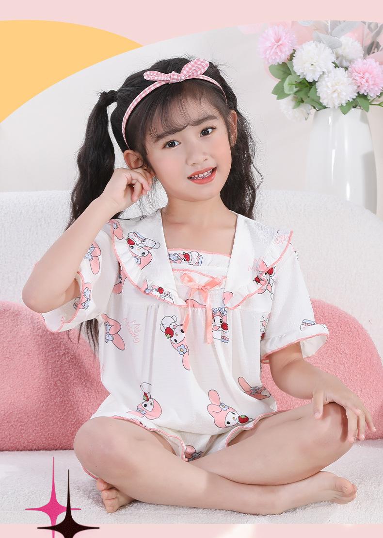 Pijamas de algodón para niños, nuevos, de verano, con burbujas y arrugas, bonitos y bonitos, pantalones cortos de manga corta para niños de talla mediana y grande, para estar en casa.