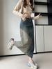 Falda de Mezclilla para Mujer, Verano Cintura Alta Nuevo Estilo 2024, Falda Midi de Línea A con Bloques de Color, Artística Retro Vintage