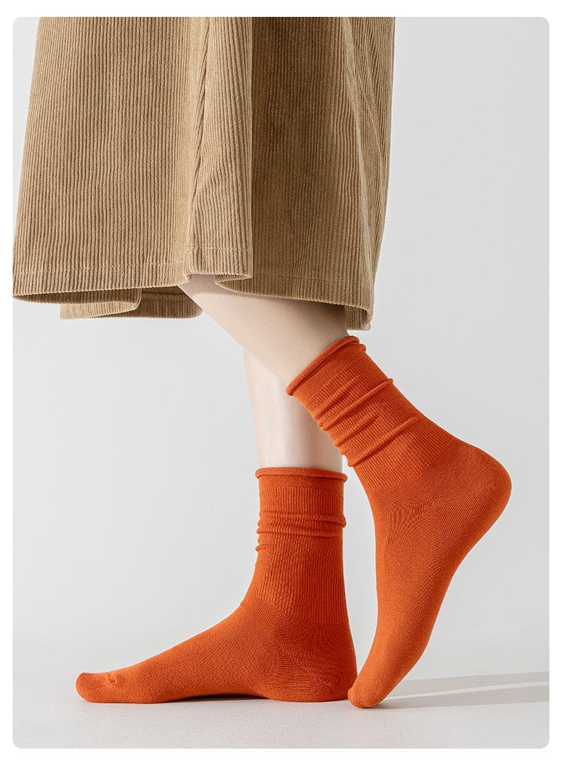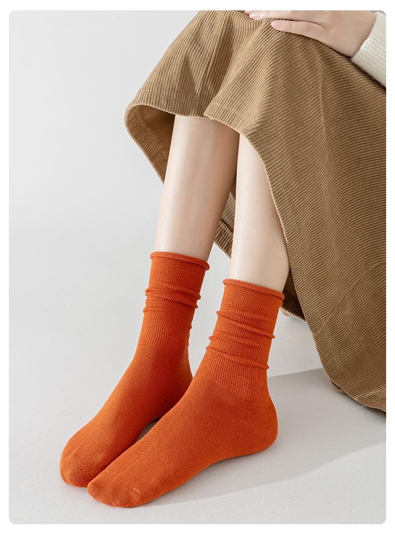 Znds7634 stacked women's socks sapphire blue, Znds7634 pile dan orange, Znds7634 pile women's socks amber brow...
