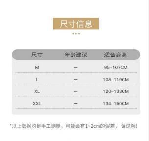 M size 3-5 years old [recommended height 88-105cm]], L size 5-7 years old [recommended height 105-115cm]], XL ...