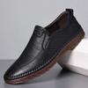 Zapatos de negocios de primera capa de piel de vaca con punta redonda, informales, bajos, antideslizantes, de goma, negros, para hombre, otoño e invierno