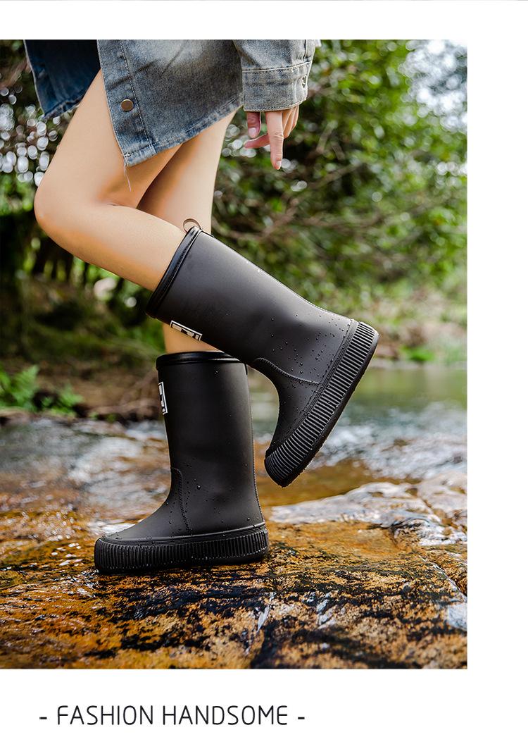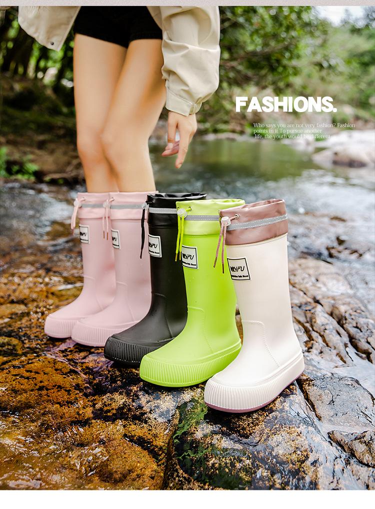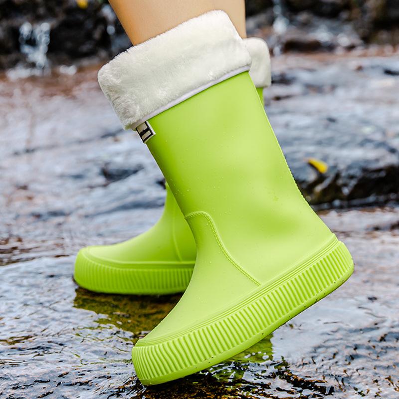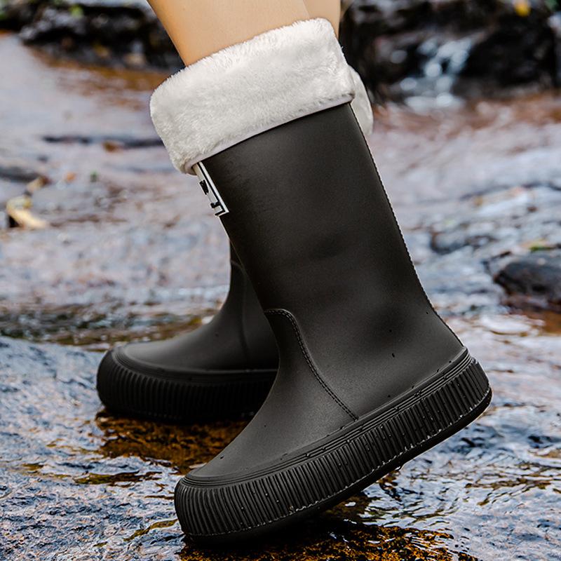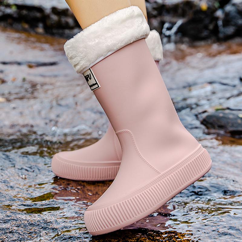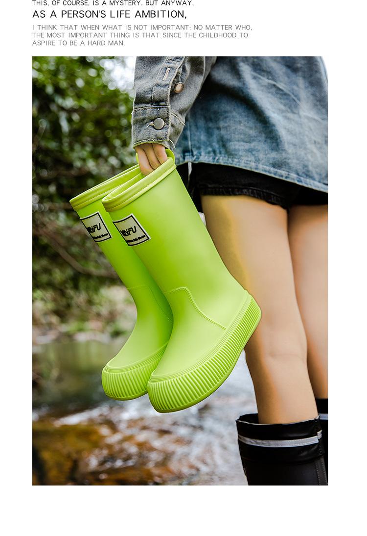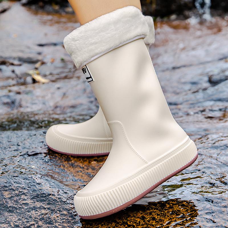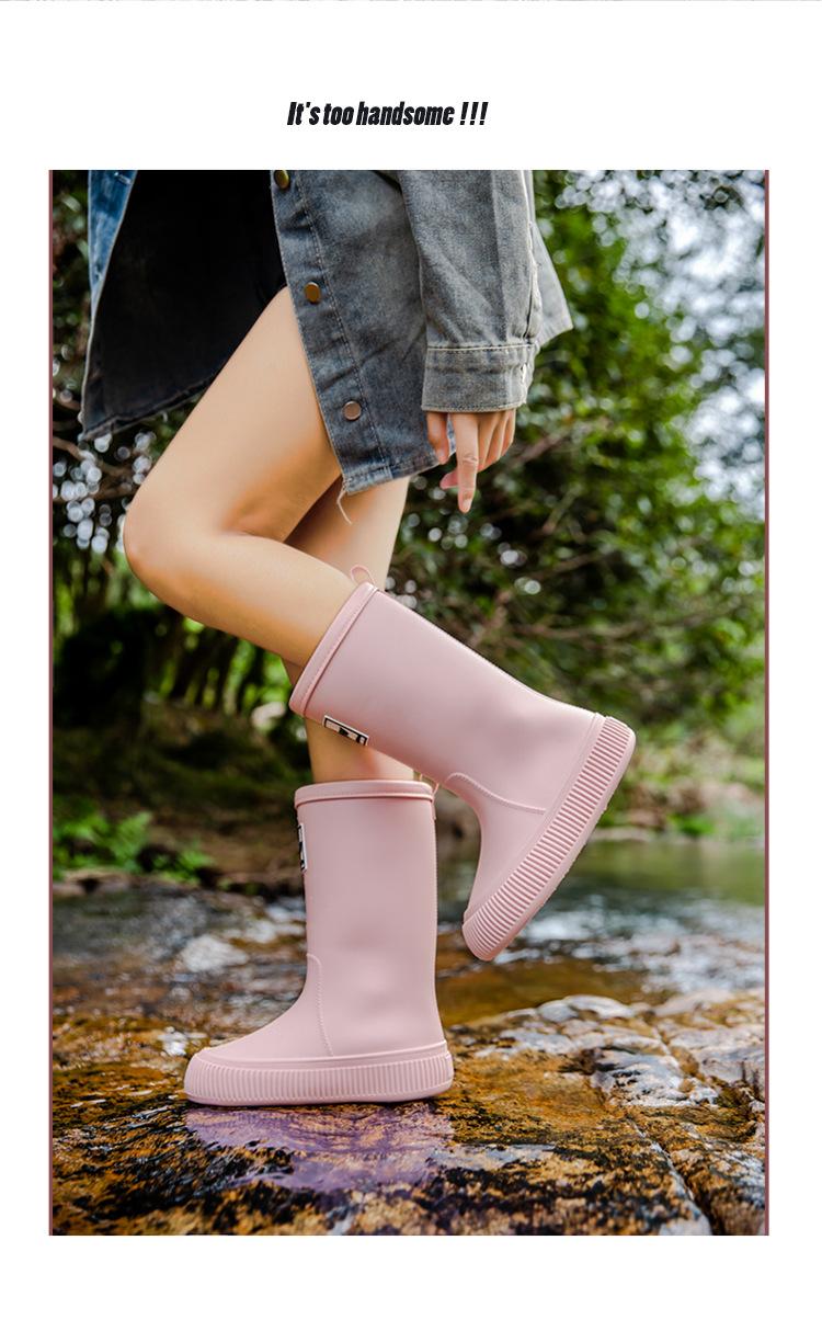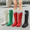 Nuevas botas de lluvia de moda con suela gruesa y alta para mujer, calzado exterior antideslizante, botas de lluvia cálidas, zapatos de goma impermeables, venta al por mayor