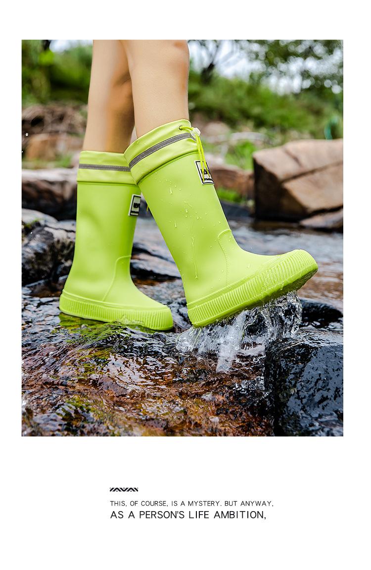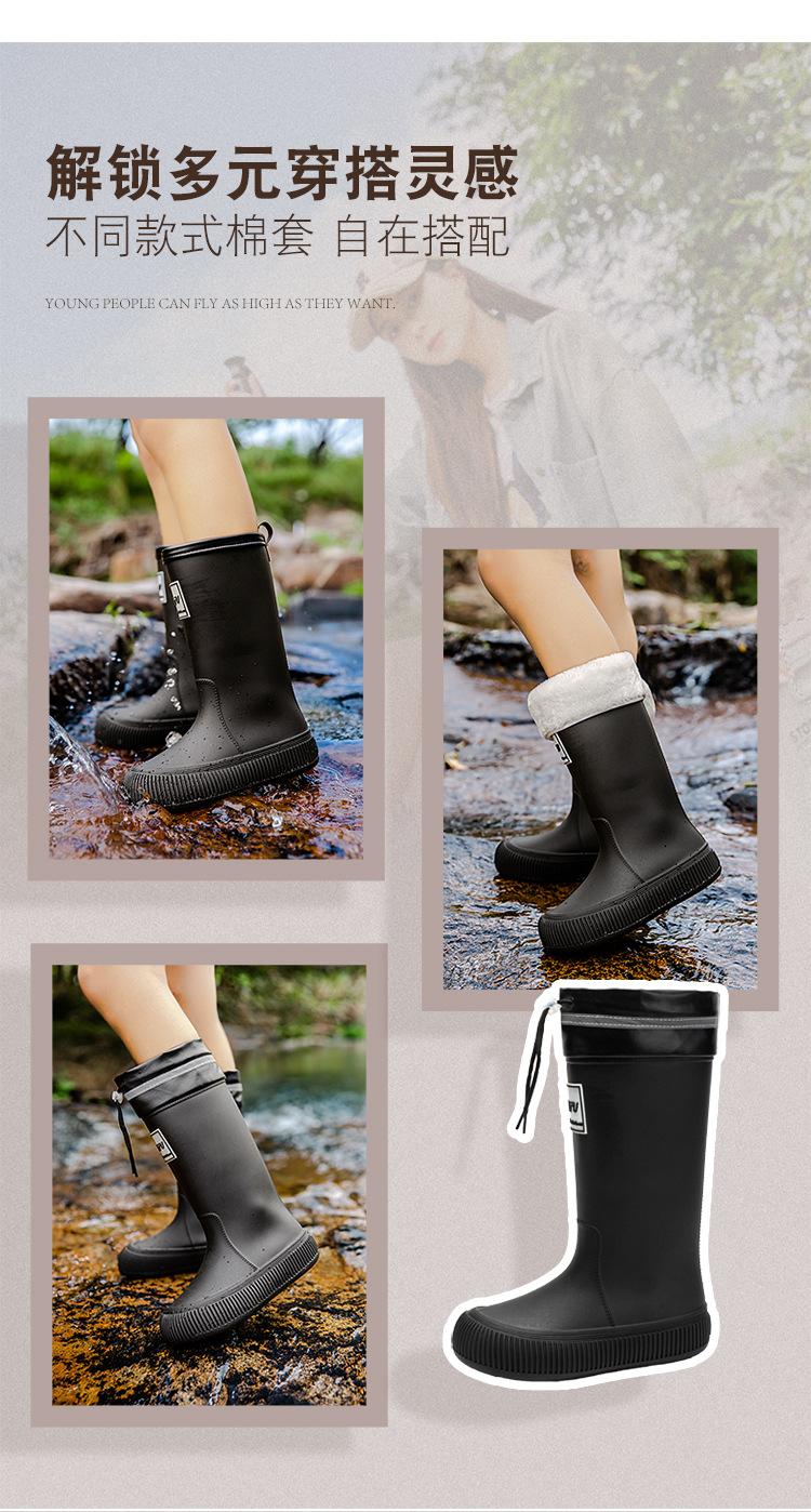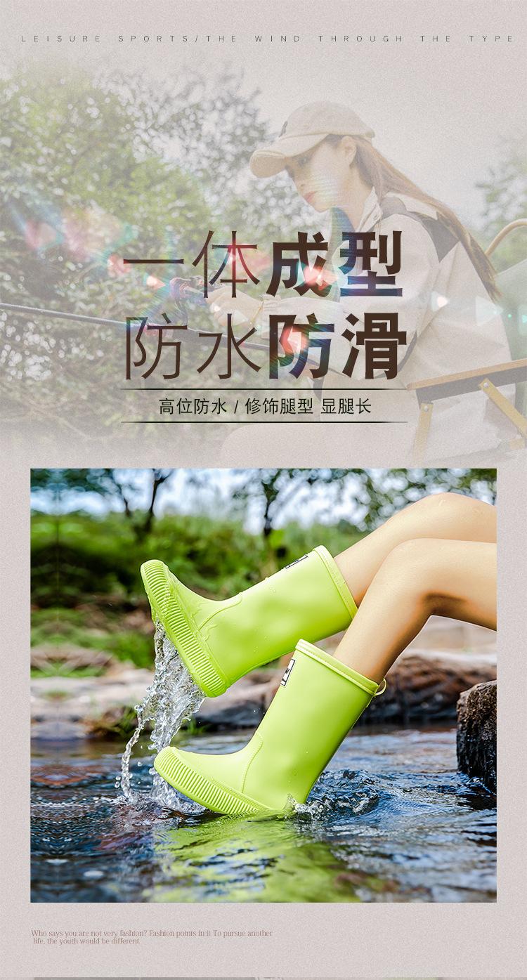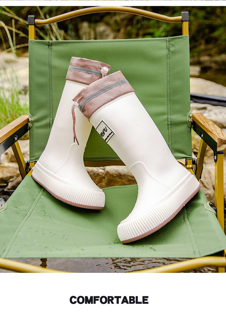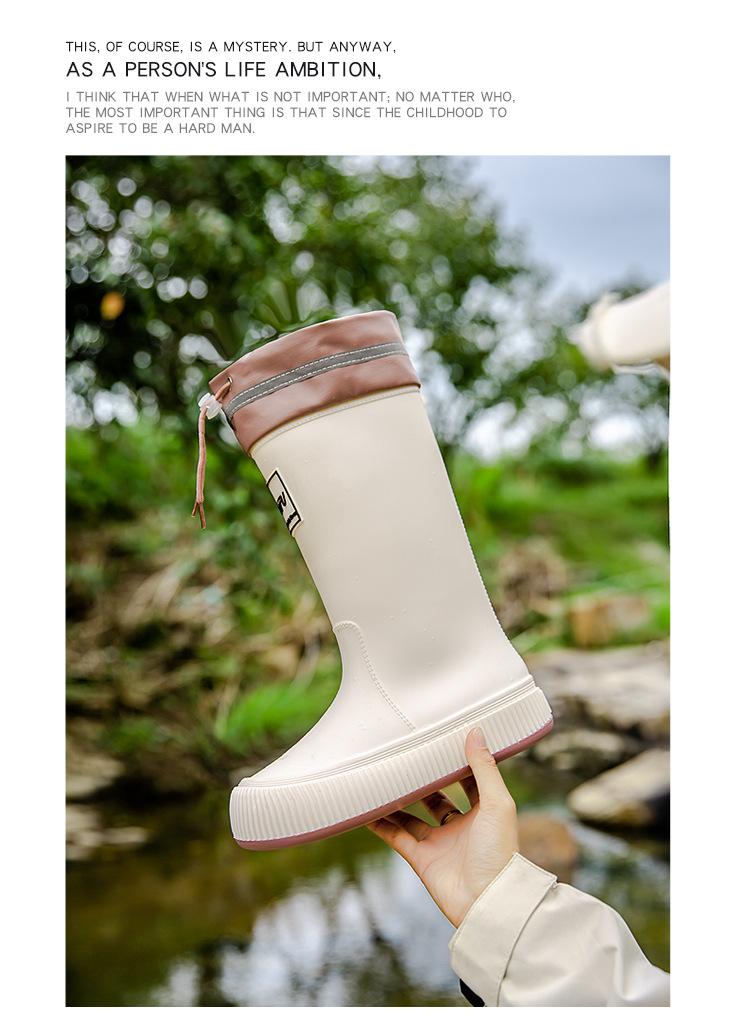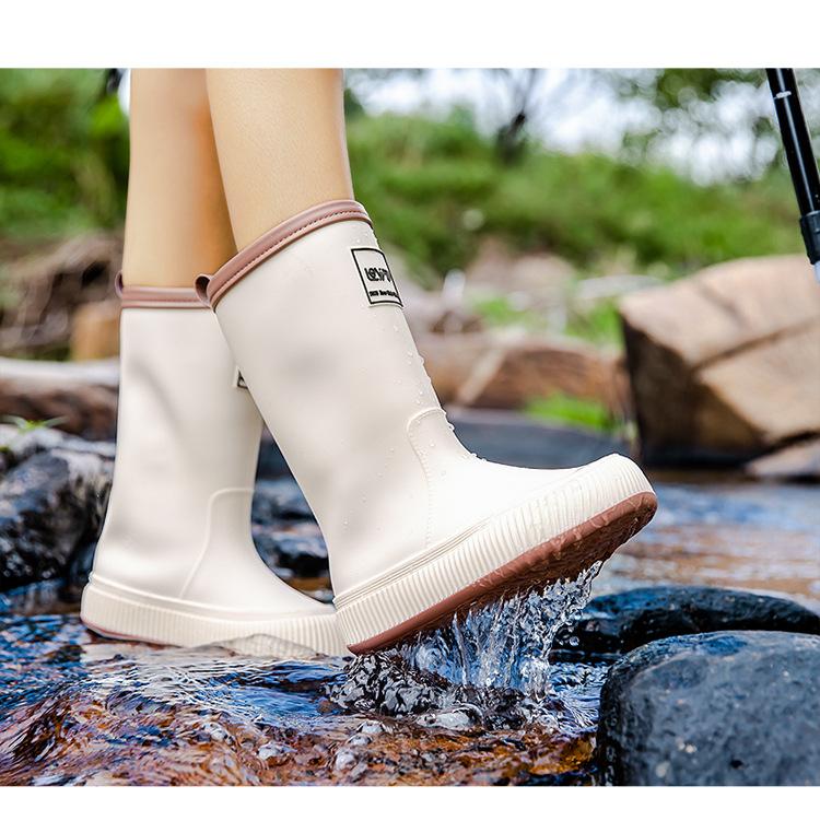 Nuevas botas de lluvia de moda con suela gruesa y alta para mujer, calzado exterior antideslizante, botas de lluvia cálidas, zapatos de goma impermeables, venta al por mayor