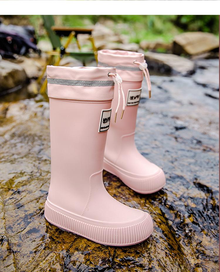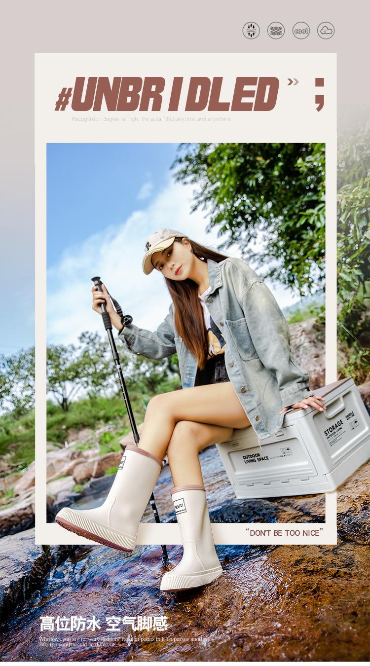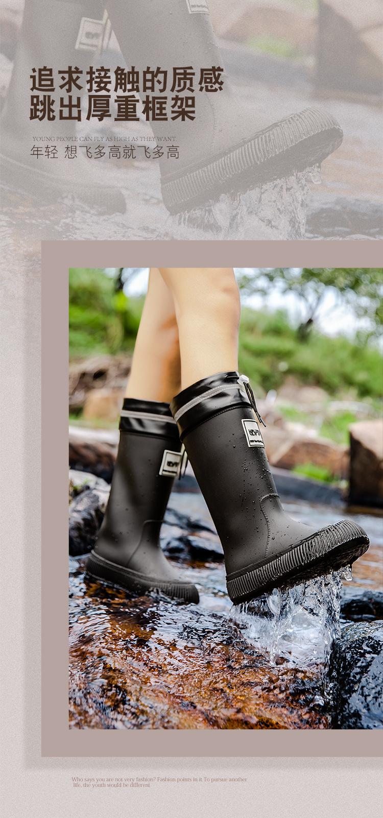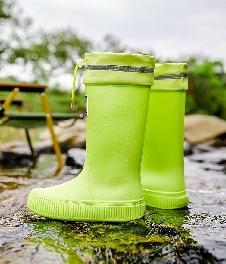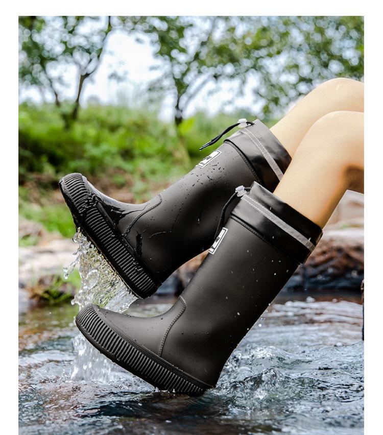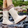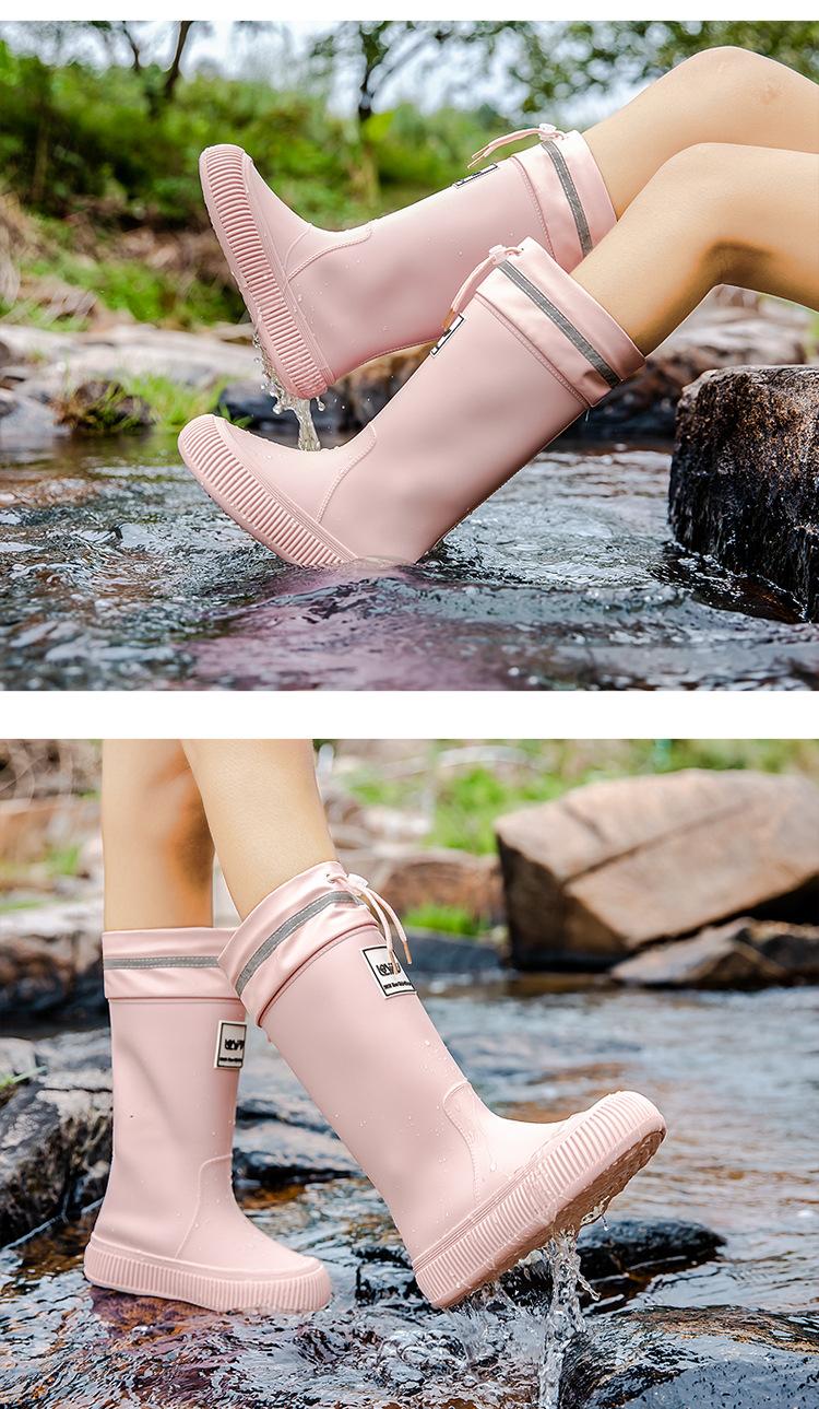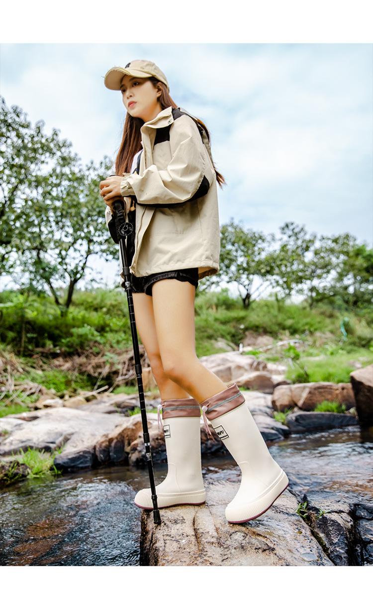 Nuevas botas de lluvia de moda con suela gruesa y alta para mujer, calzado exterior antideslizante, botas de lluvia cálidas, zapatos de goma impermeables, venta al por mayor