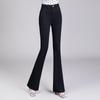 Pantalones negros acampanados para mujer, verano 2024, finos, ajustados, con colgante, cintura alta, adelgazantes, tallas grandes, elásticos, estilo coreano.