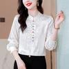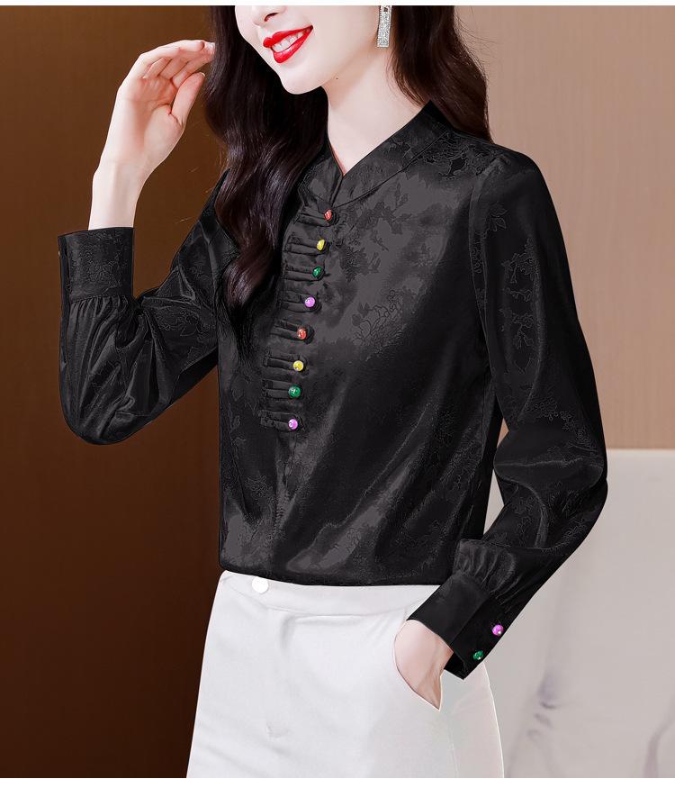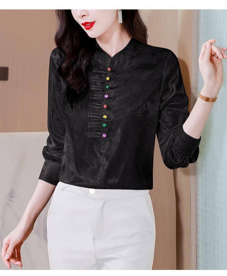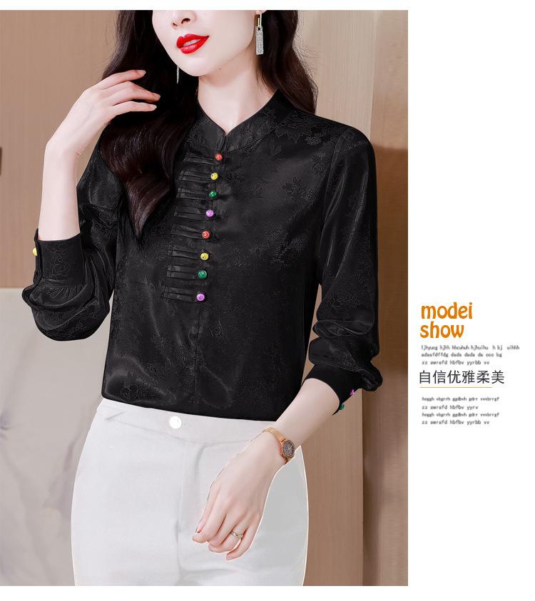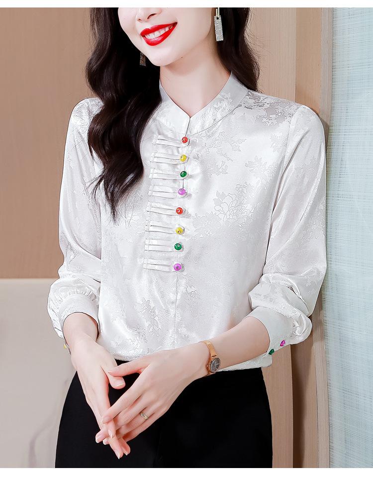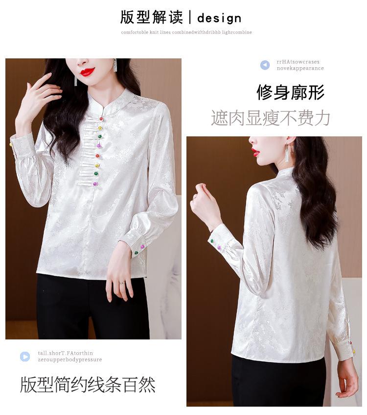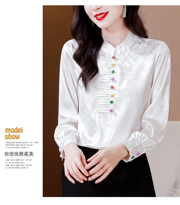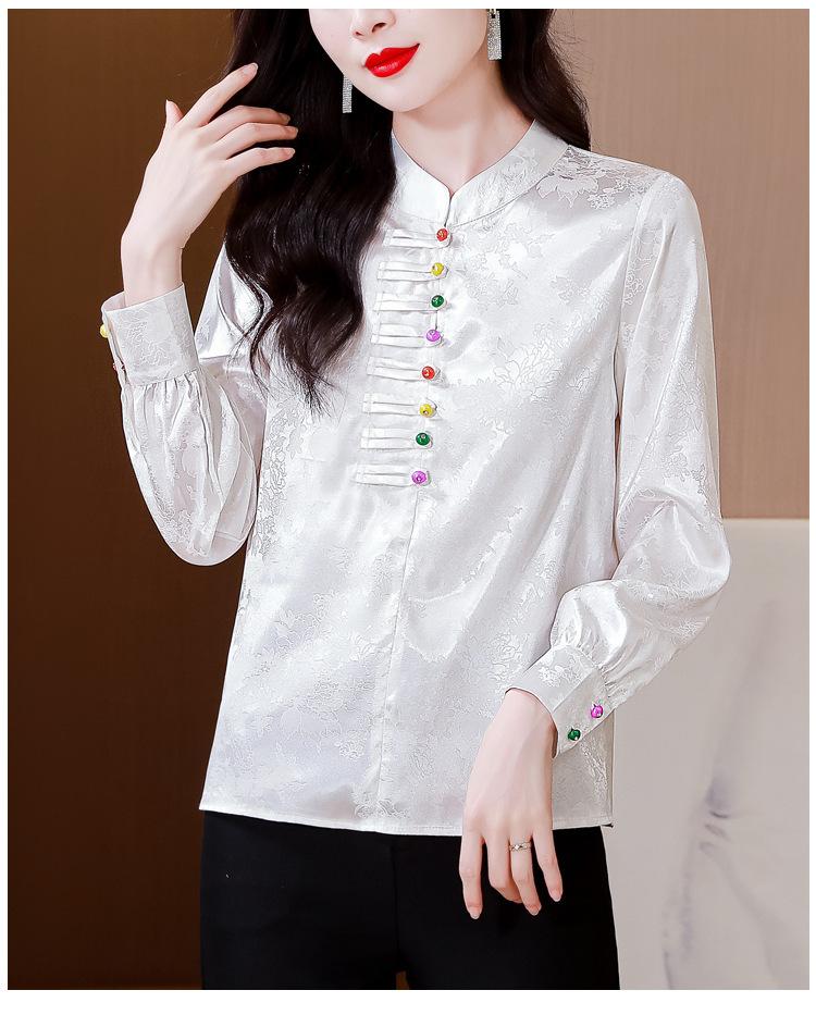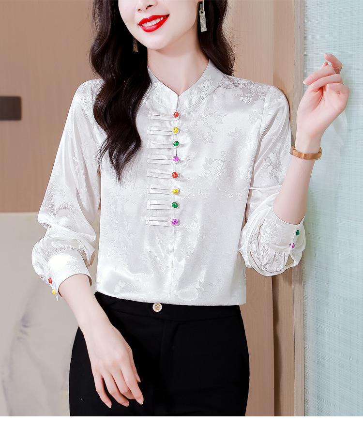 Camisa de seda pesada de marca para mujer, nueva camisa de otoño de manga larga de seda morera, estilo chino, estilo nacional.