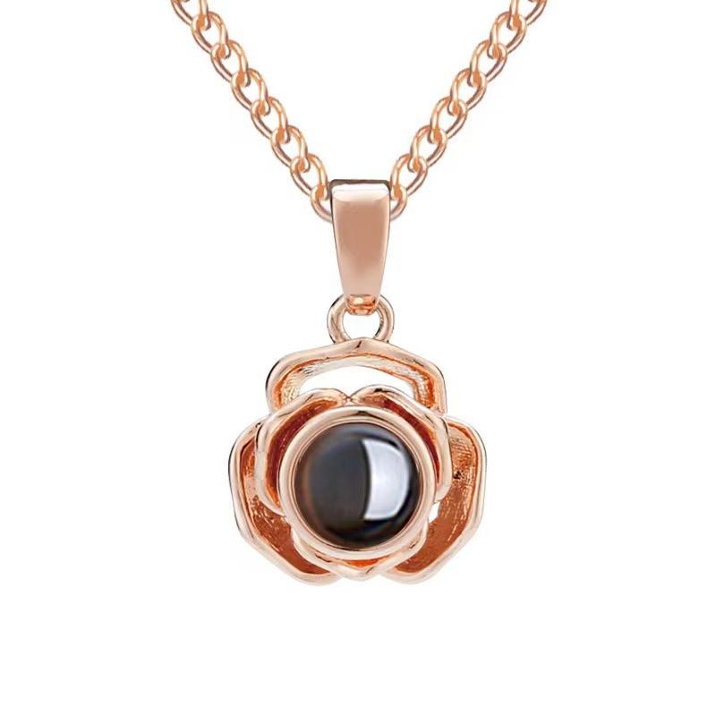 Collar con proyección de flores "Te amo" en 100 idiomas, diseño de lujo ligero, cadena de clavícula Joker simple, personalización de imágenes