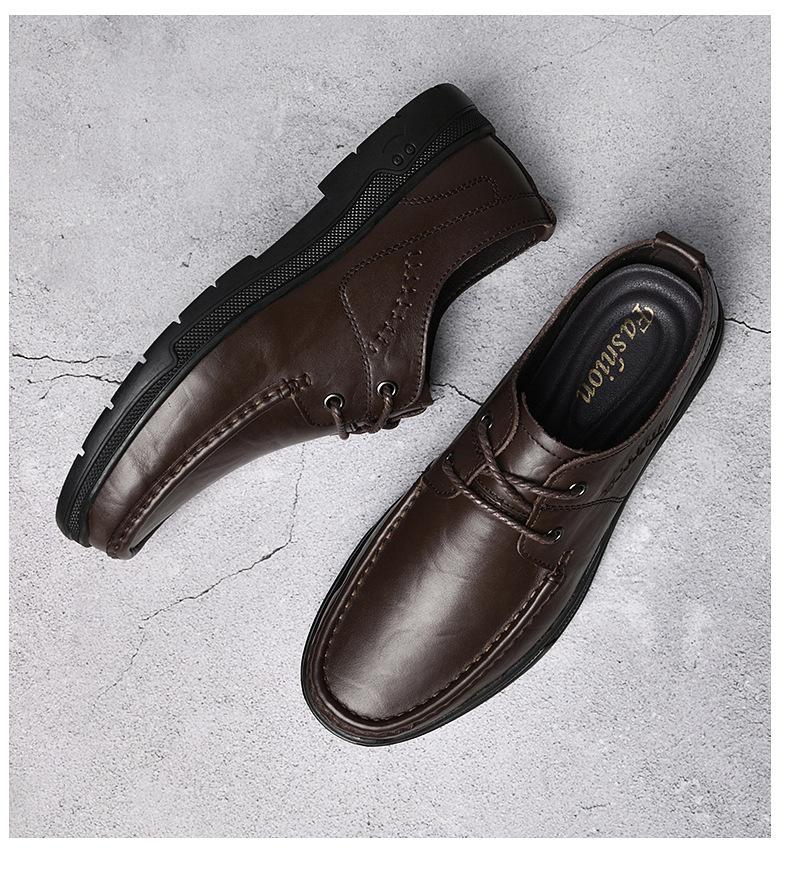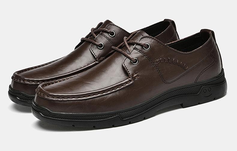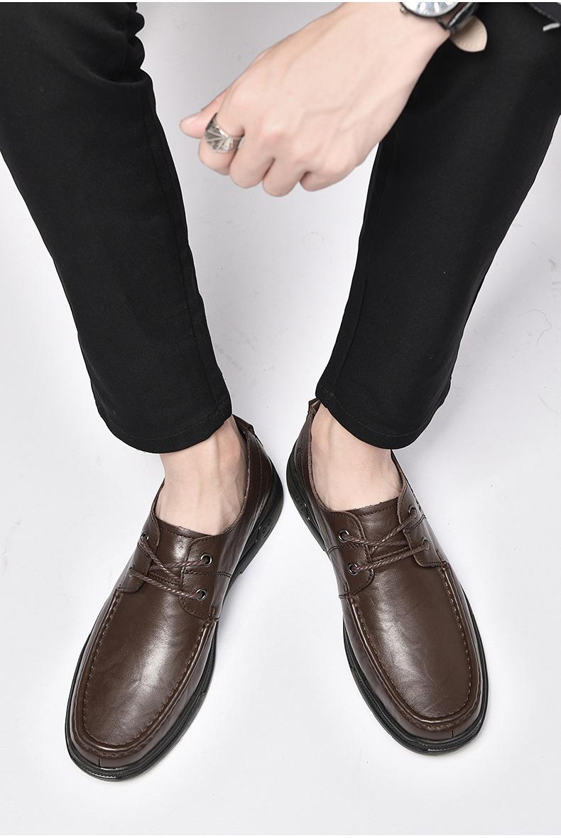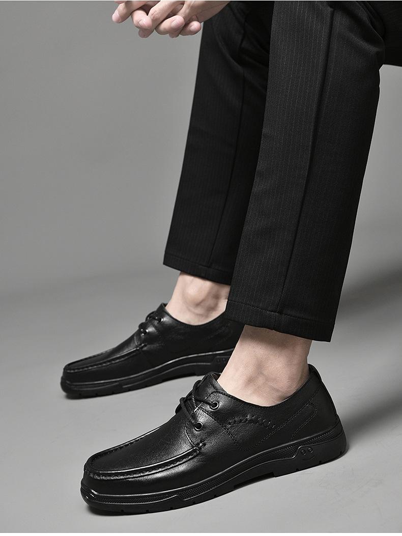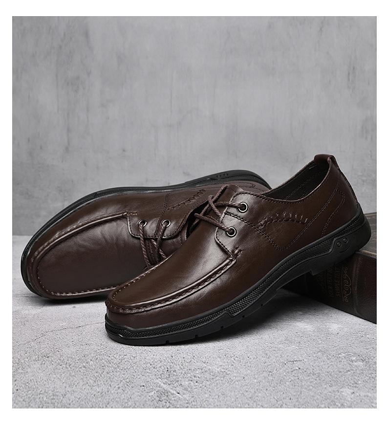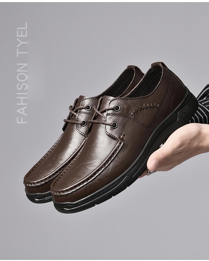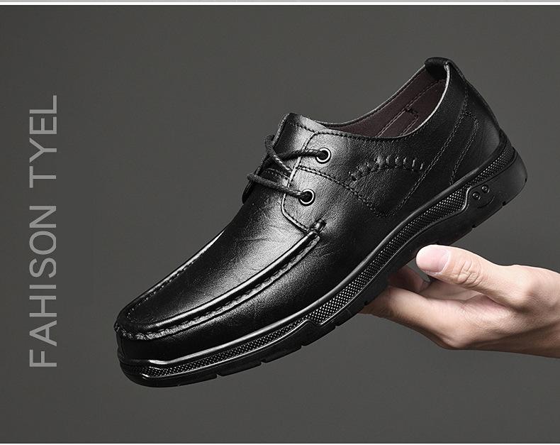 Zapatos de cuero para hombre otoño e invierno 2023 piel de vaca con cordones zapatos casuales de negocios suela blanda transpirable zapatos individuales de papá entrega de una pieza
