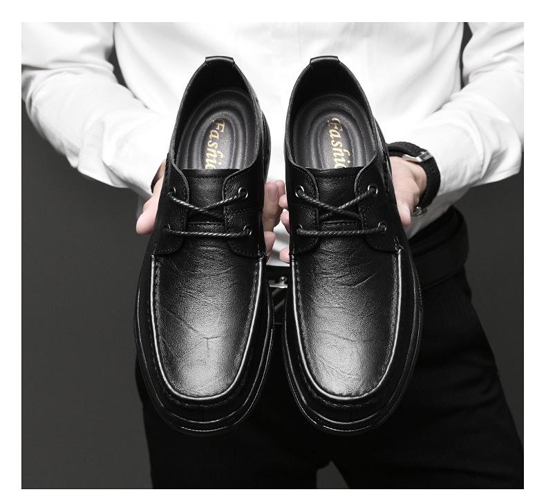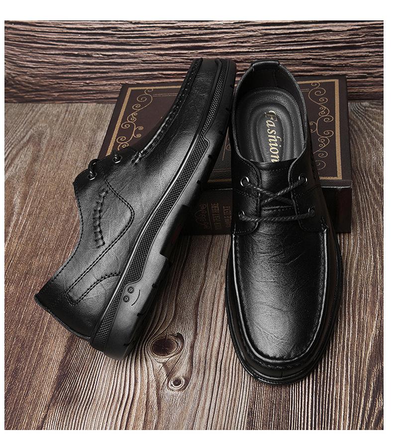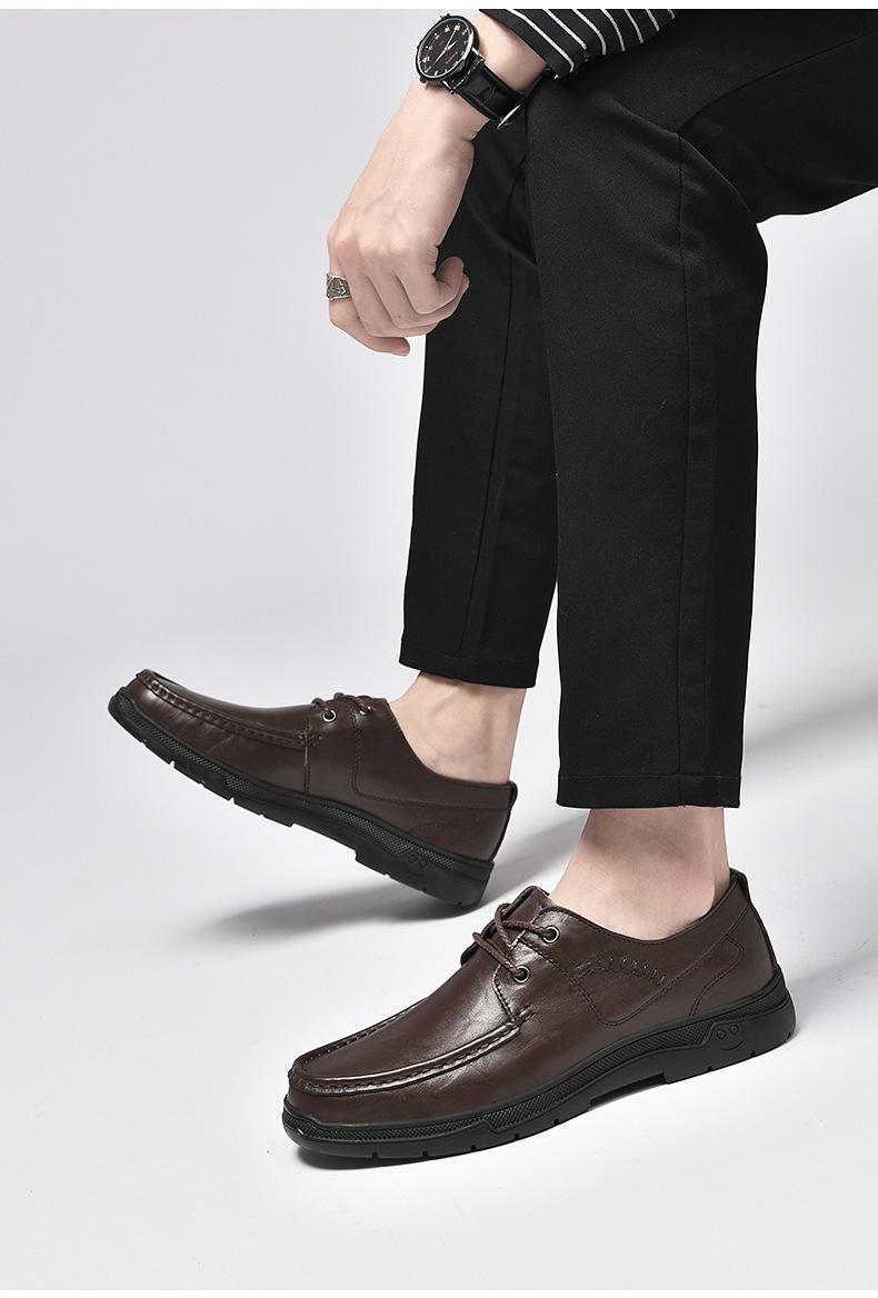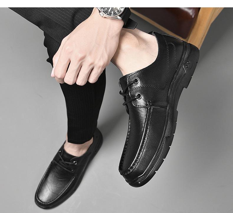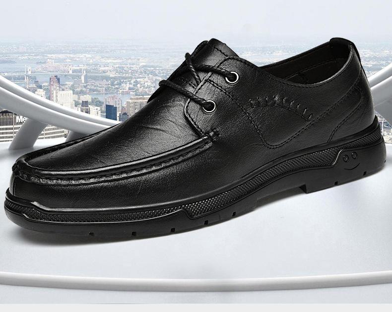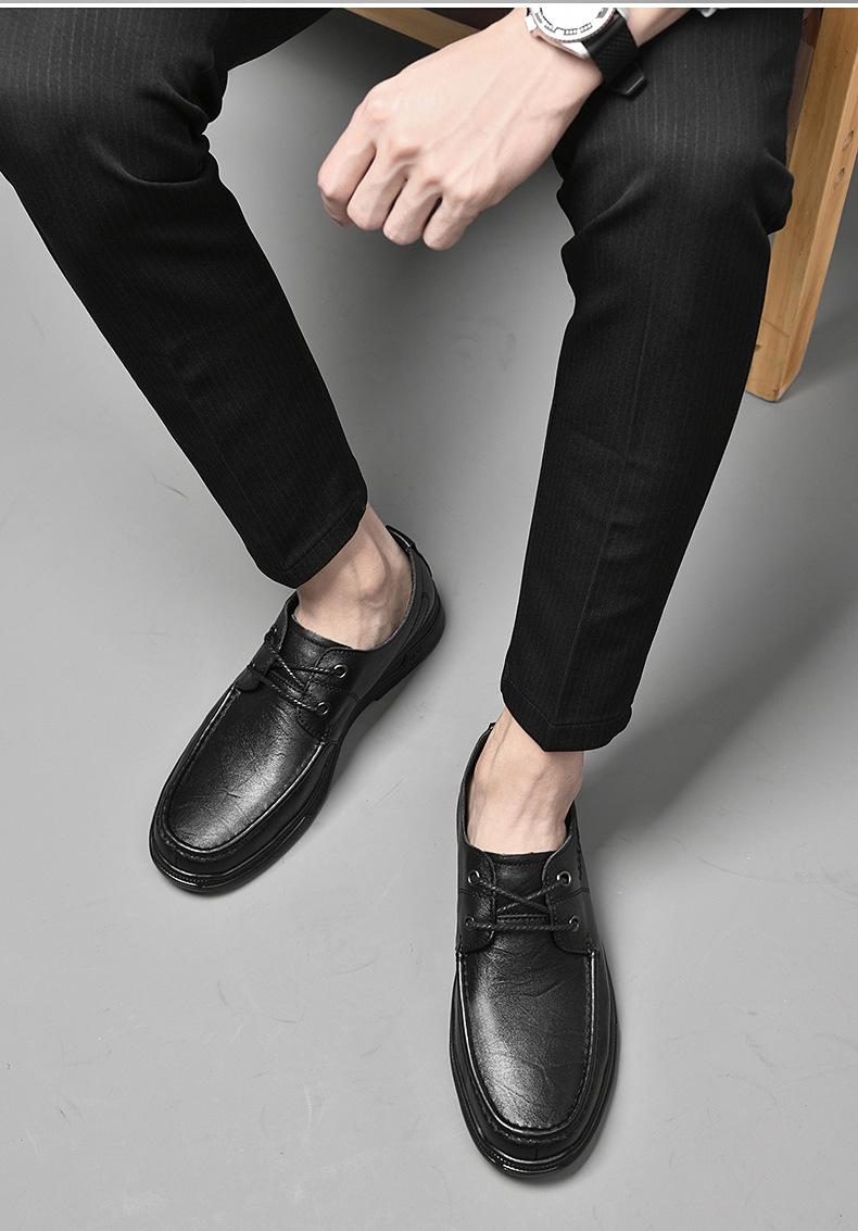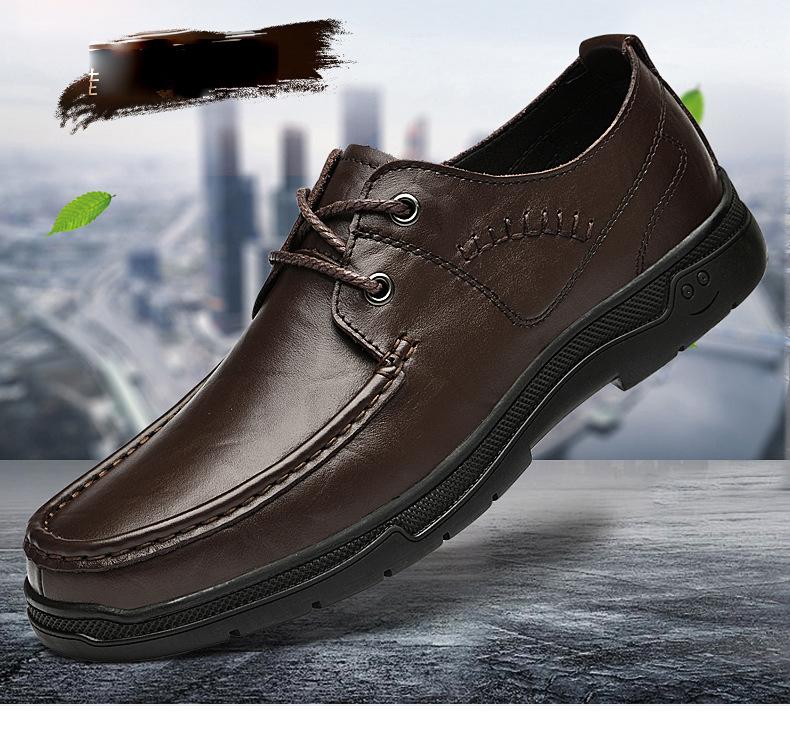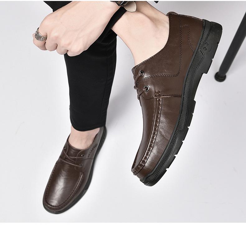 Zapatos de cuero para hombre otoño e invierno 2023 piel de vaca con cordones zapatos casuales de negocios suela blanda transpirable zapatos individuales de papá entrega de una pieza