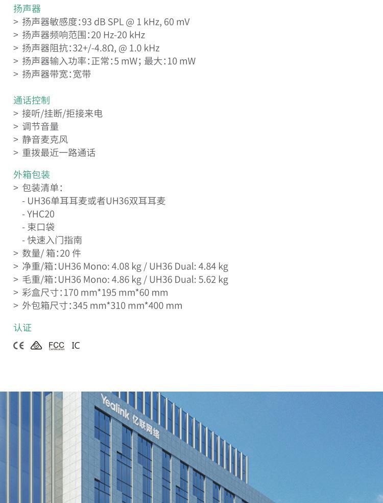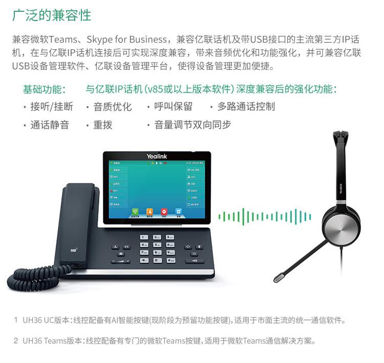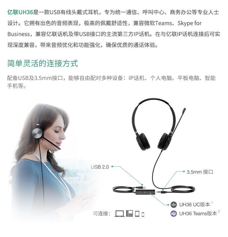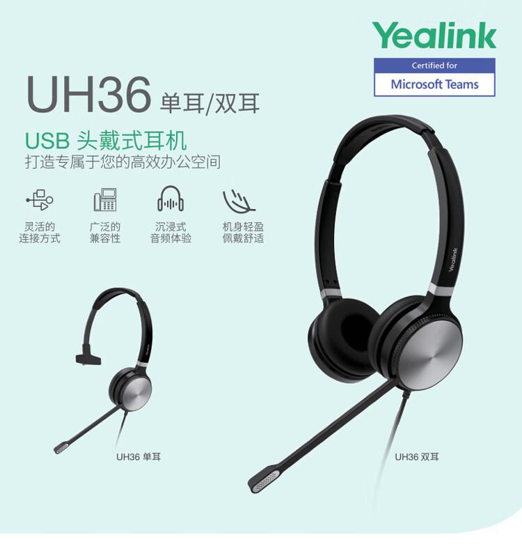 Yilian (Yealink)Auriculares monoaurales UH36Mono para oficina, centro de llamadas y teléfono.