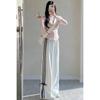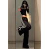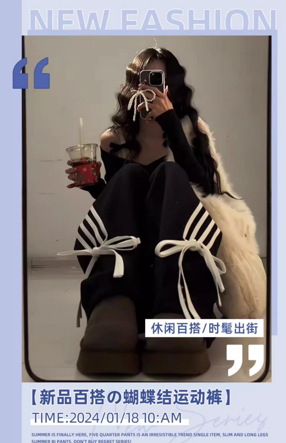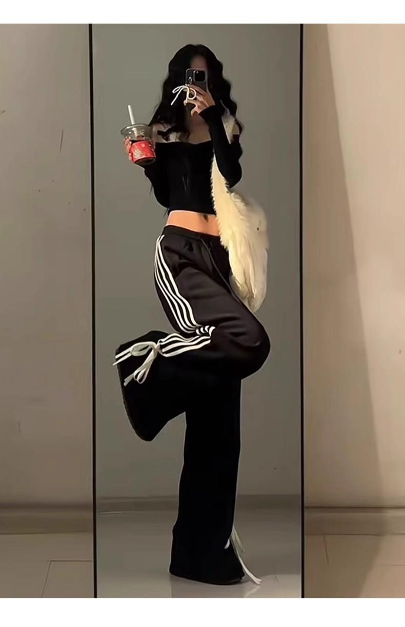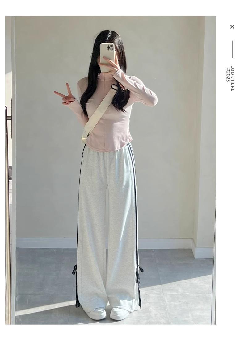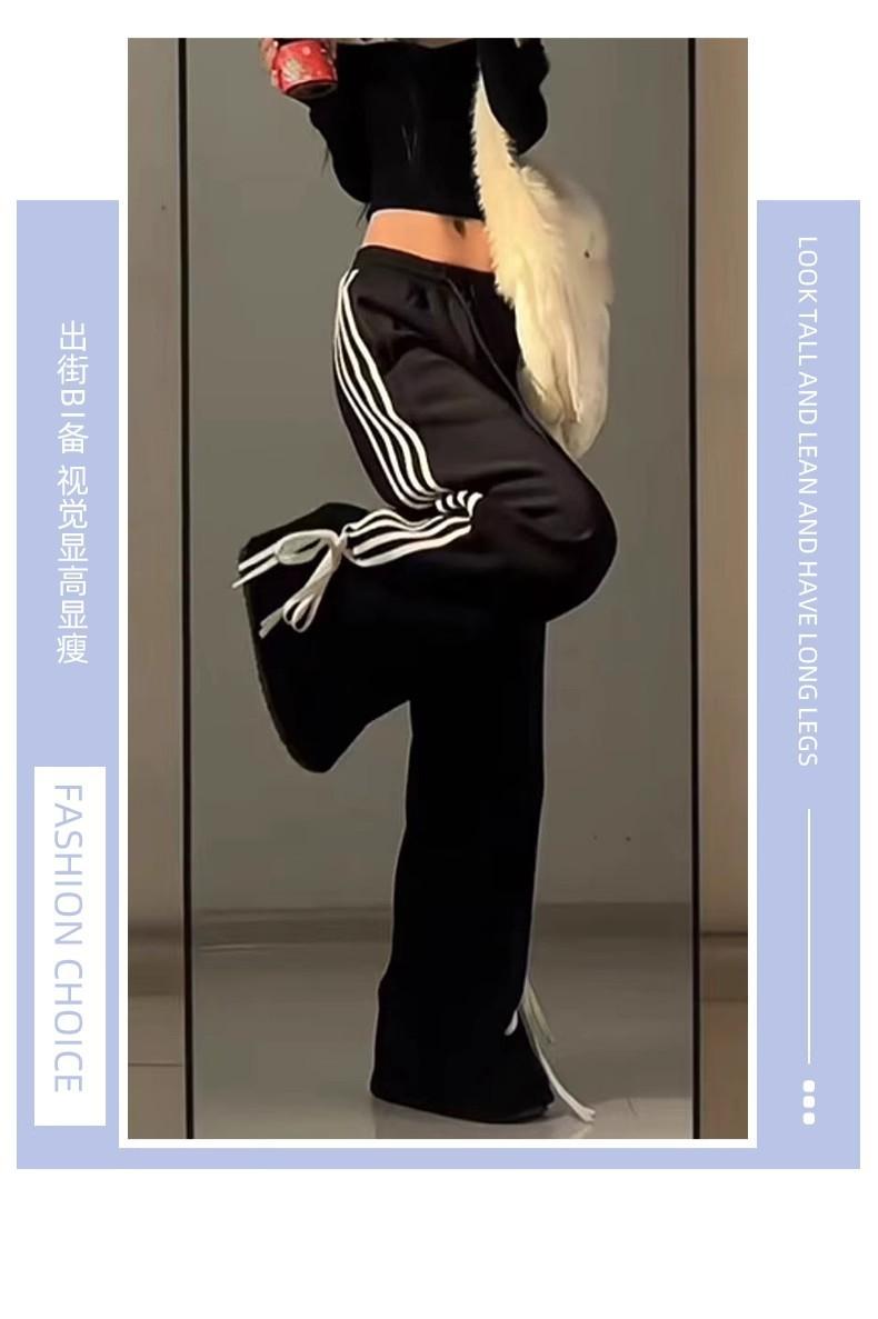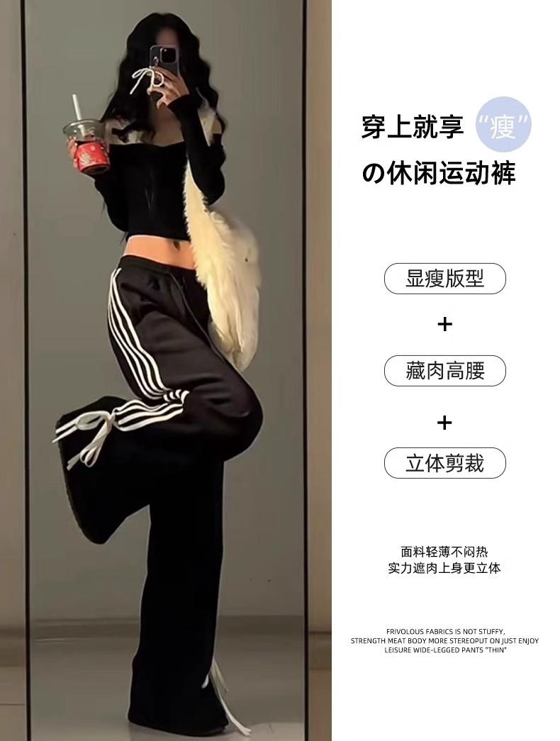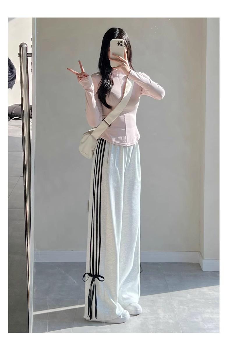 Pantalones negros con lazo para mujer, primavera y verano 2024, nuevos pantalones casuales rectos de pierna ancha, pantalones deportivos pequeños
