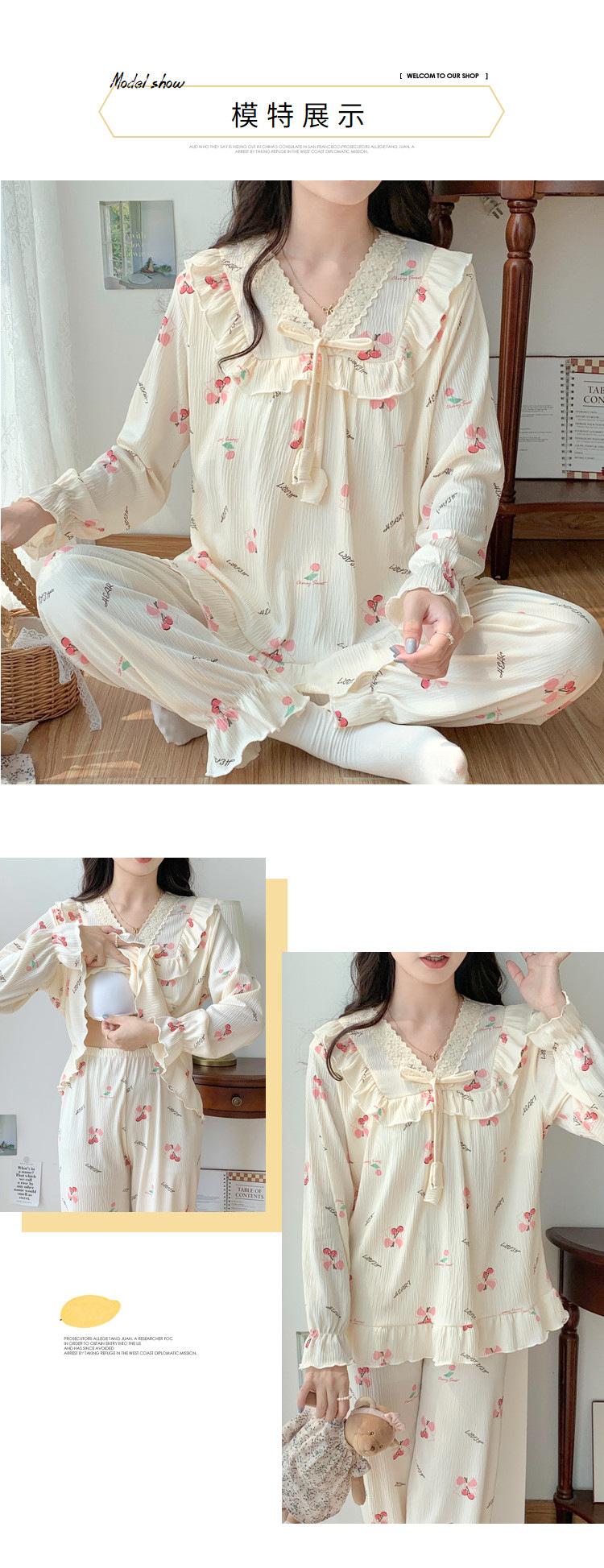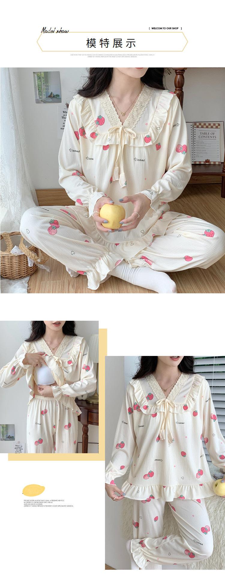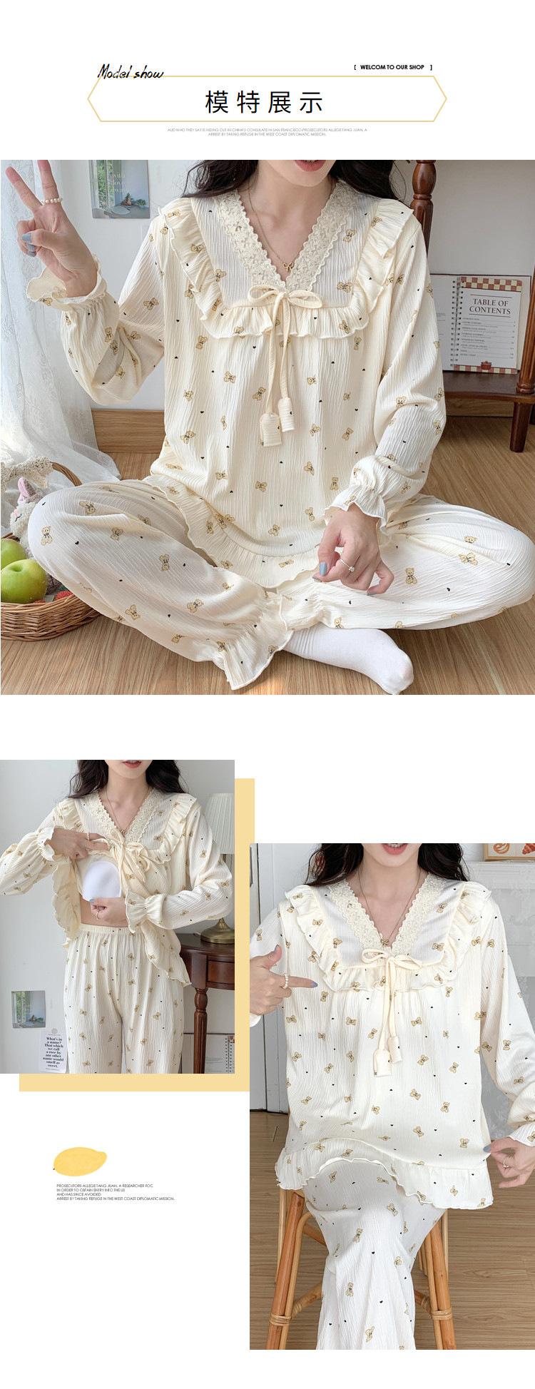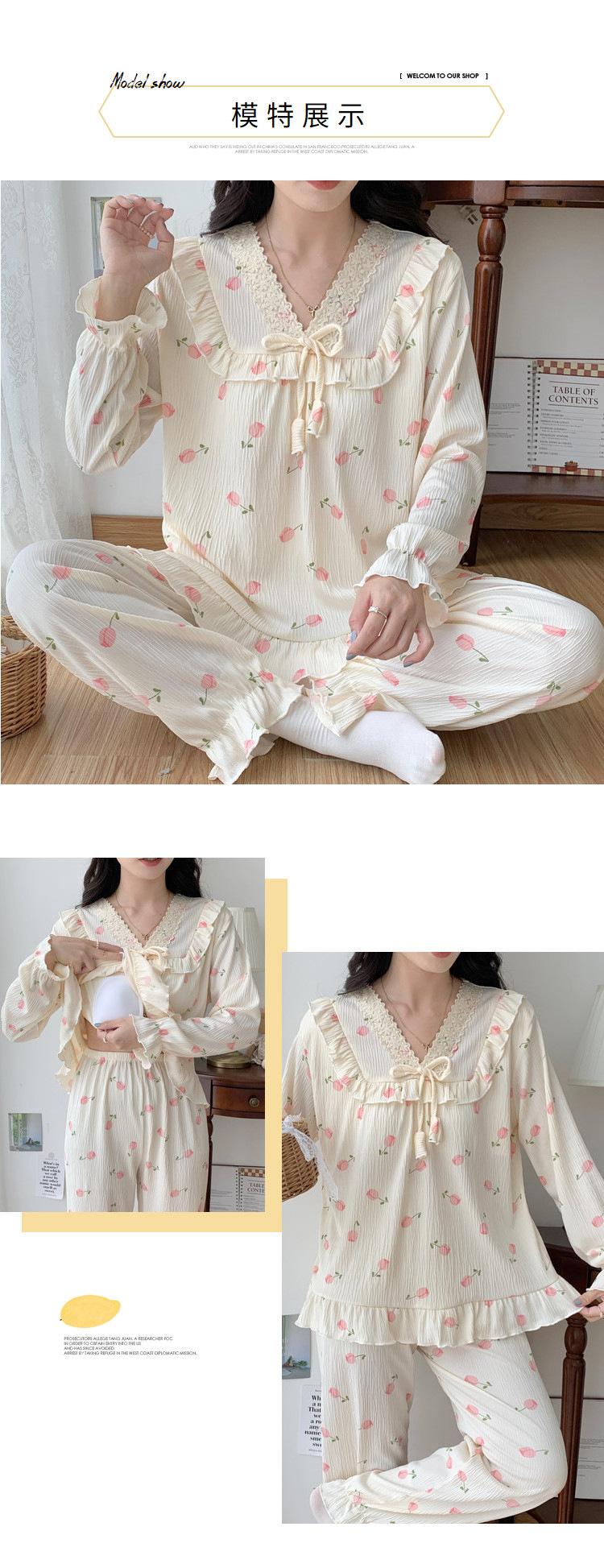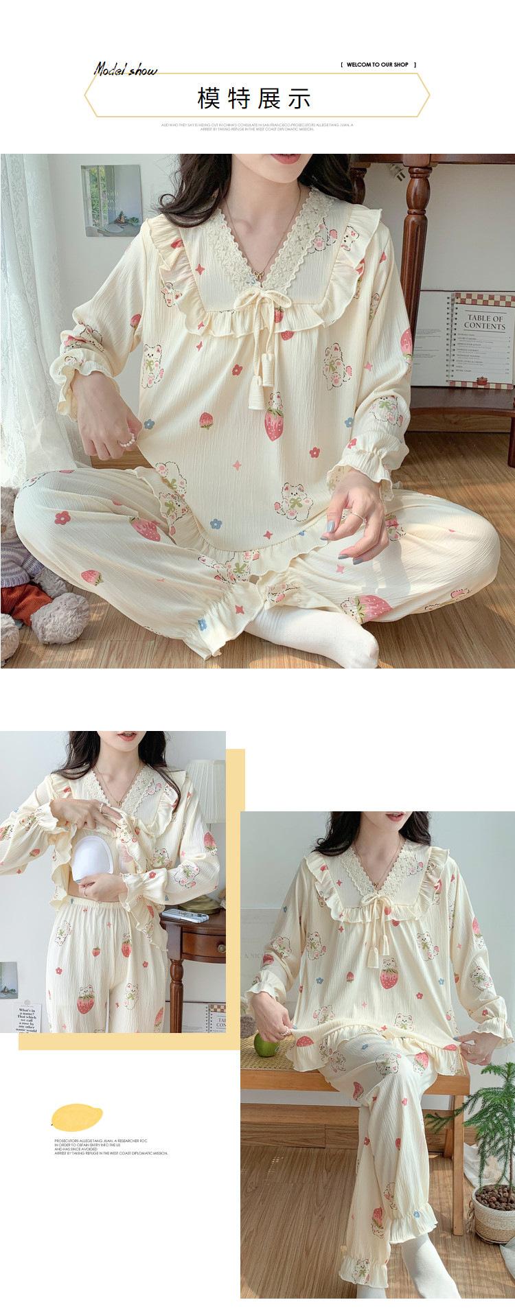 Pijamas de mujer de primavera y otoño con almohadilla para el pecho, pantalones de crepé de algodón de manga larga, ropa de casa de estilo princesa dulce y linda para usar en el exterior.