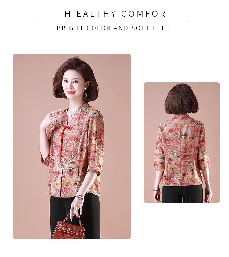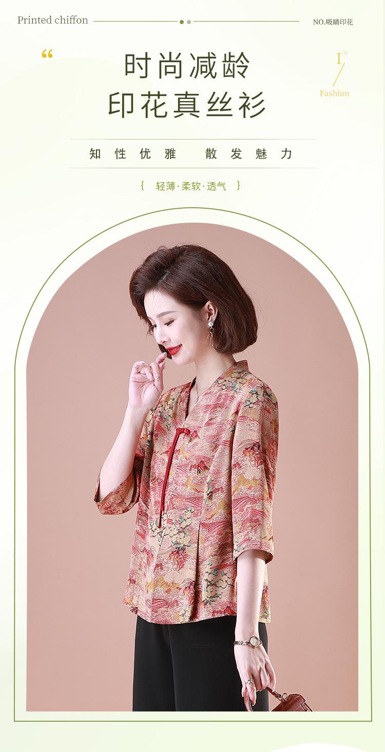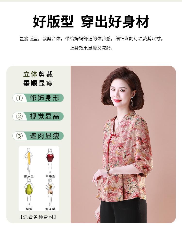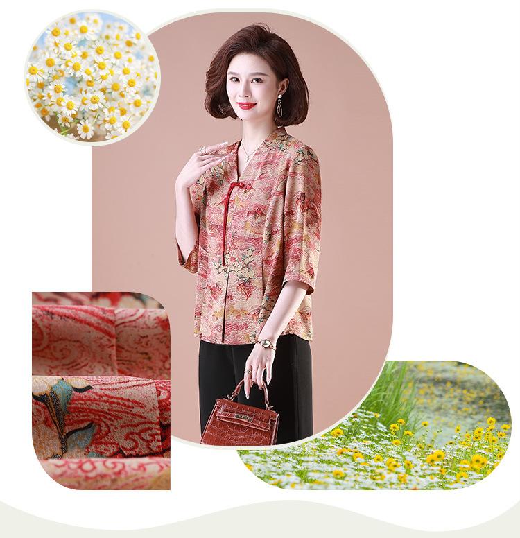 Camiseta de Verano para Mamá Pequeña de Seda de Morera de Alta Gama Talla Grande Talla Grande para Mujeres de Mediana Edad y Mayores Camisa Pequeña de Seda