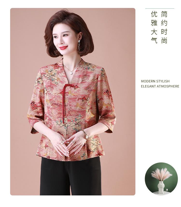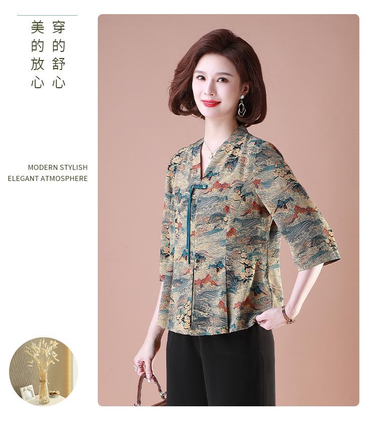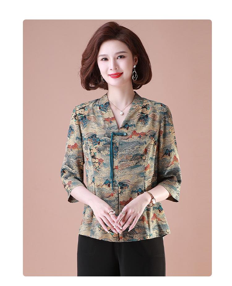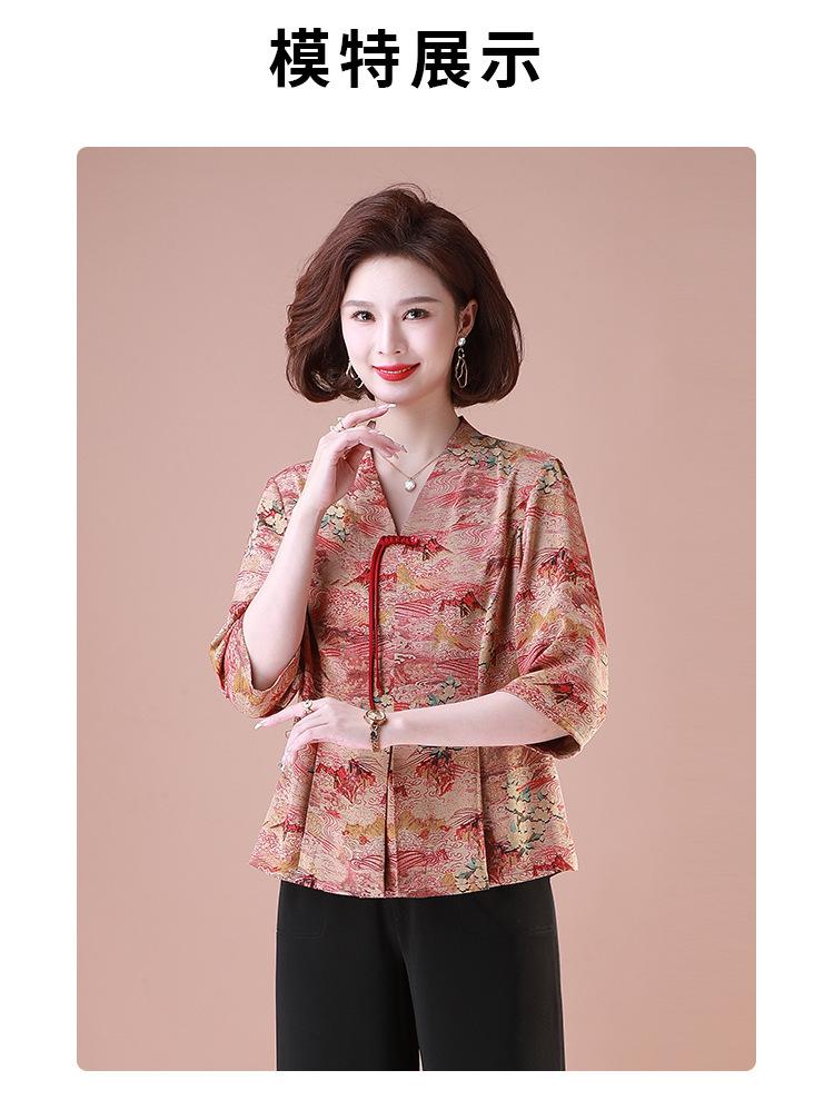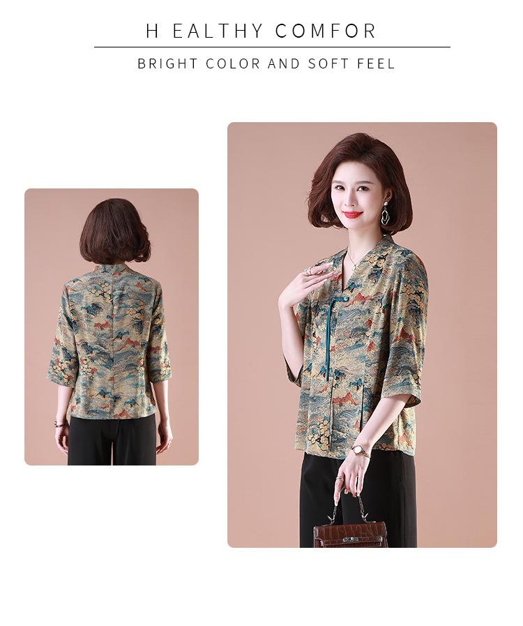 Camiseta de Verano para Mamá Pequeña de Seda de Morera de Alta Gama Talla Grande Talla Grande para Mujeres de Mediana Edad y Mayores Camisa Pequeña de Seda