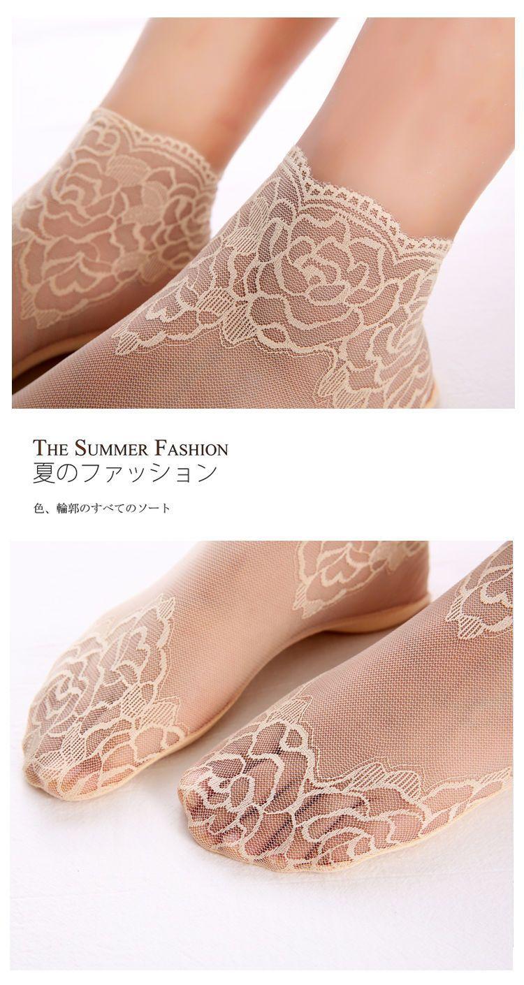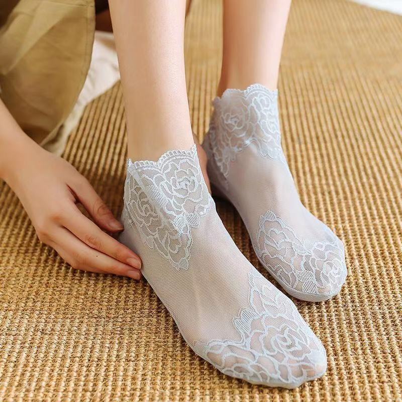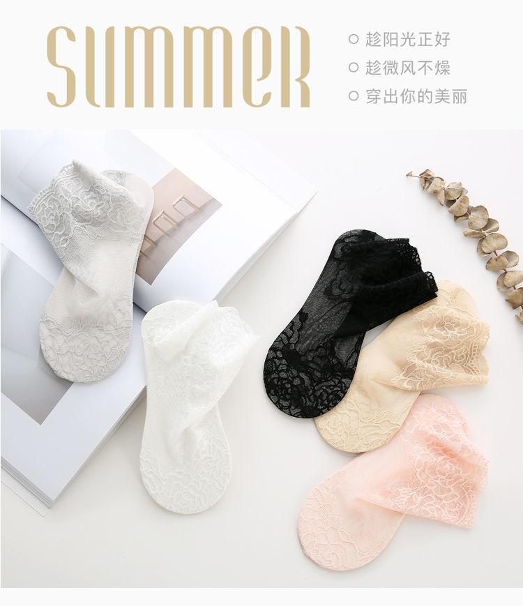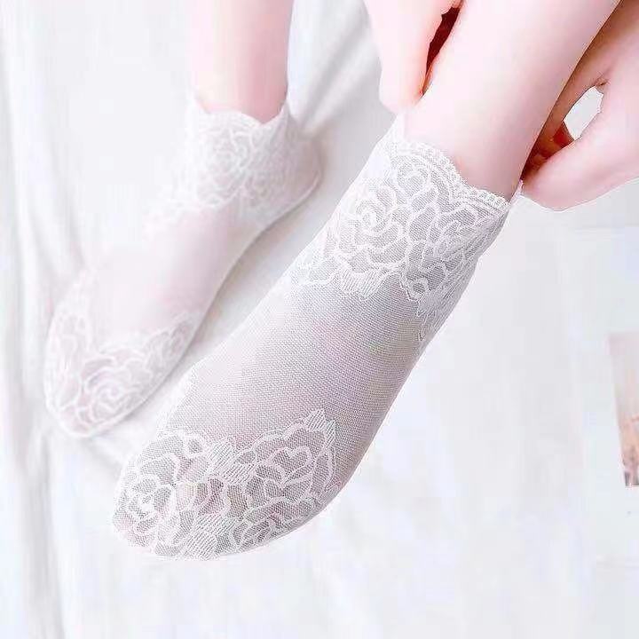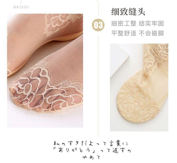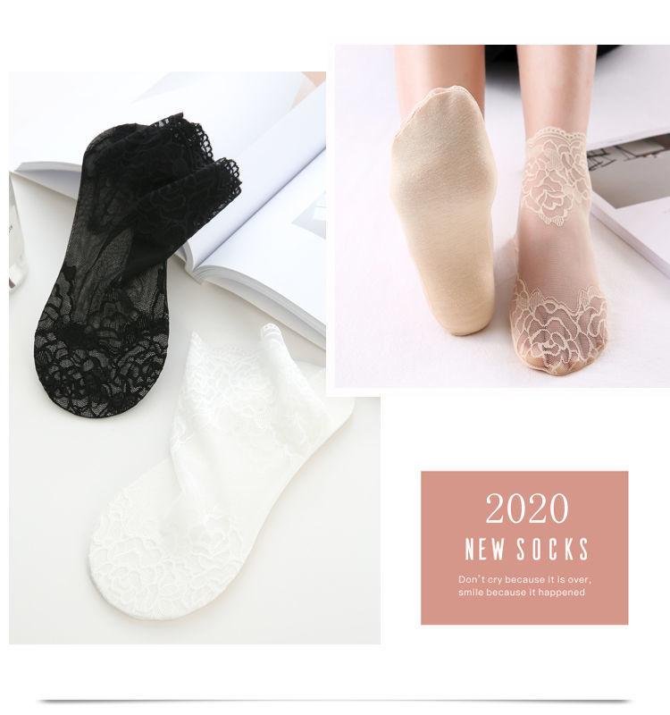 Medias de Seda Calcetines Cortos para Mujer Calcetines de Tubo Corto de Boca Baja Finos para Primavera y Verano Calcetines de Barco de Encaje de Malla para Mujer Calcetines Invisibles sin Talón