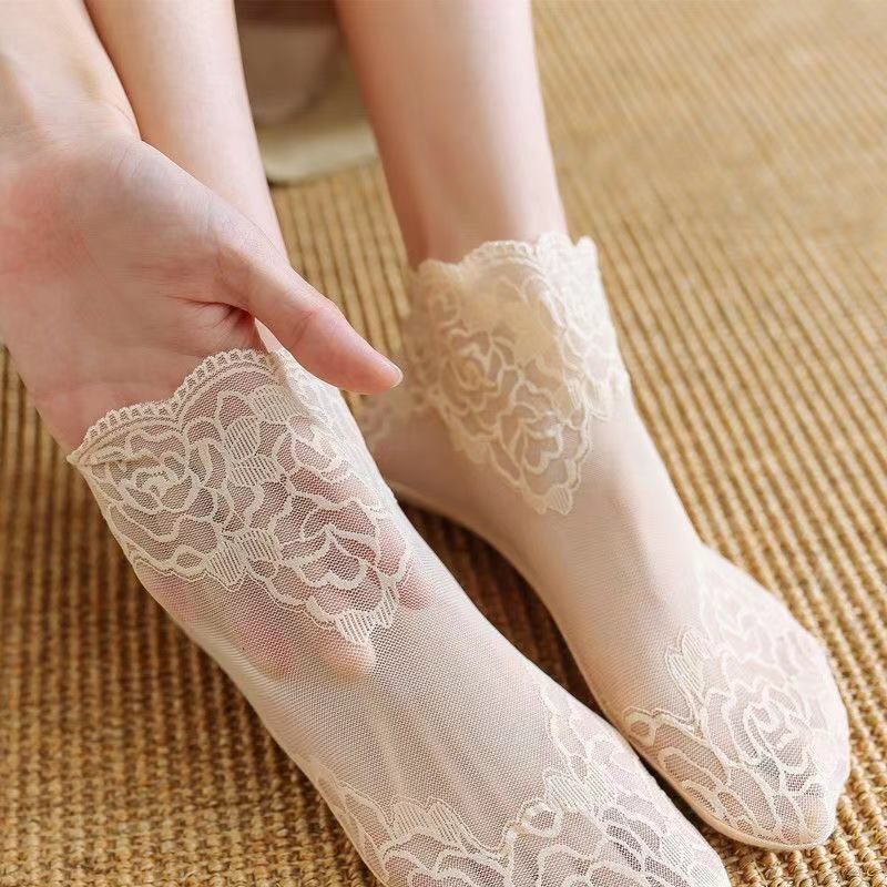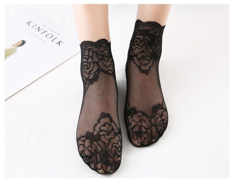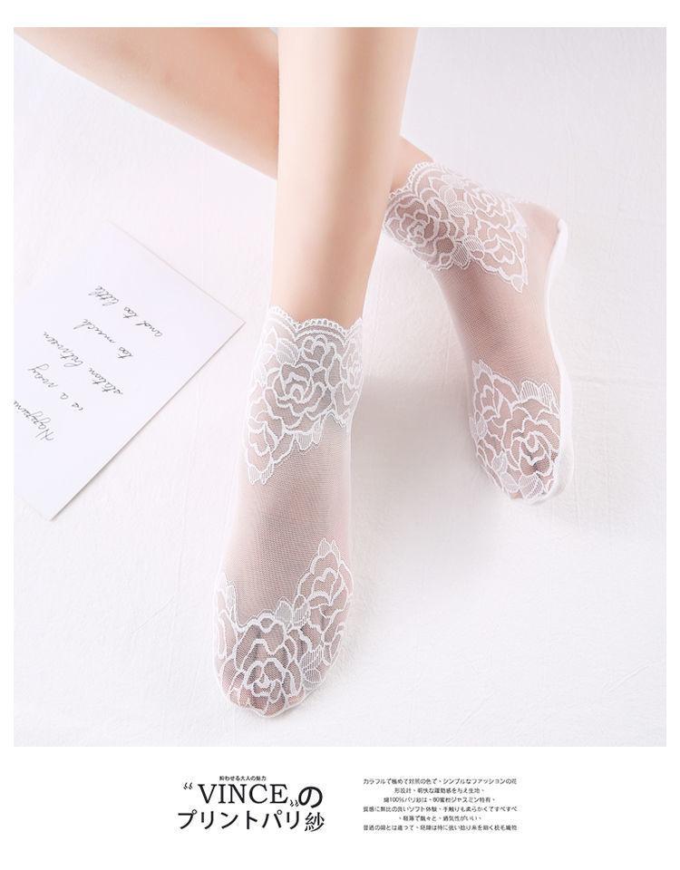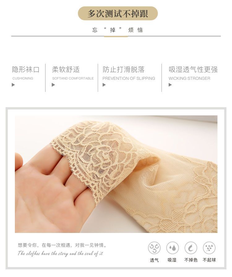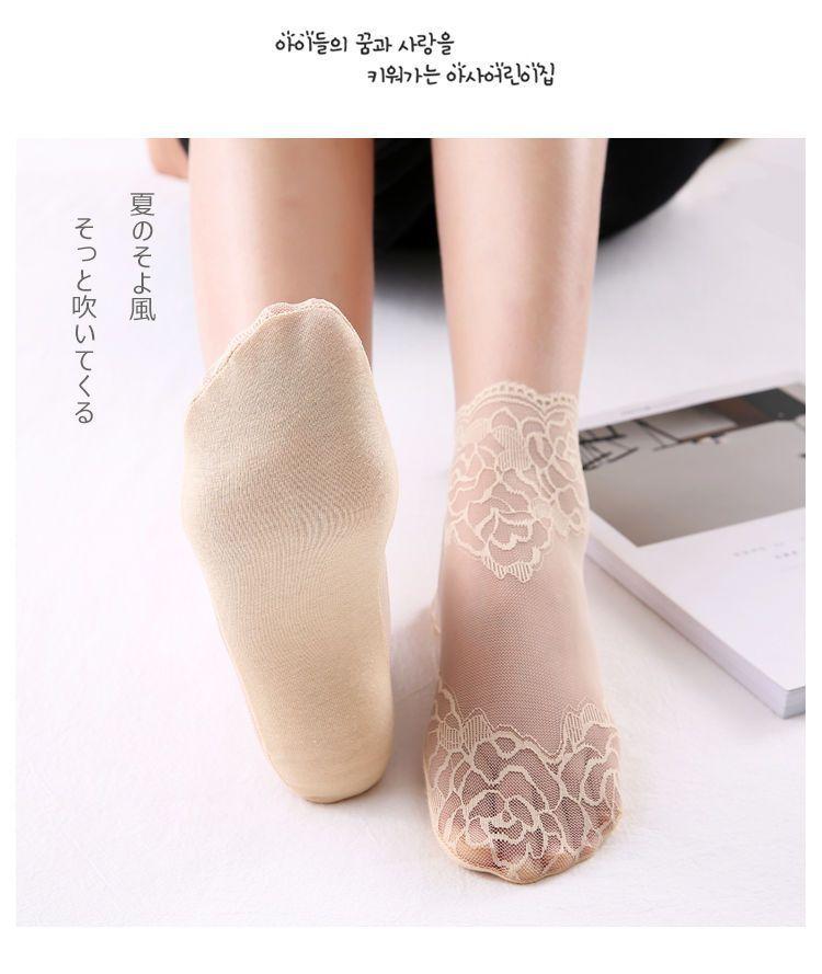 Medias de Seda Calcetines Cortos para Mujer Calcetines de Tubo Corto de Boca Baja Finos para Primavera y Verano Calcetines de Barco de Encaje de Malla para Mujer Calcetines Invisibles sin Talón