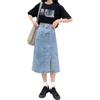 Falda gordita de mujer, moda de primavera, talla grande, para chica gordita, falda vaquera ajustada de longitud media estilo americano en forma de A para mujer