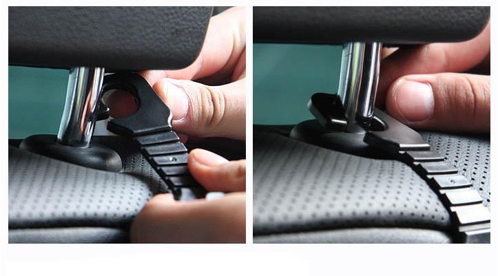 Instrucciones de uso: Simplemente instálelo en la barra del reposacabezas del asiento delantero. Es pequeño y práctico.