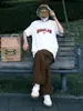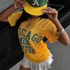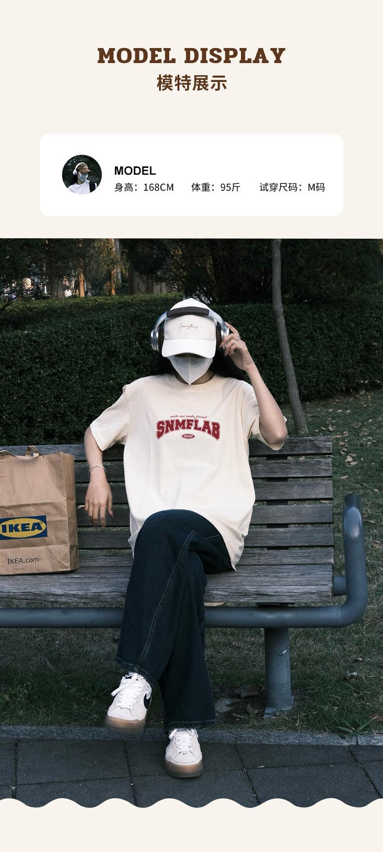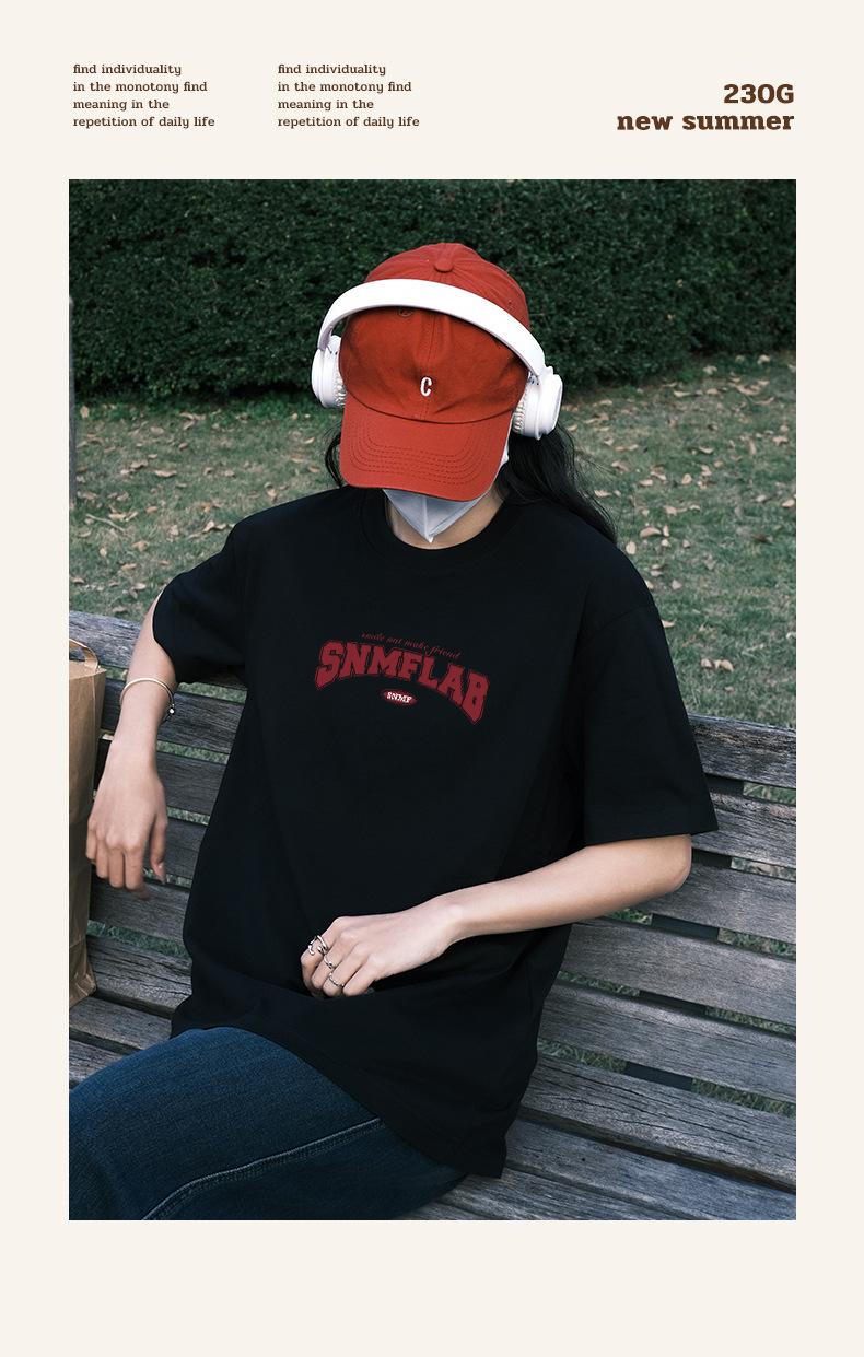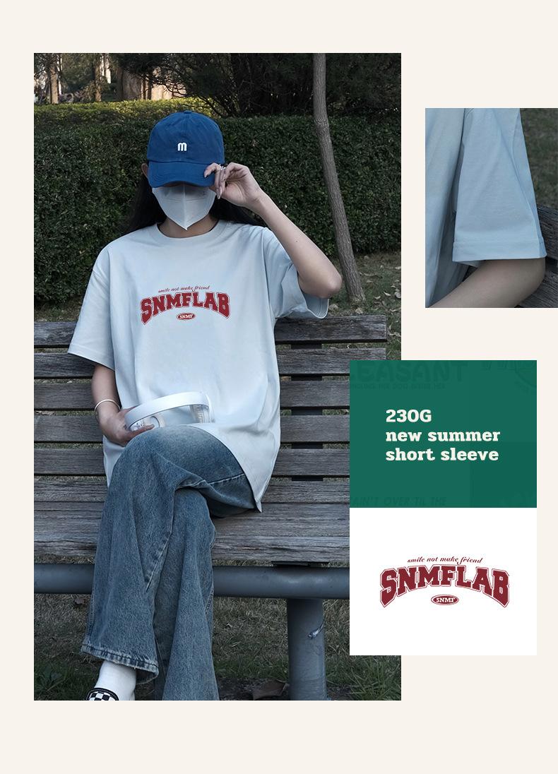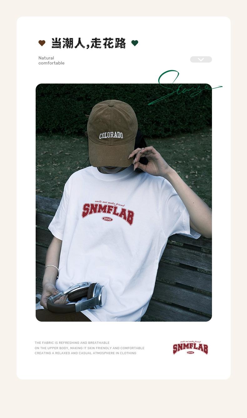 Camiseta Casual de Estilo Americano con Estampado de Letras de Manga Corta para Mujer 2024 Verano Nueva Algodón para Exterior Cuello Redondo Manga Media Top para Mujer