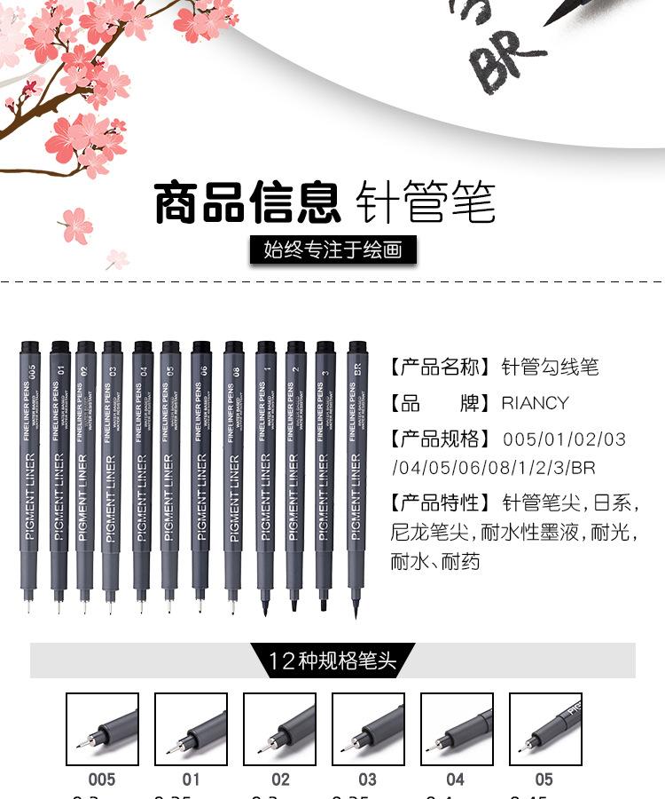 Set de 12 piezas de punta única Dibujo Diseño de cómic Pluma de gancho de aguja Transfronterizo Amazon Estudiante Belleza Pluma de gancho