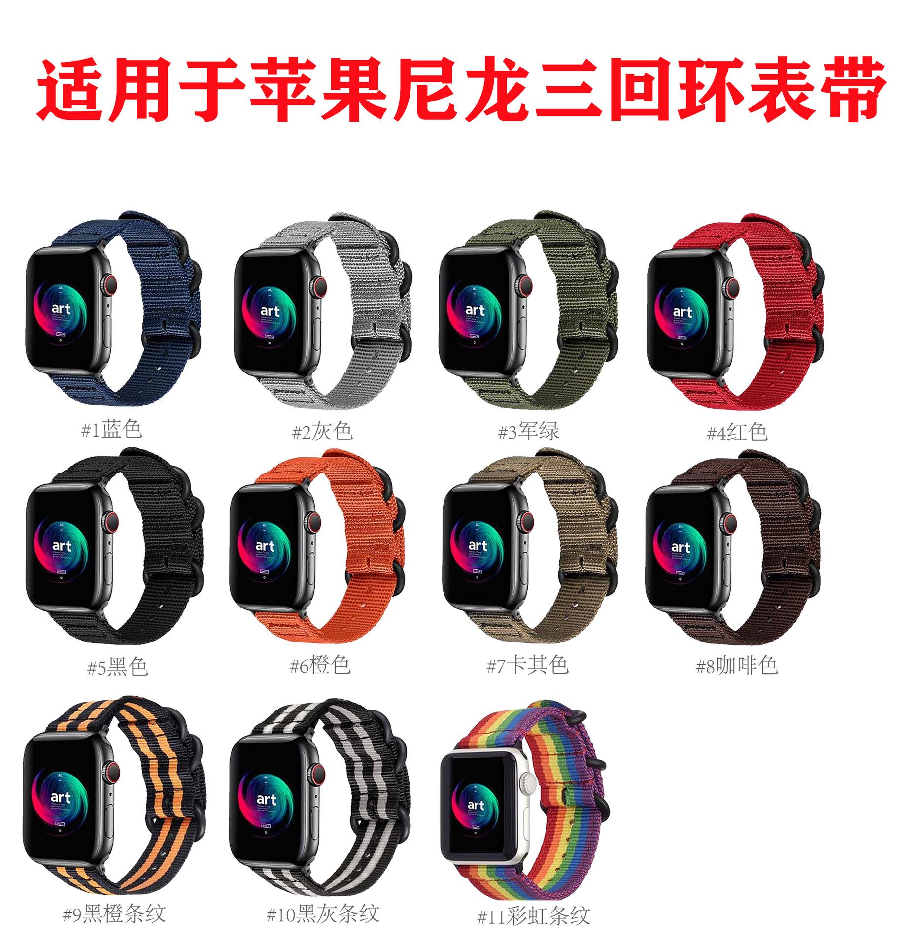 Adecuado para Correa de Nailon Apple SE Trenzada Transpirable Ligera Lona de Tres Anillos Correa Universal de Generación iwatch4567