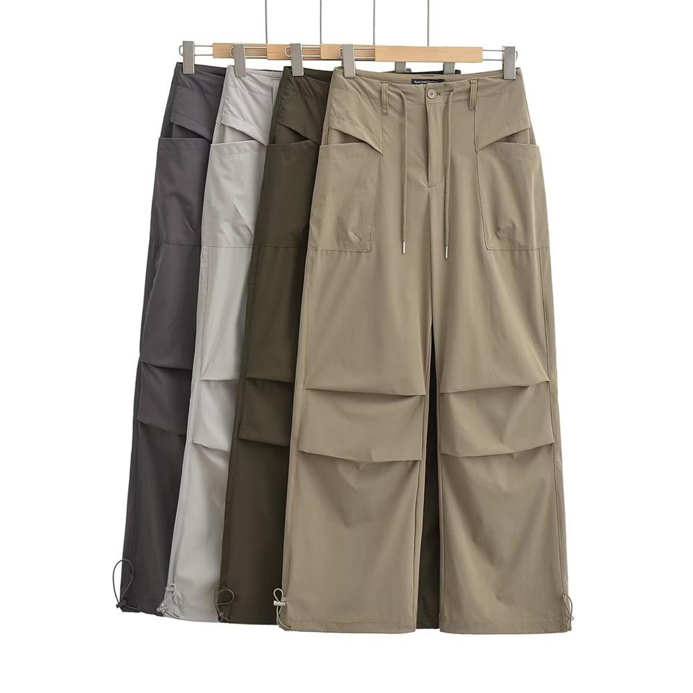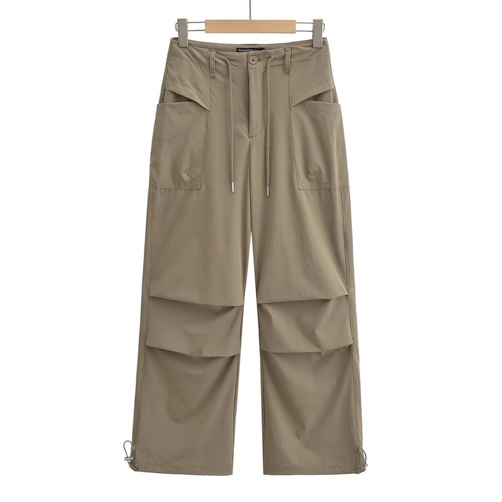 Pantalones casuales de color sólido de secado rápido para mujer, pantalones holgados, rectos y de pierna ancha, monos europeos y americanos, novedad de verano de 2024