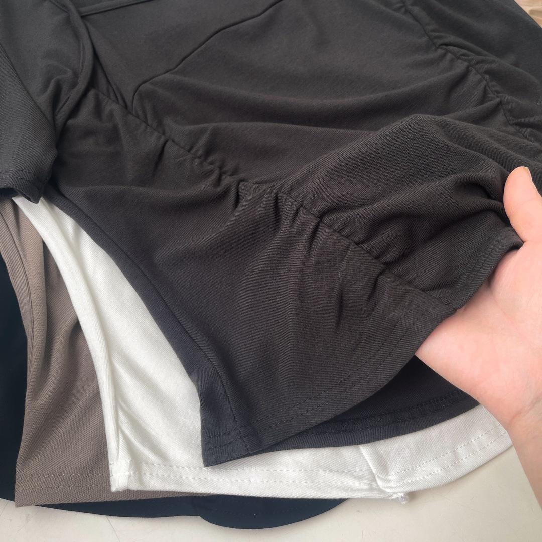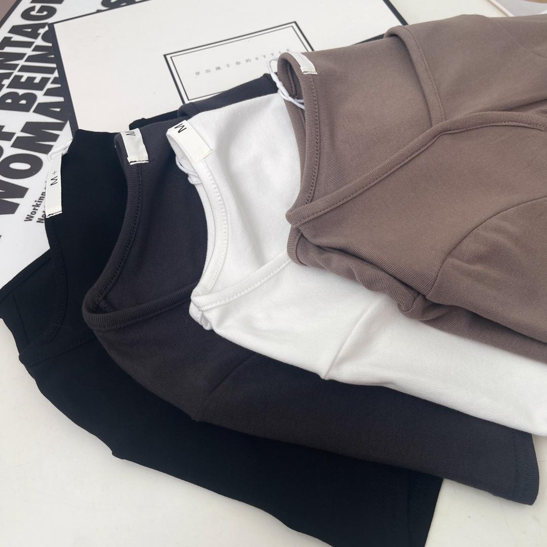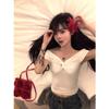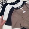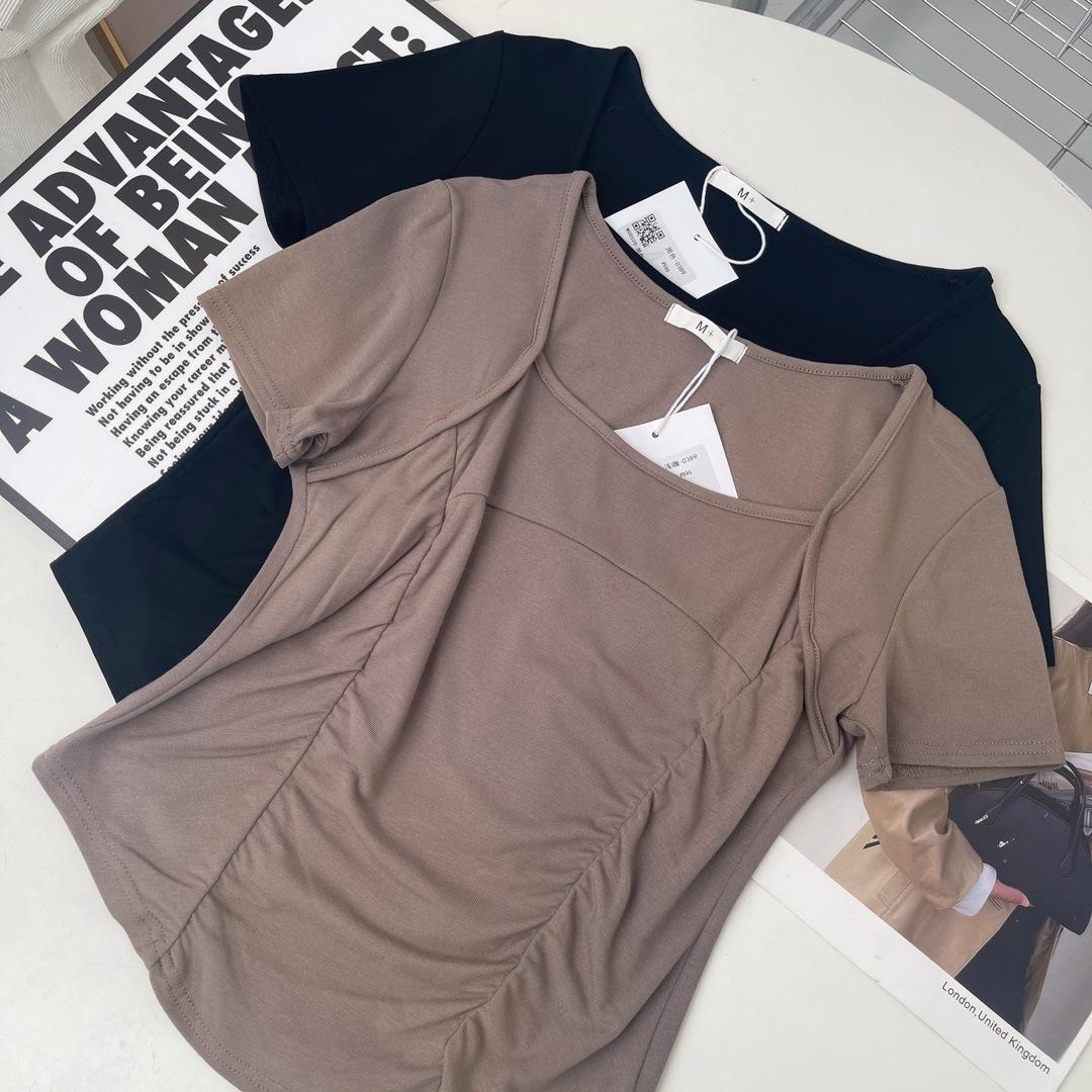 W00520 deseo puro cuello cuadrado hombro manga corta camiseta diseño de verano nicho chica hot corto cintura alta top de espina de pescado