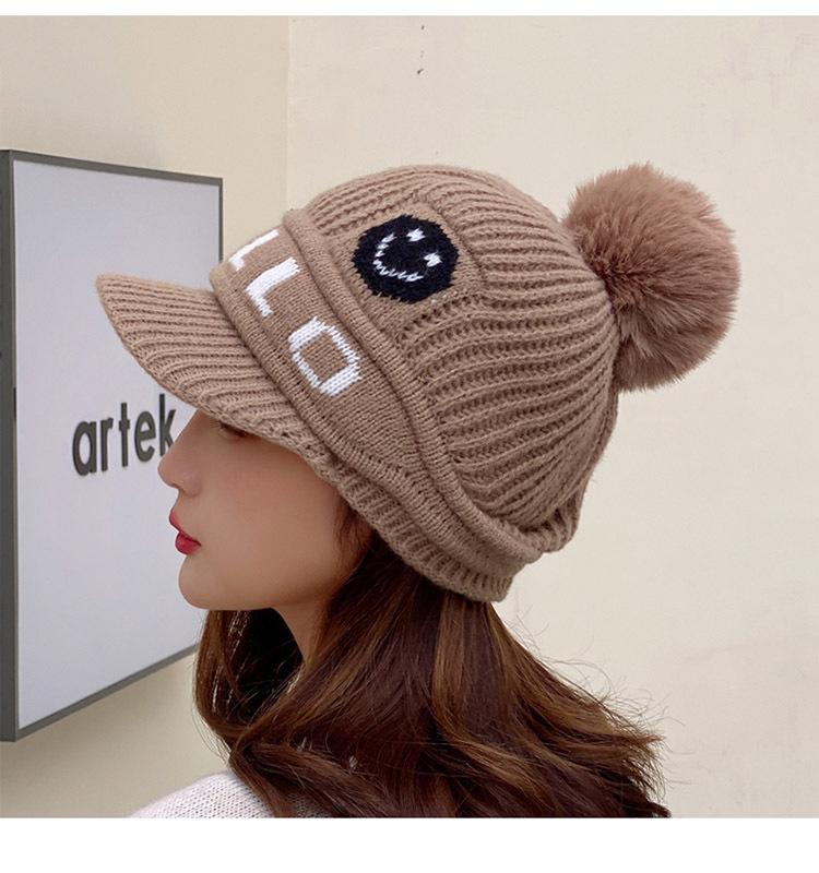 Gorro de Terciopelo Grueso para Mujer Invierno Nuevo Moda Coreana Bordado Gorro de Punto para Montar a Prueba de Frío Cálido Lana