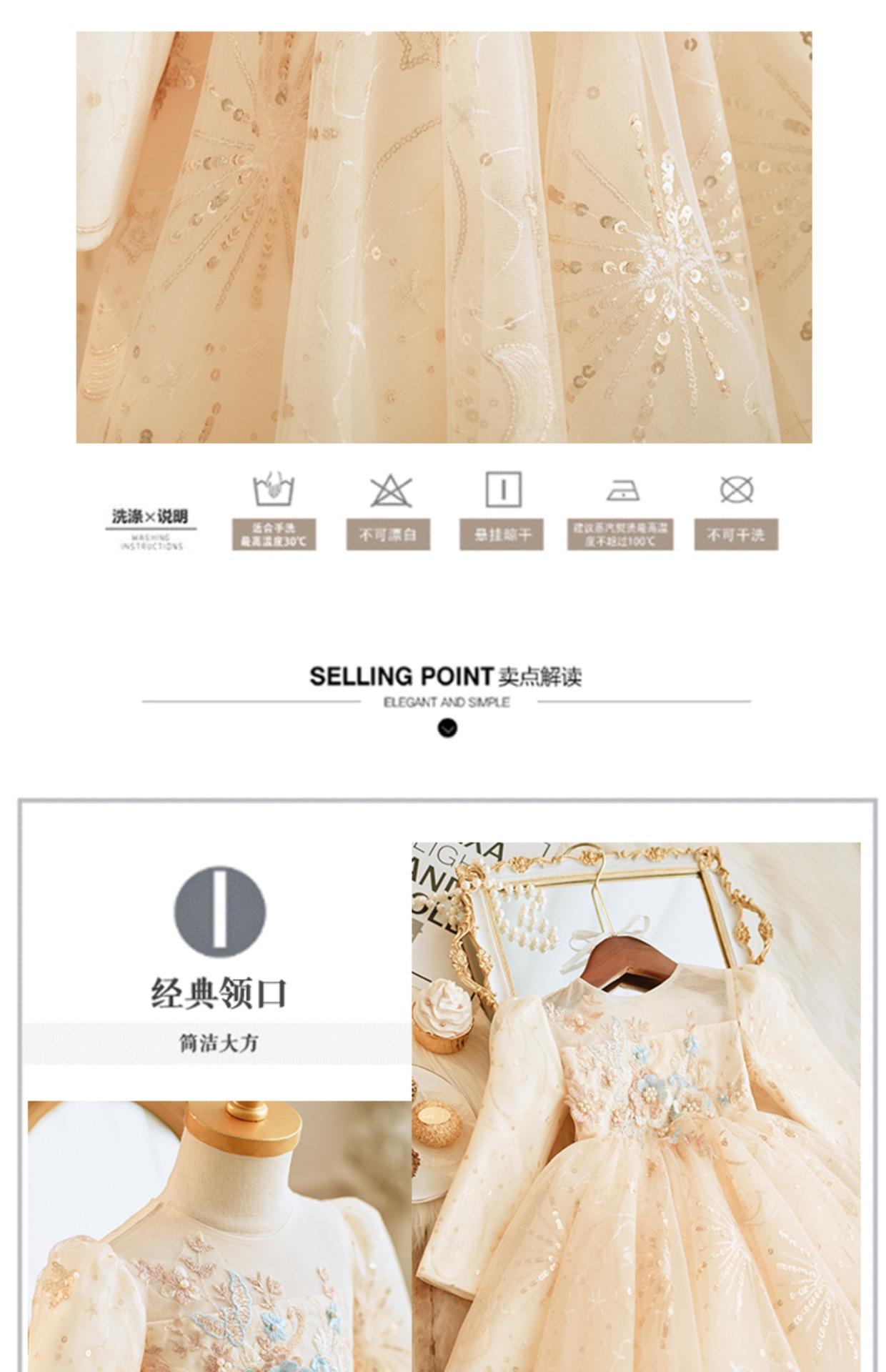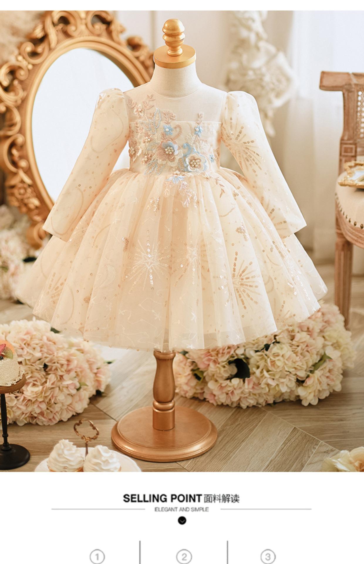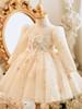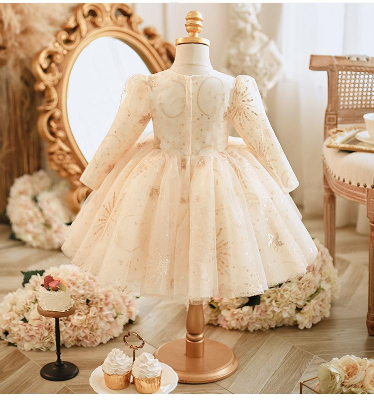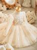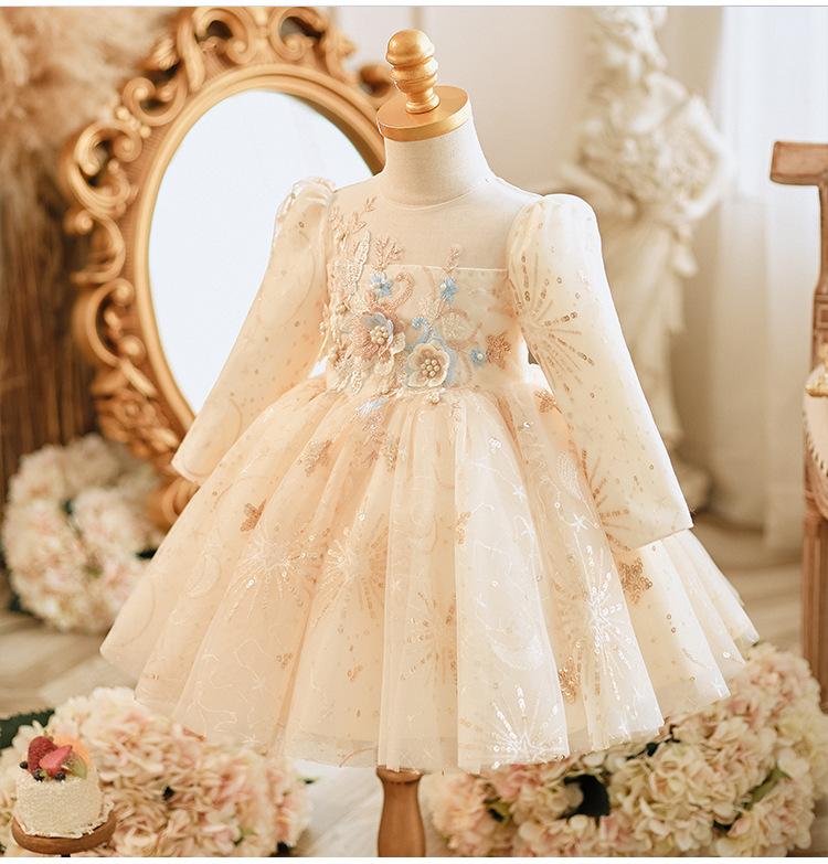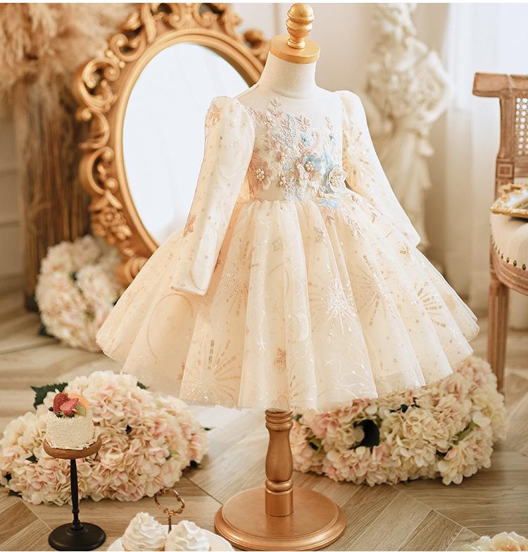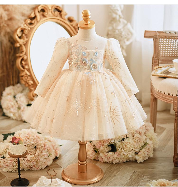 Vestido Formal de Manga Larga para Niños, Vestido de Fiesta de Cumpleaños de Manga Larga de Otoño para Bebitas de Un Año, Vestido de Celebración de Cumpleaños, Vestido de Princesa