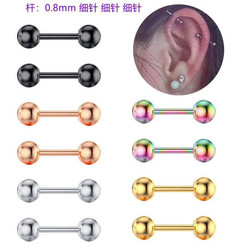 Explosiones transfronterizas Mini Aguja Fina Uña para la Oreja Uña para la Lengua Rosca de Doble Cabeza Barra de Bola Redonda Acero Inoxidable Piercing para el Ombligo Uña para el Hueso de la Oreja Oreja