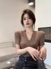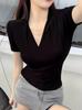 Compra Camiseta de manga corta con cuello en V para mujer, estilo retro de Hong Kong, adelgazante, combinable, de verano, venta al por mayor transfronteriza al por mayor en Joom.pro