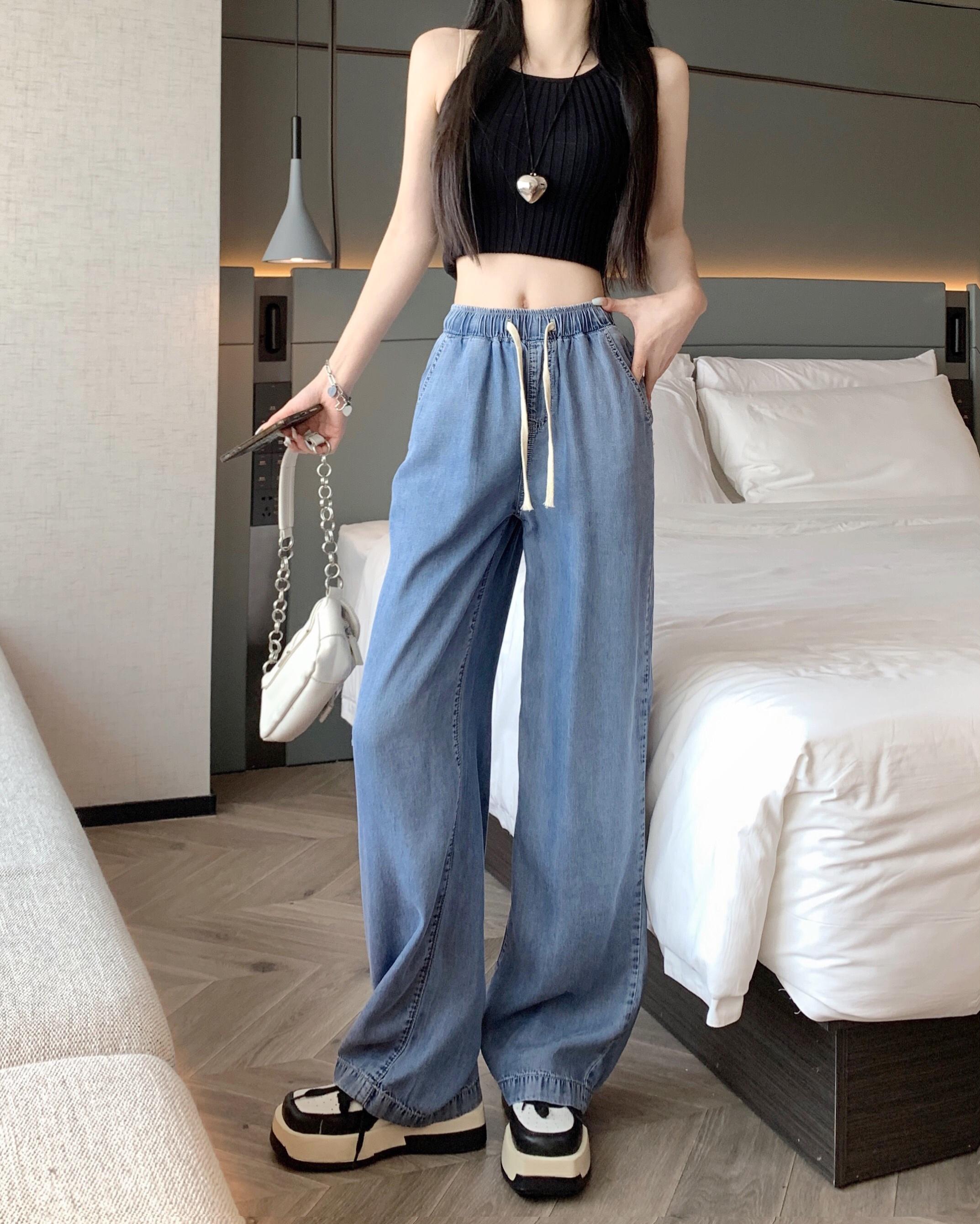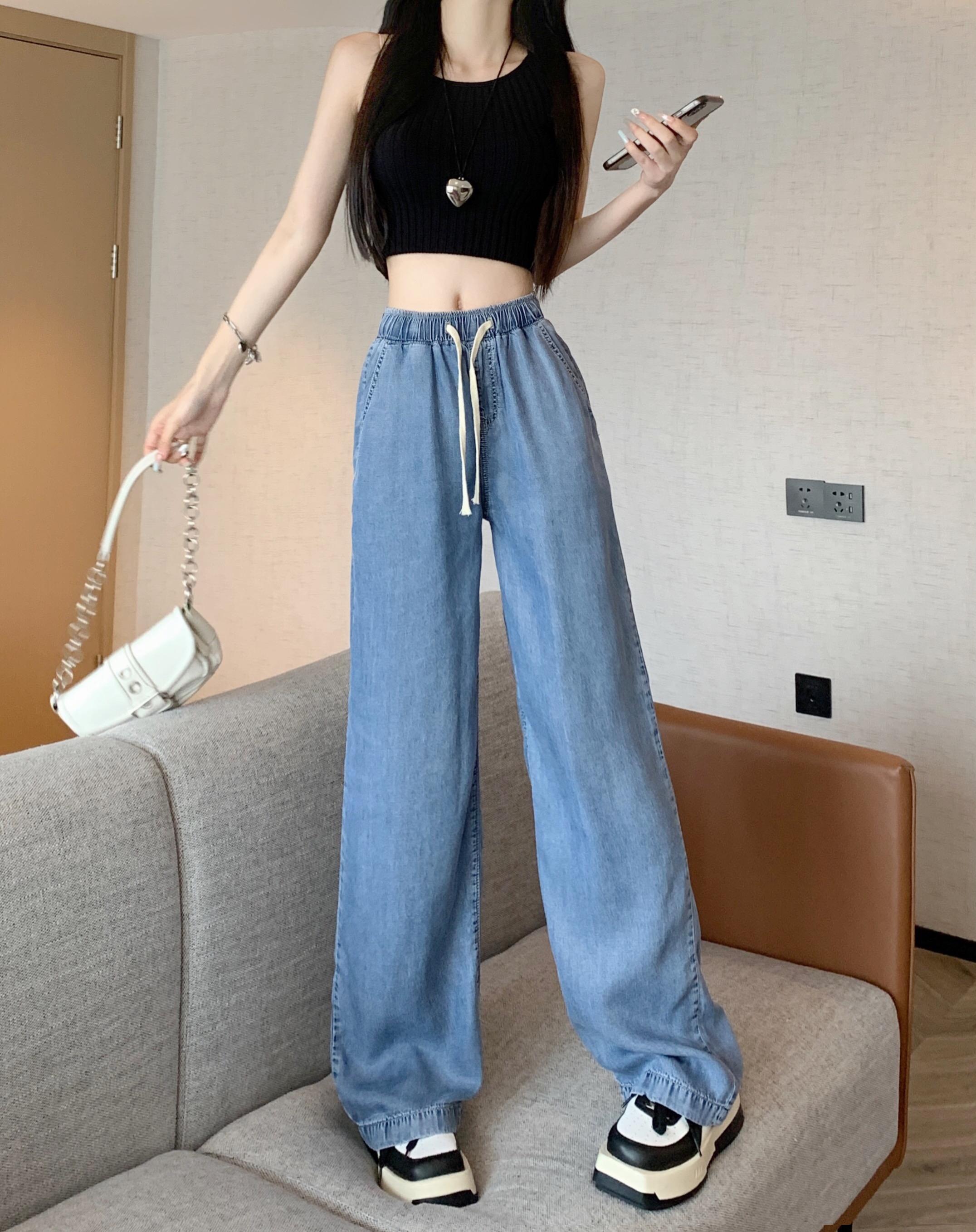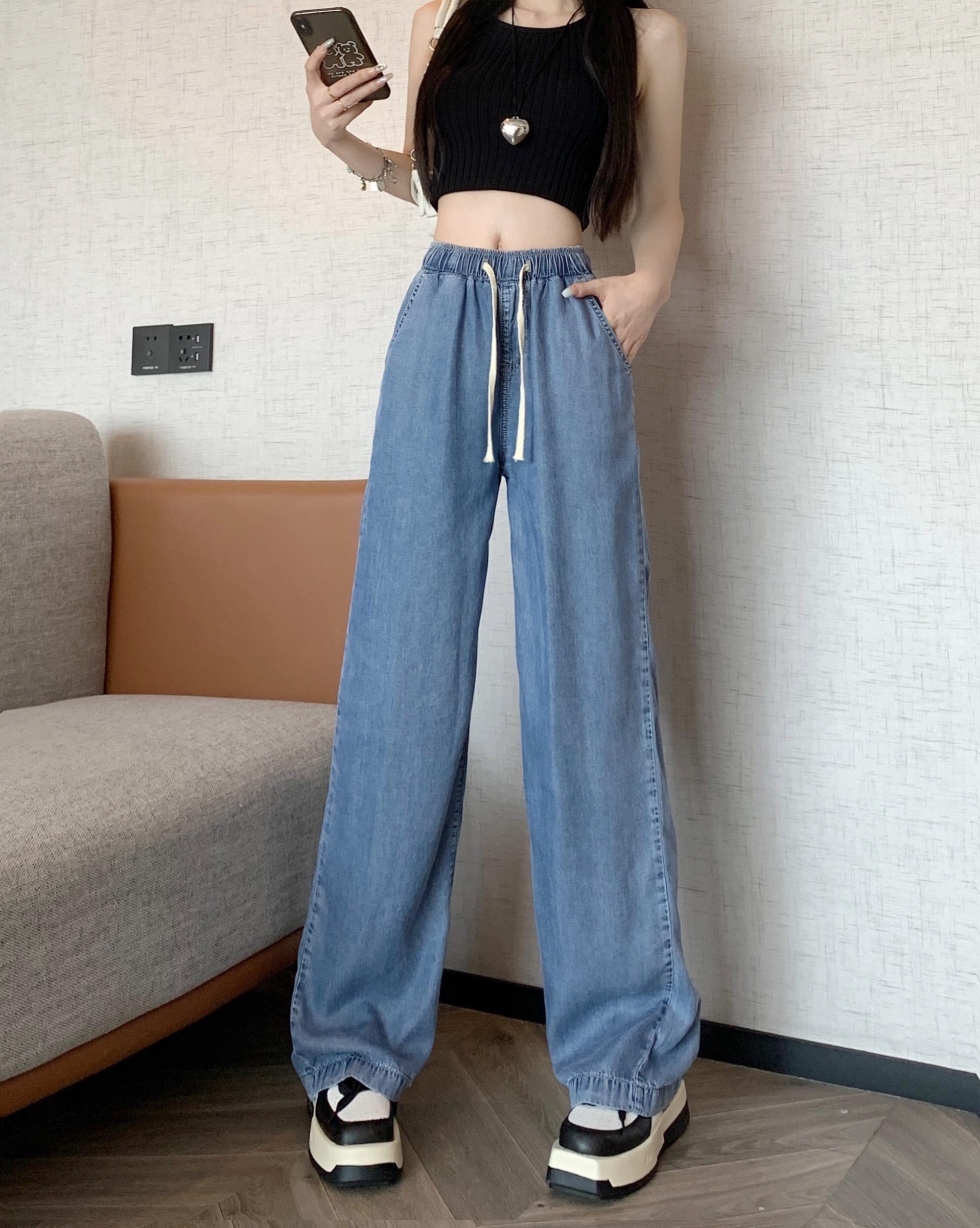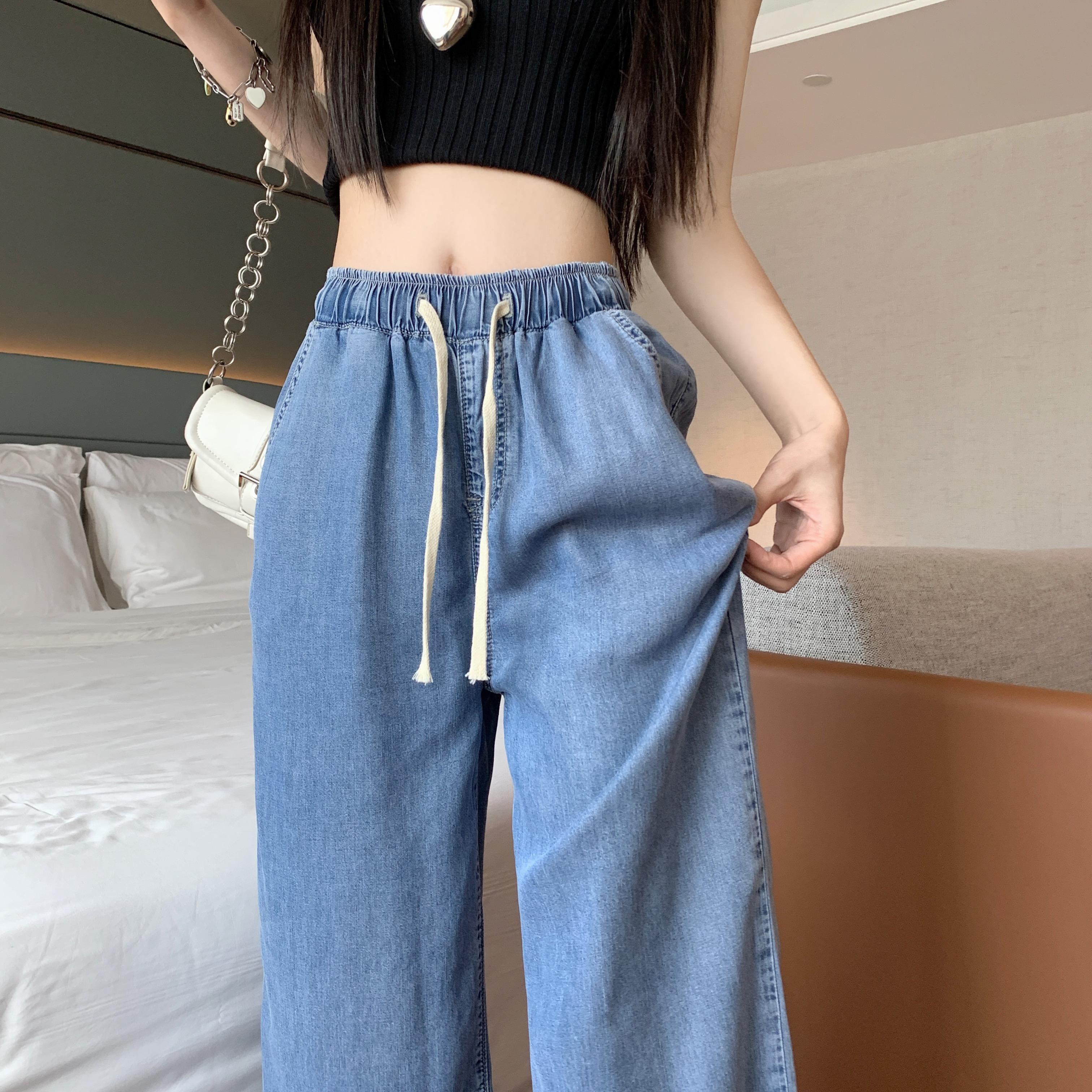 Pantalones vaqueros de verano finos de cintura alta con efecto adelgazante y corte recto en talla grande de Tencel con figura en forma de pera para mujer