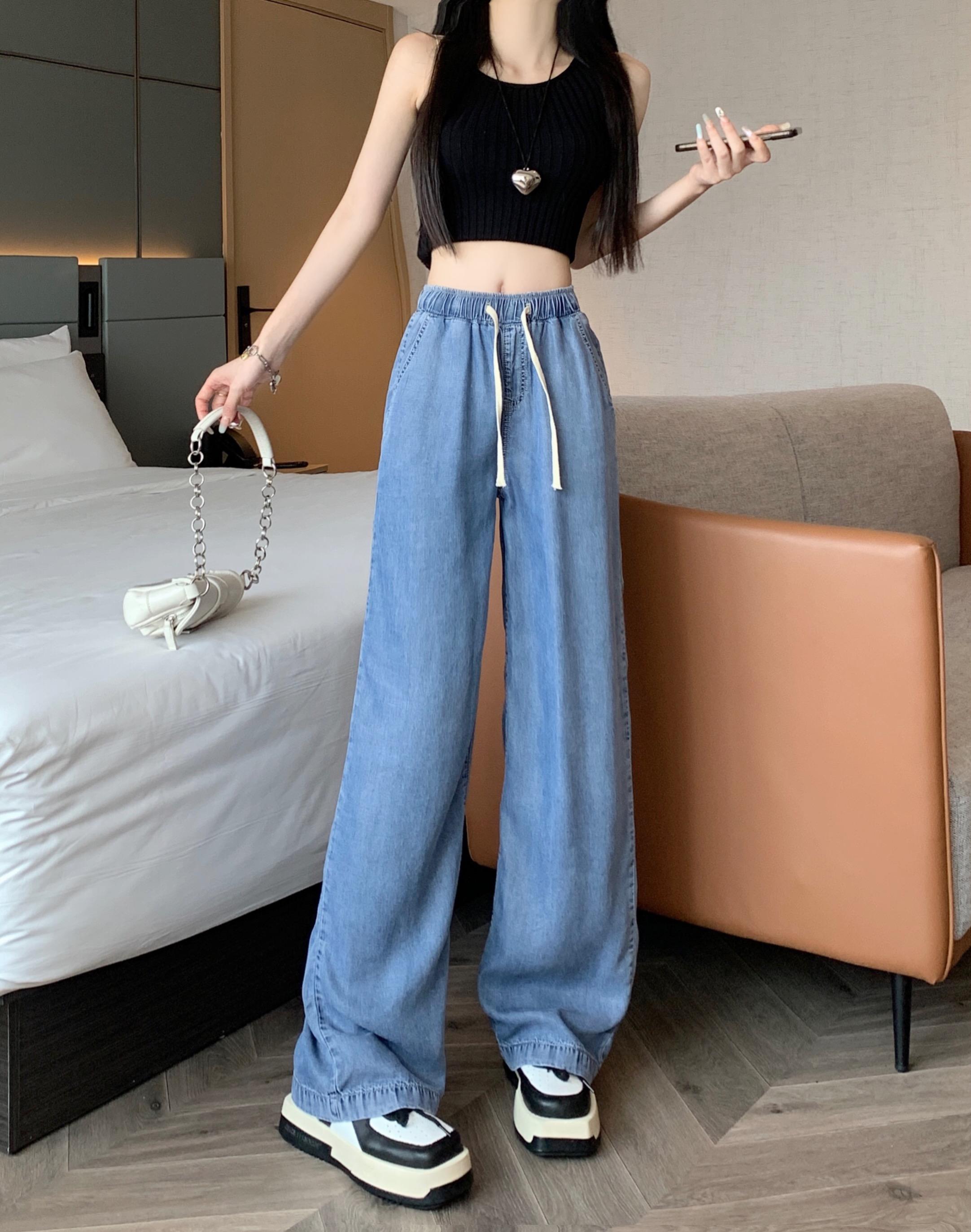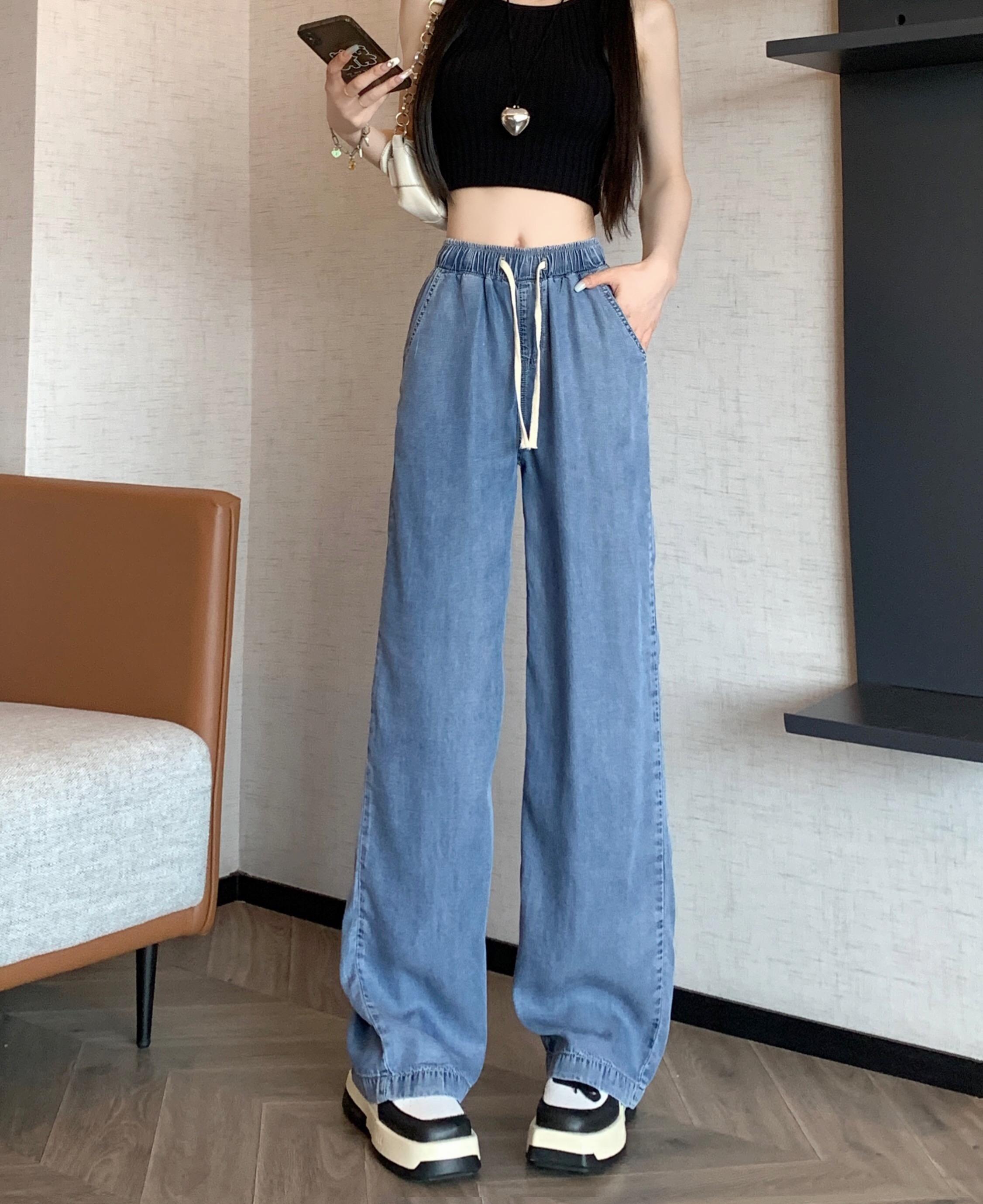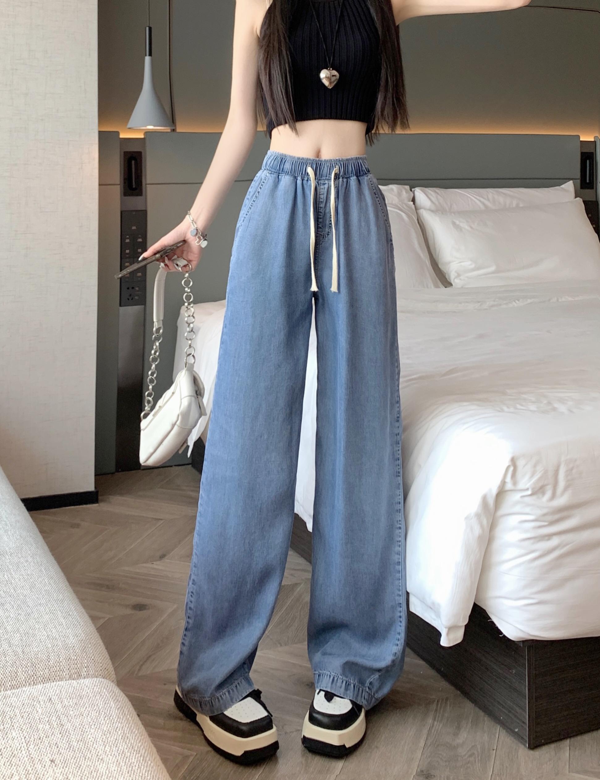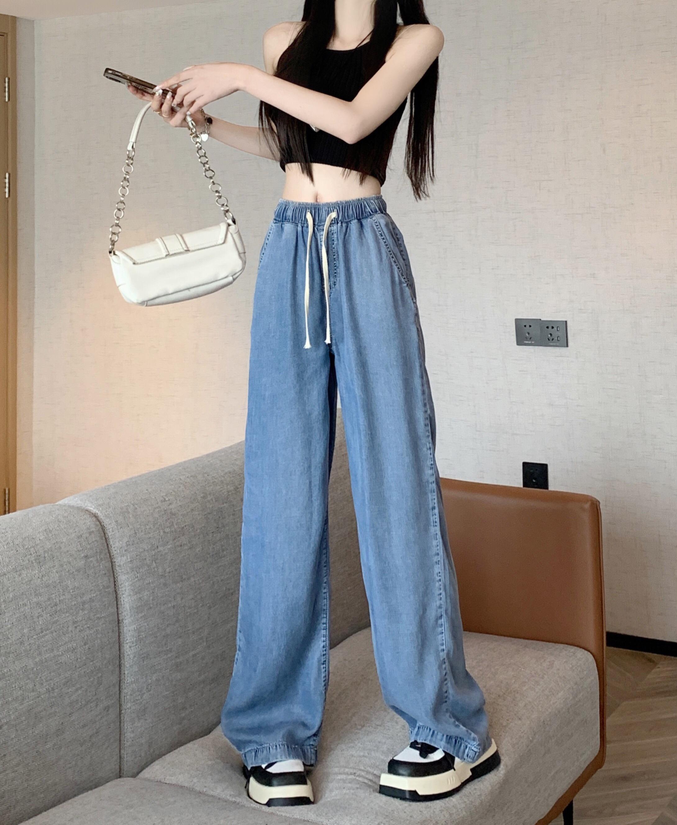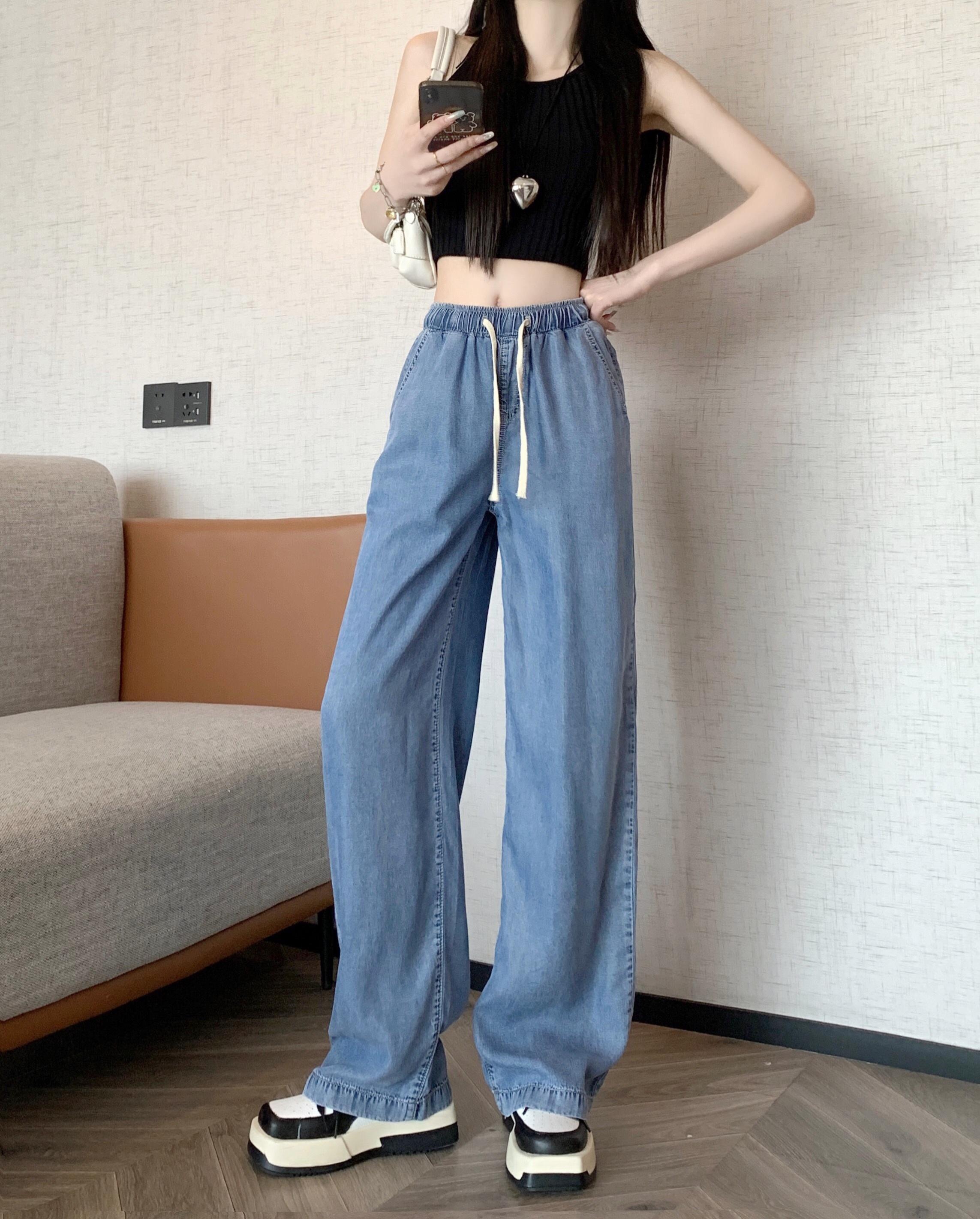 Pantalones vaqueros de verano finos de cintura alta con efecto adelgazante y corte recto en talla grande de Tencel con figura en forma de pera para mujer