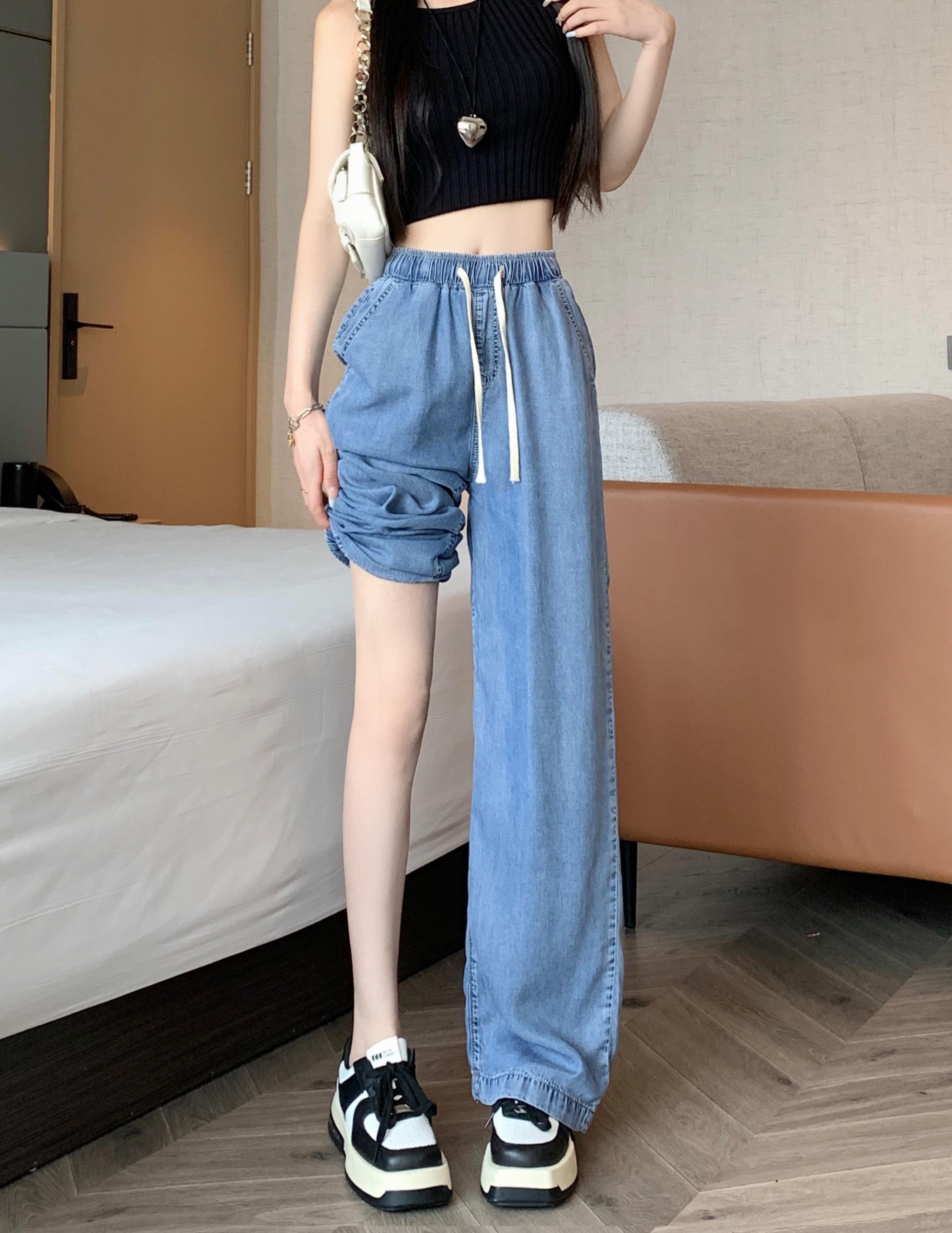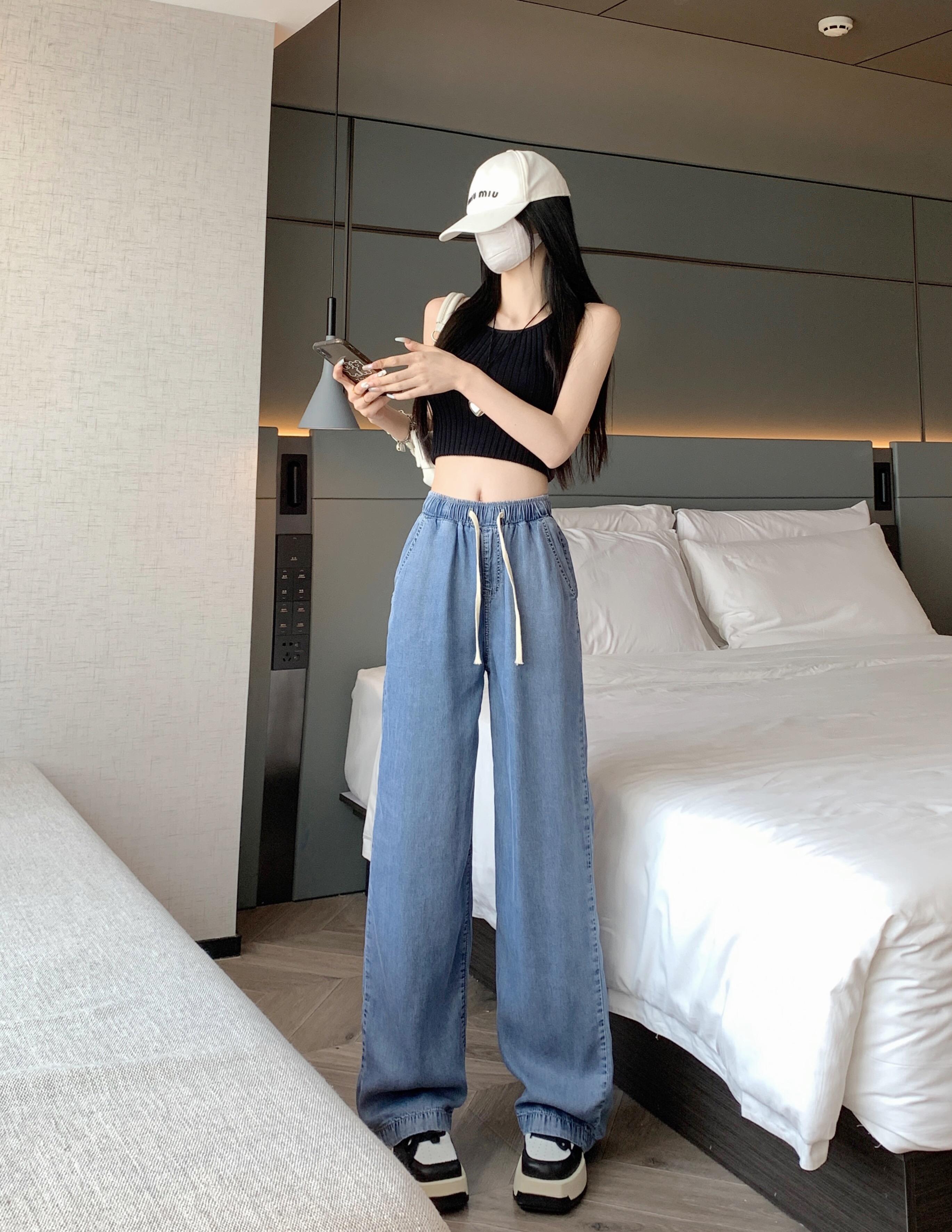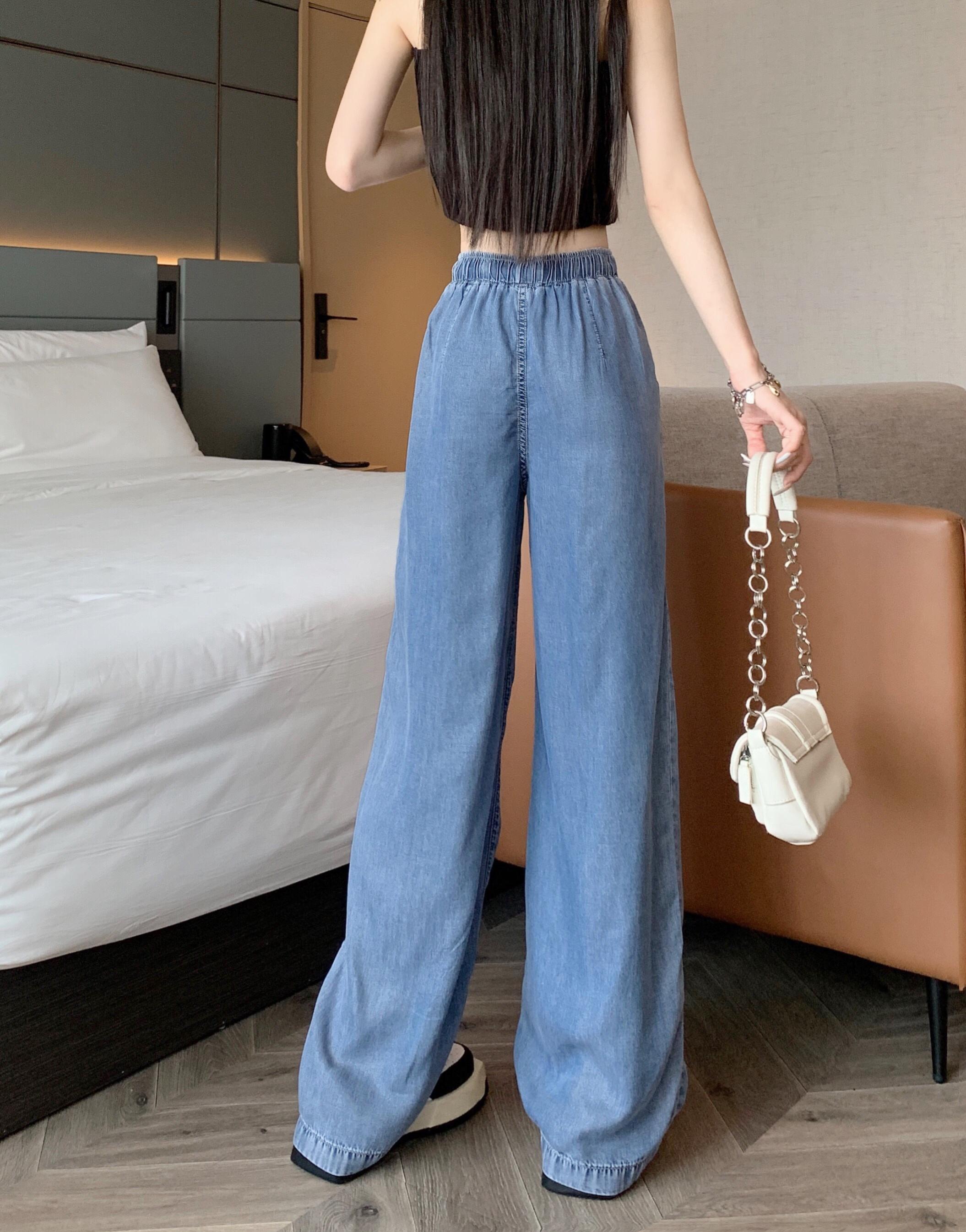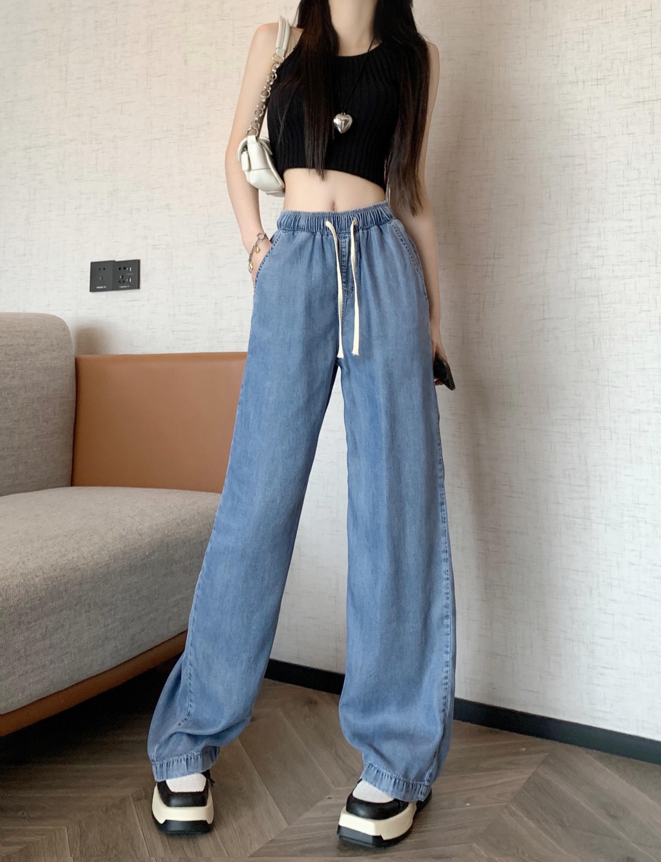 Pantalones vaqueros de verano finos de cintura alta con efecto adelgazante y corte recto en talla grande de Tencel con figura en forma de pera para mujer