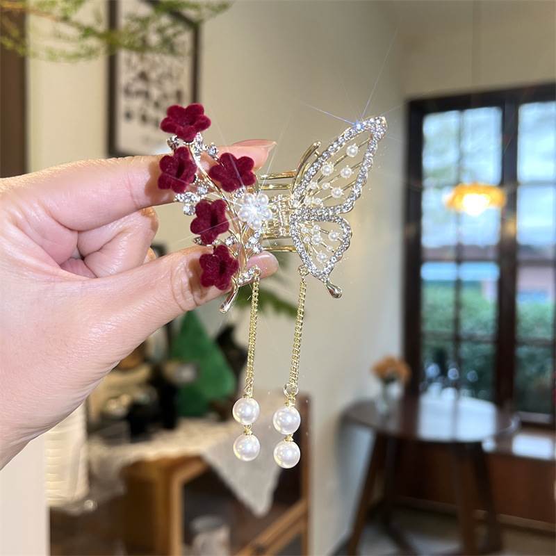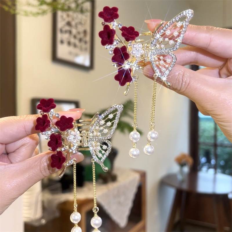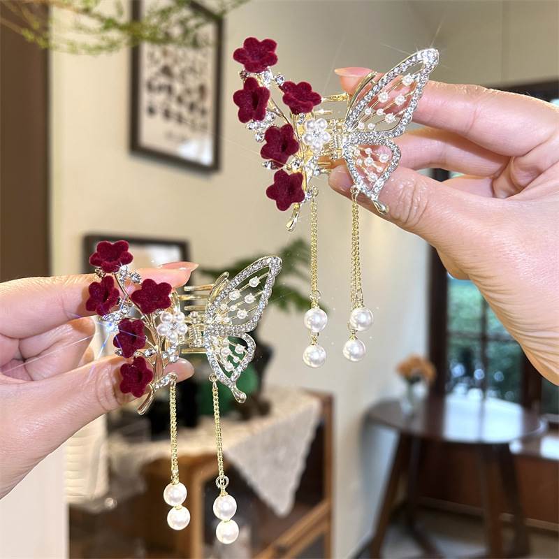 Horquilla para el pelo con forma de mariposa y flores para otoño e invierno de 2023, horquilla con temperamento para la parte trasera del pelo, pinza para el pelo con lazo, accesorios para el cabello para mujer