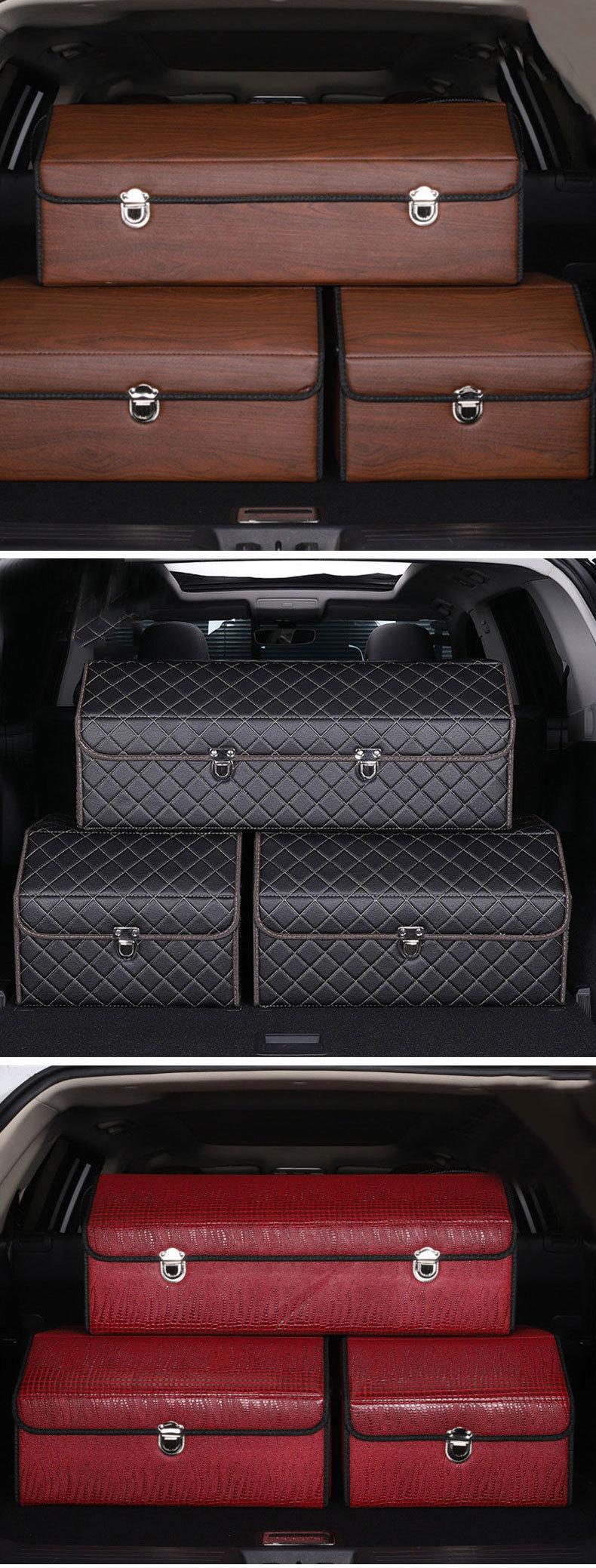 Caja de almacenamiento plegable para maletero de coche, caja de almacenamiento de cuero, caja de almacenamiento multifuncional para coche, caja de acabado, suministros para coche