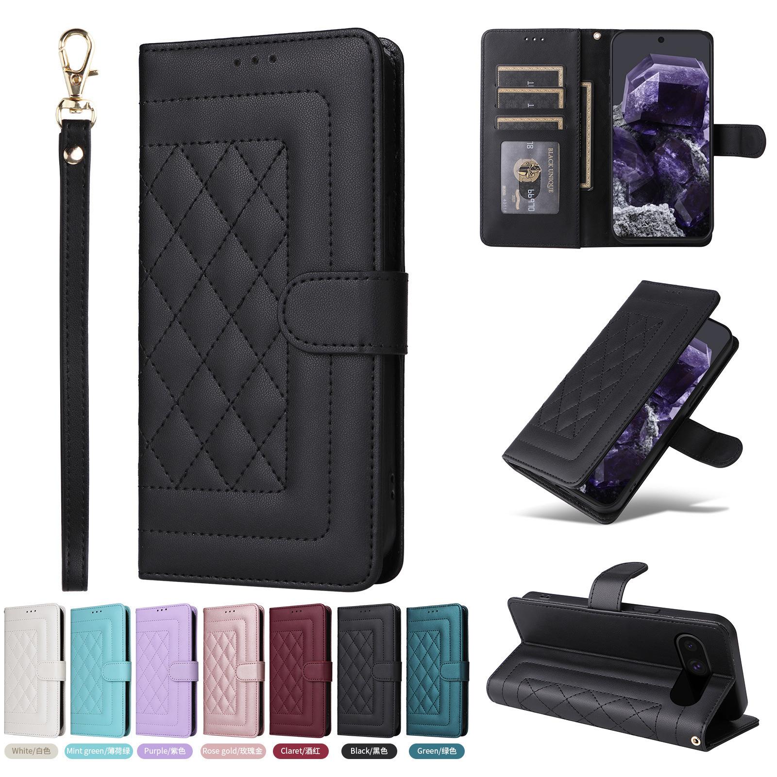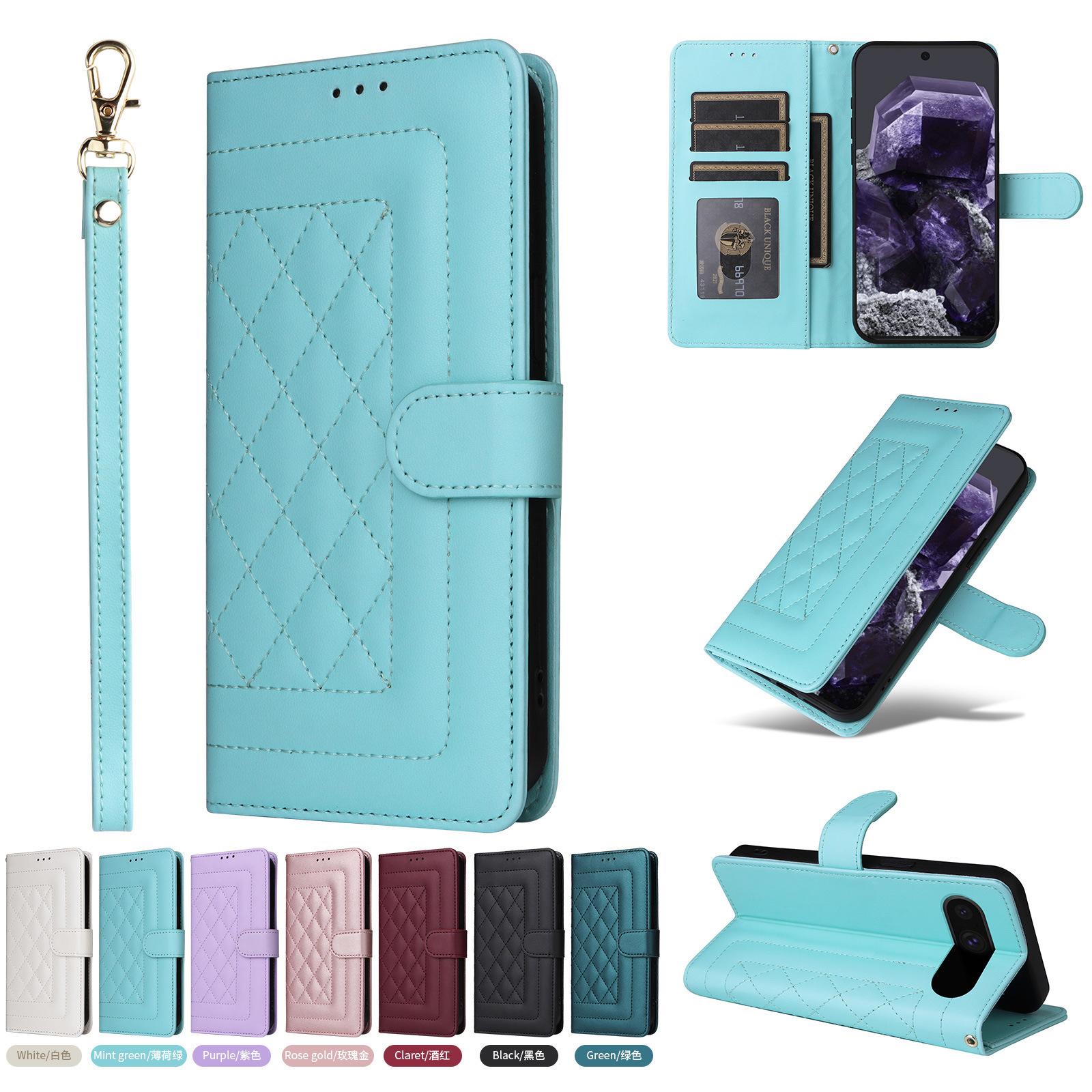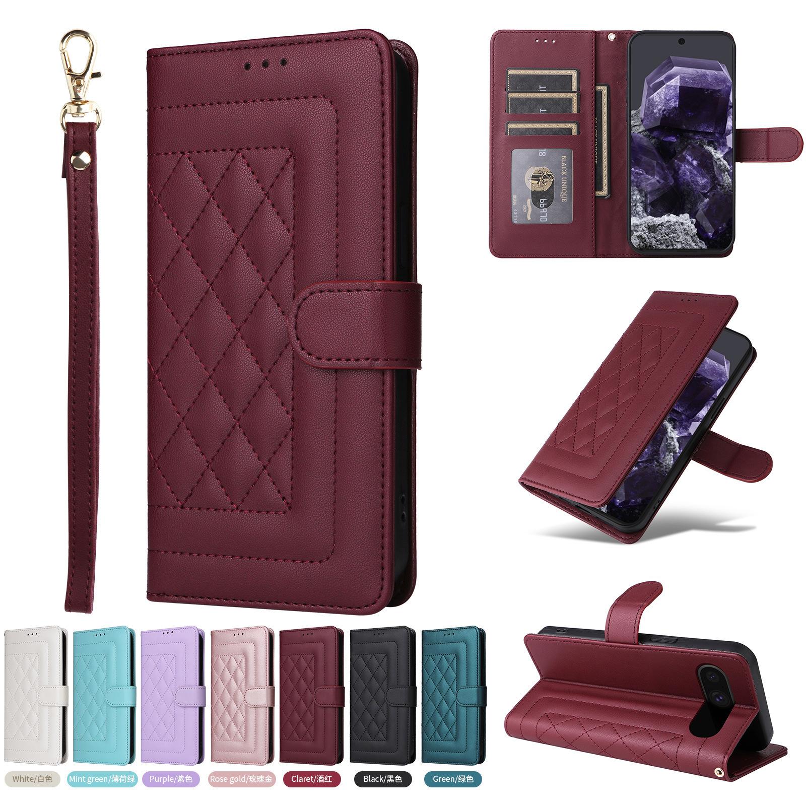 Funda de cuero con tarjetero para Samsung S24U, estilo romboidal, para Google Pixel 9PRO, aplicable al comercio exterior