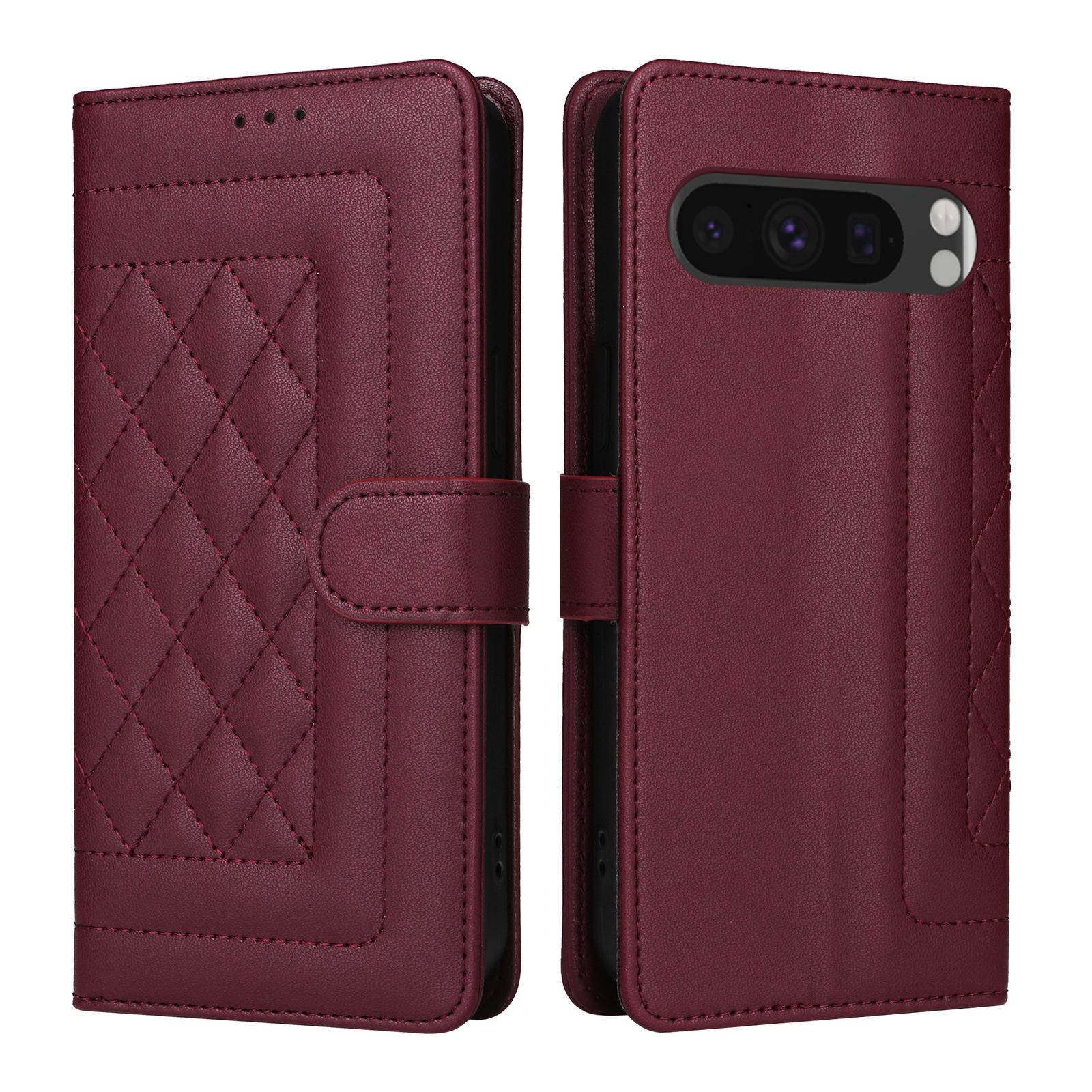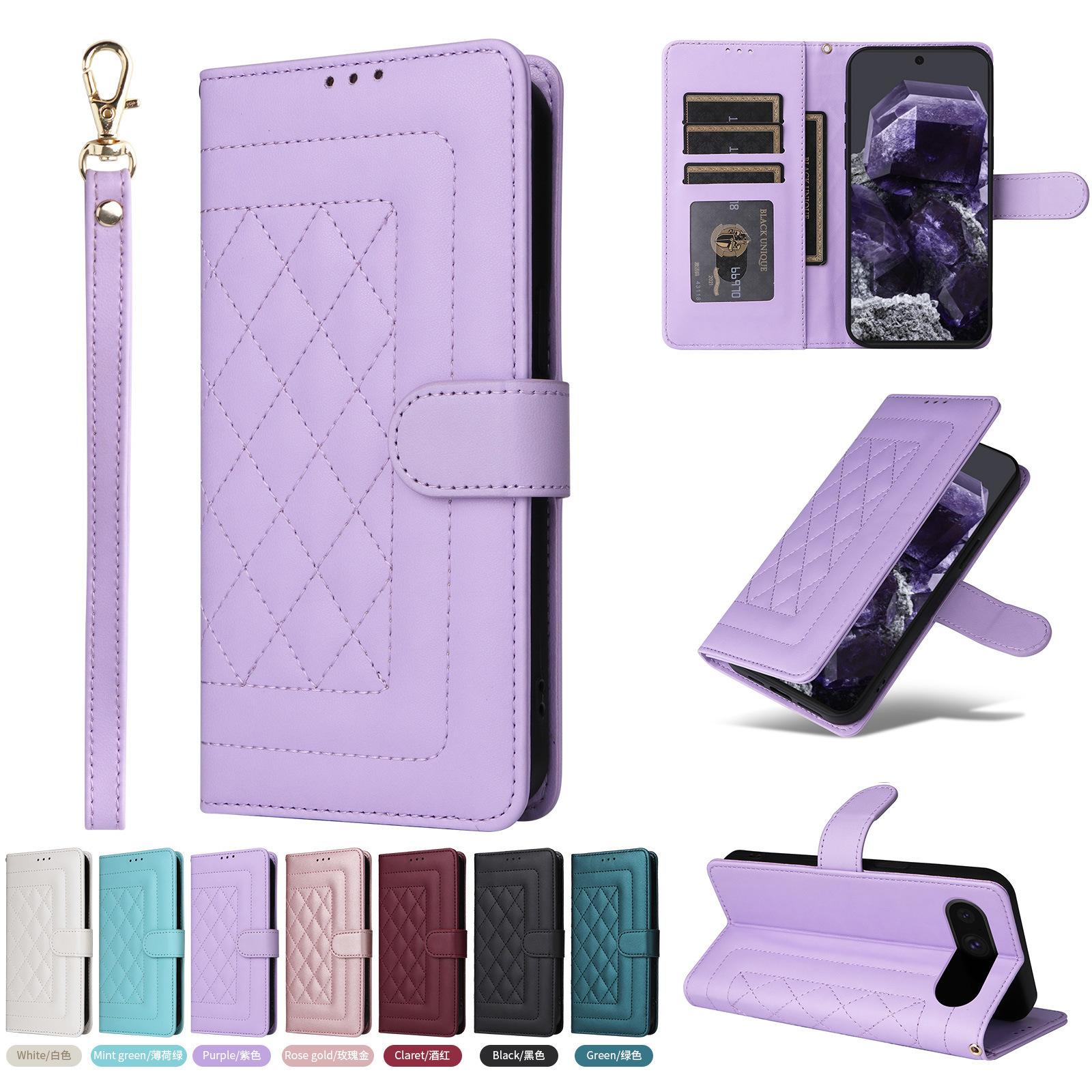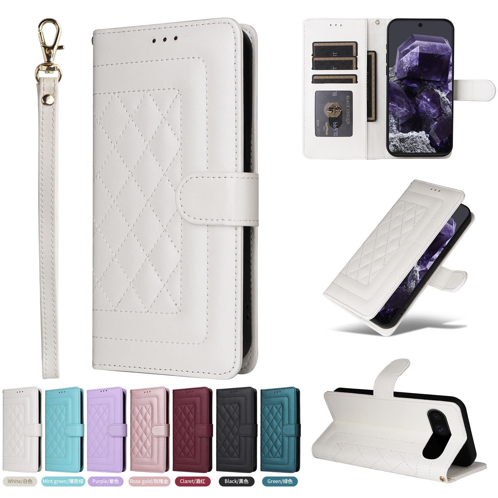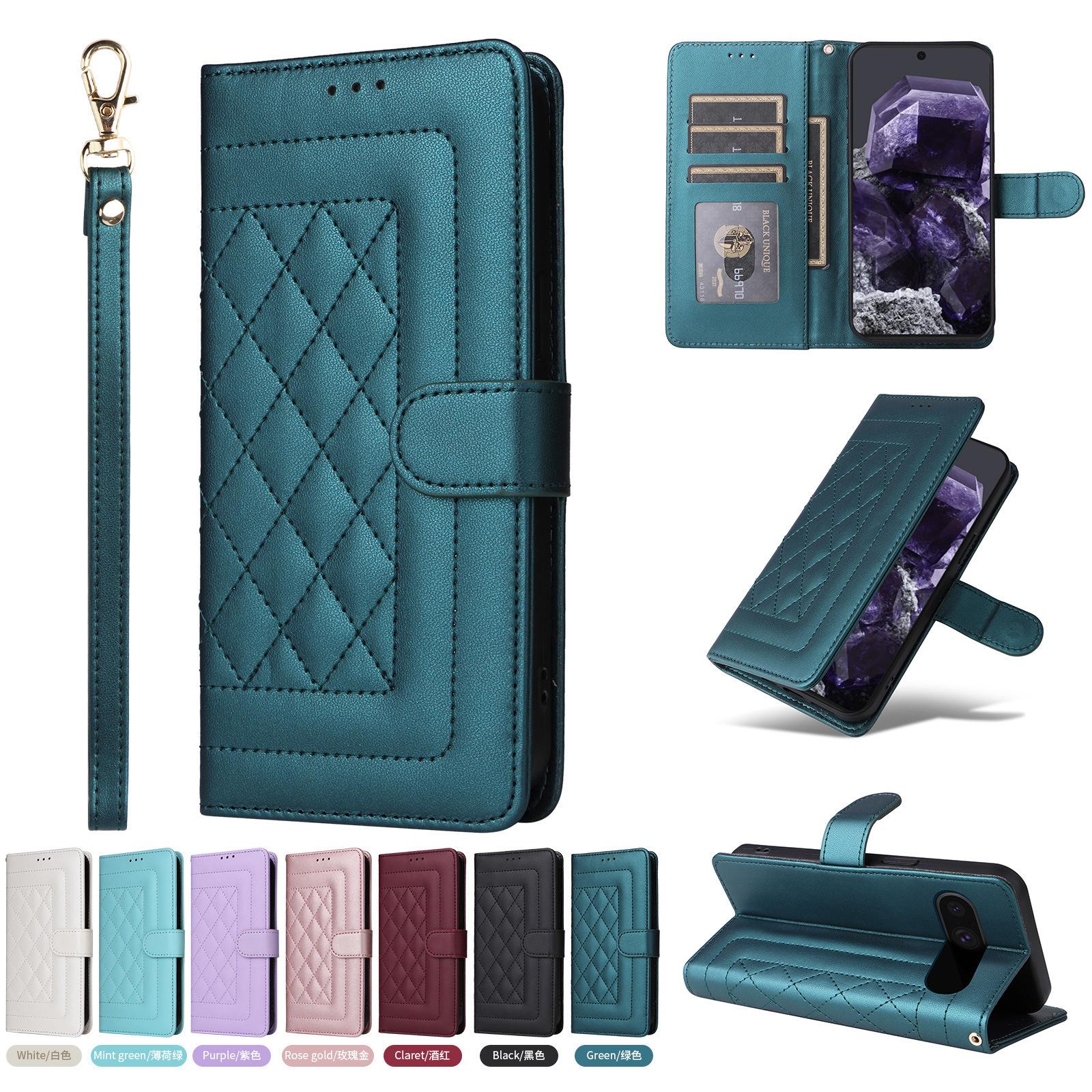 Funda de cuero con tarjetero para Samsung S24U, estilo romboidal, para Google Pixel 9PRO, aplicable al comercio exterior