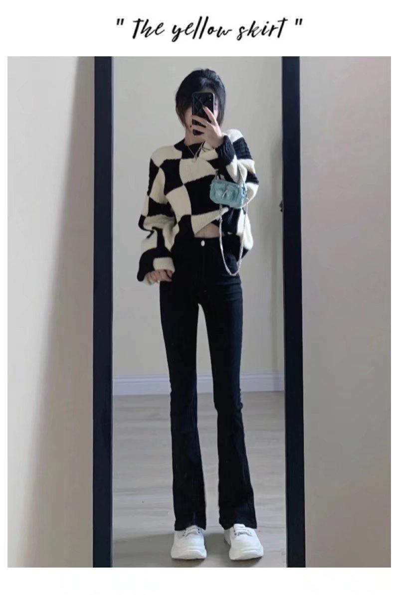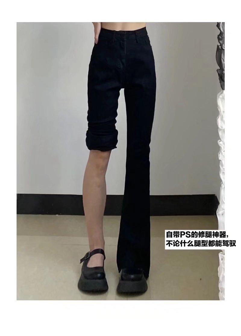 Pantalones vaqueros ajustados para mujer, nuevos de otoño, estilo Hong Kong, cintura alta, ajustados, elásticos, negros, con diseño de herradura acampanado