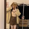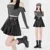 Falda negra cruzada a la cadera, estilo americano, para mujer, falda pequeña de cuero de otoño, falda adelgazante de cintura alta, falda corta, falda de línea A