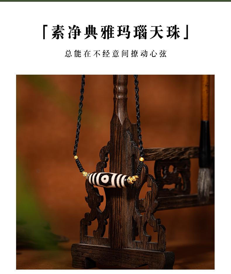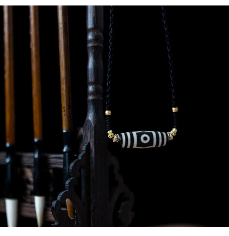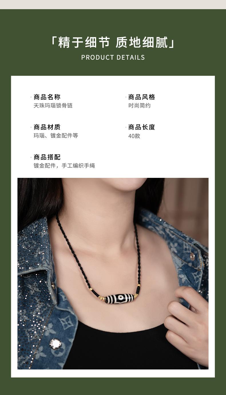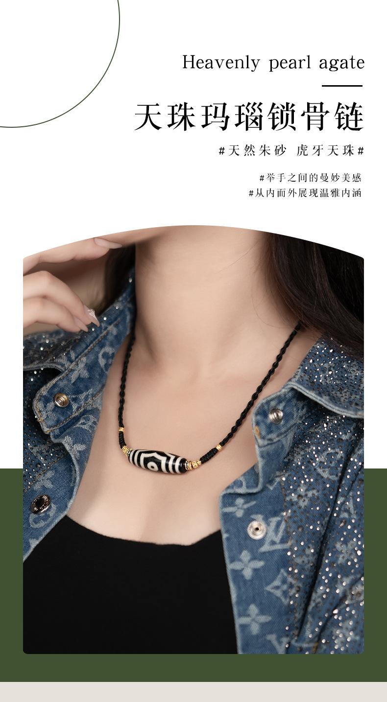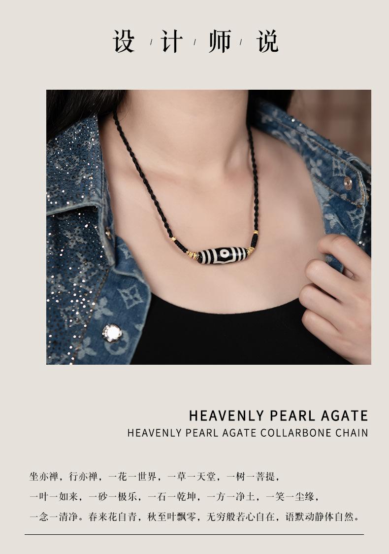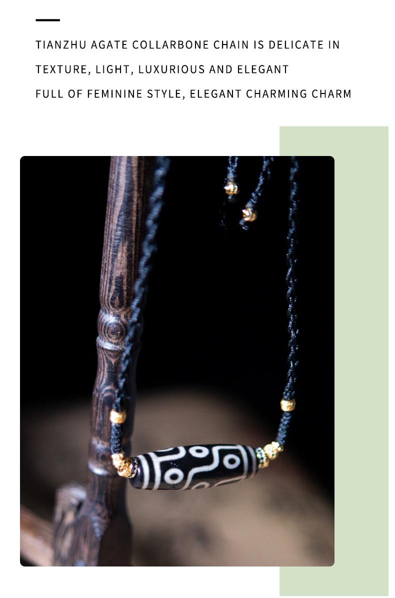 Collar de cuentas lisas de nueve ojos estilo Xizang para hombre y mujer, colgante de ágata, nuevo estilo chino, retro, accesorios de moda nacional, cadena para la clavícula