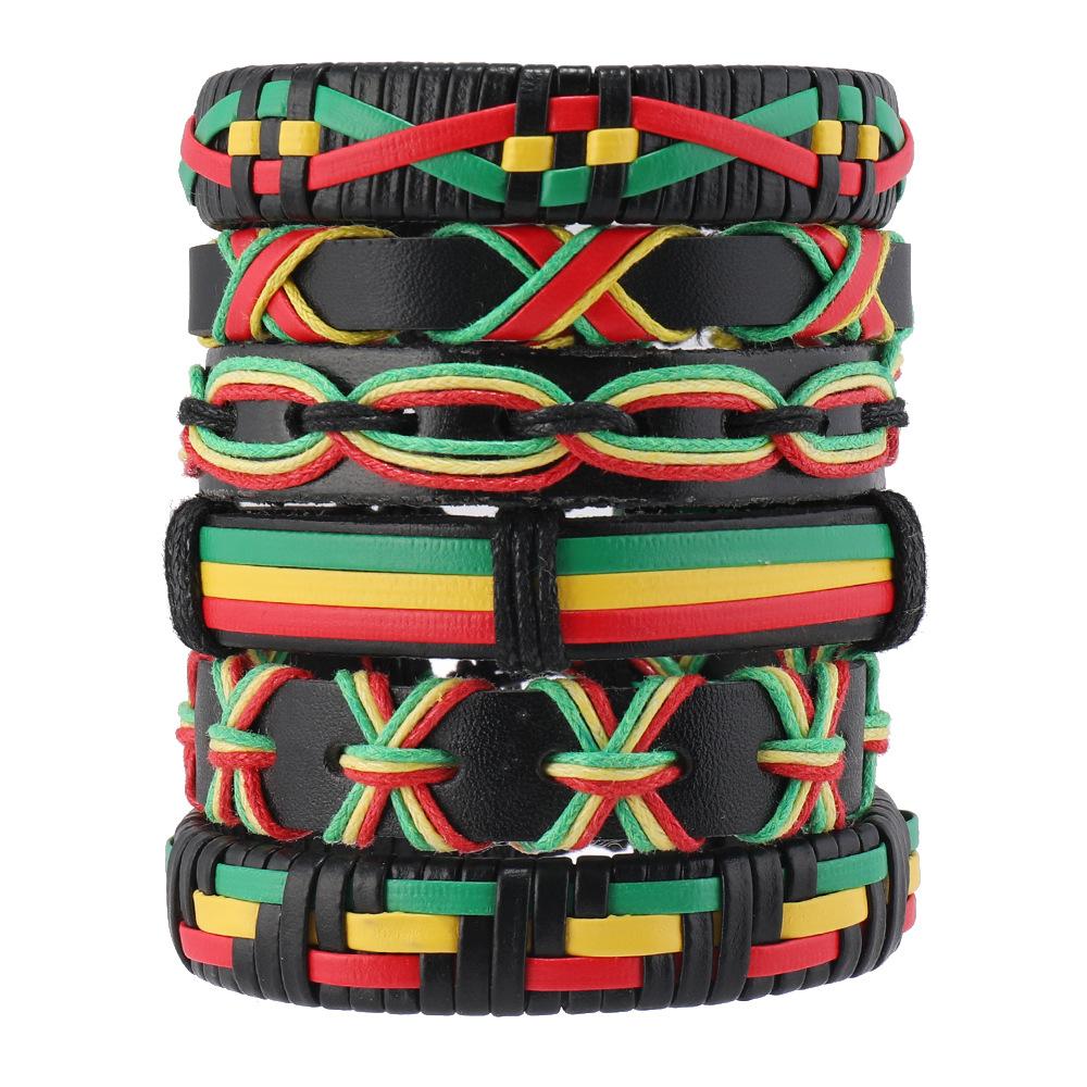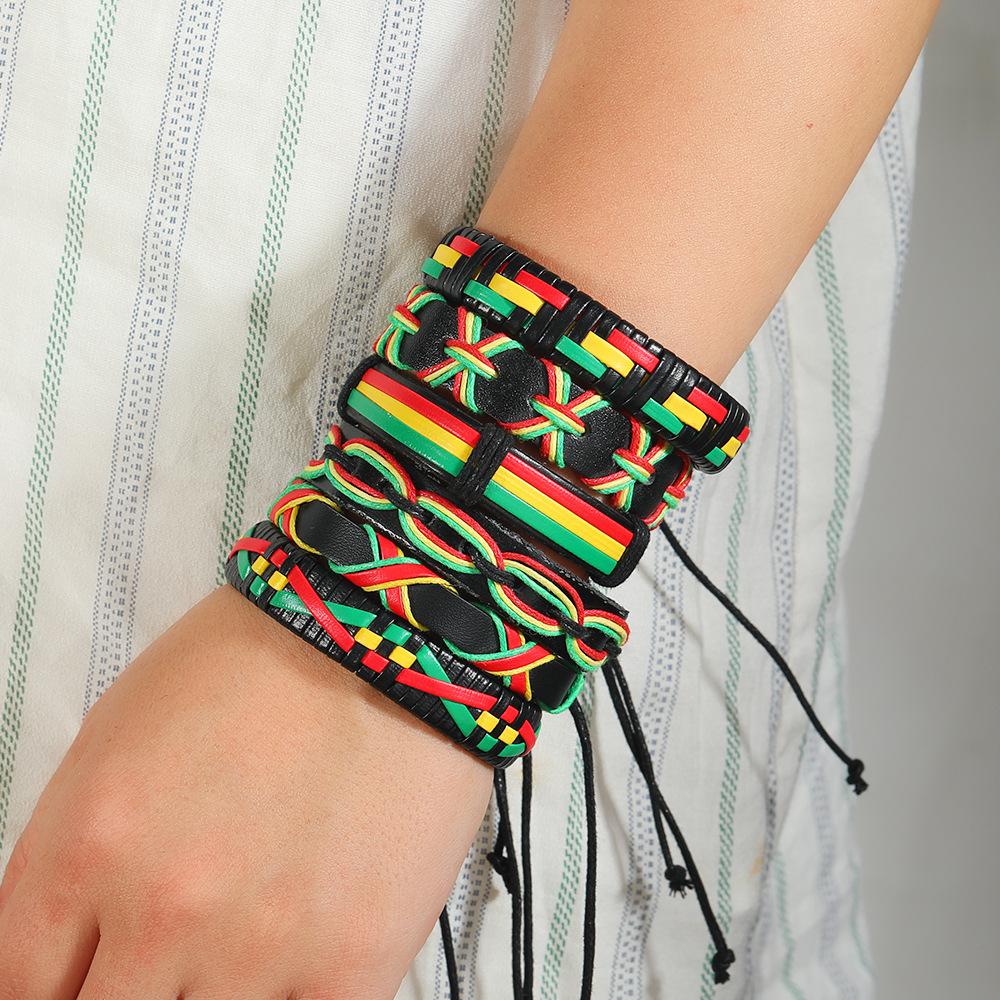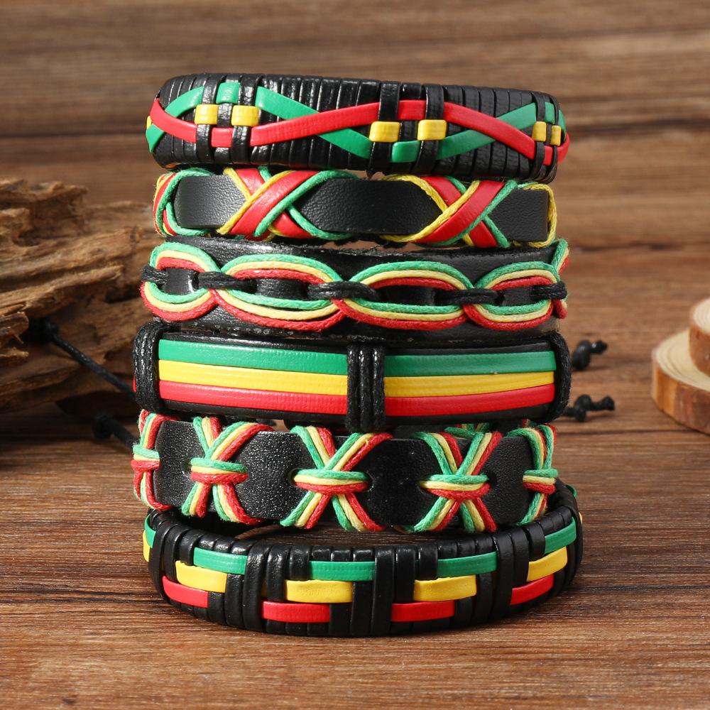 Pulsera de traje para hombre hecha a mano con cuerda de cuero tejida a mano de color de contraste de estilo deportivo casual de comercio electrónico transfronterizo de Amazon
