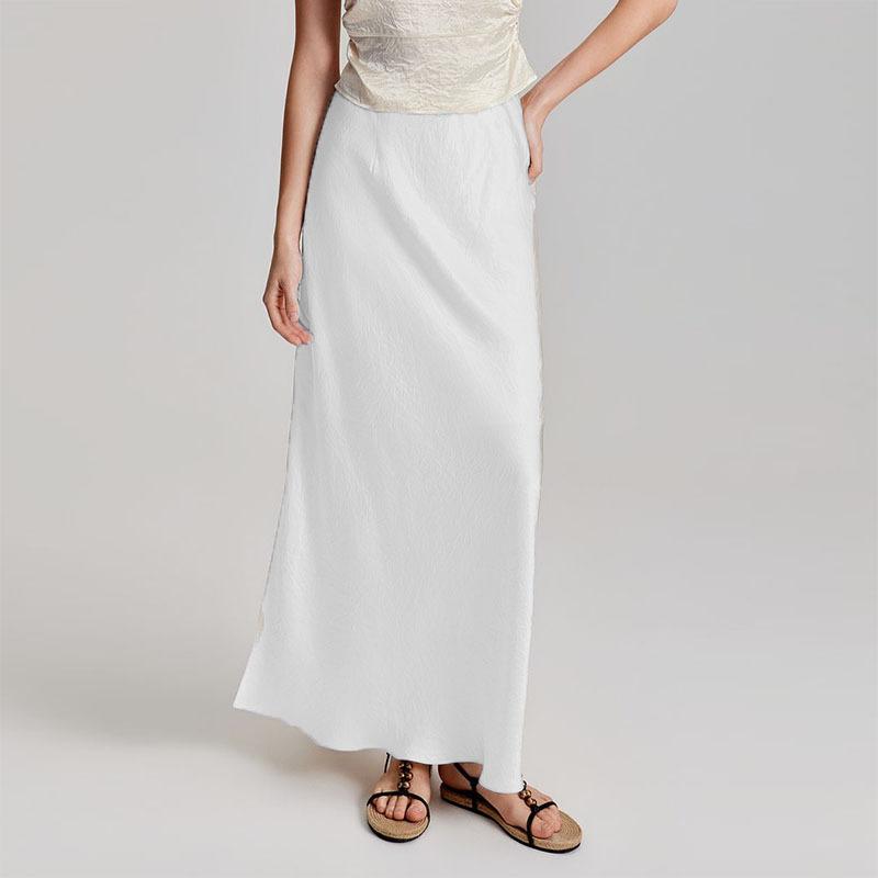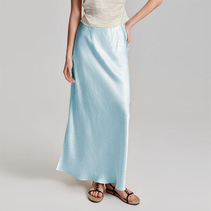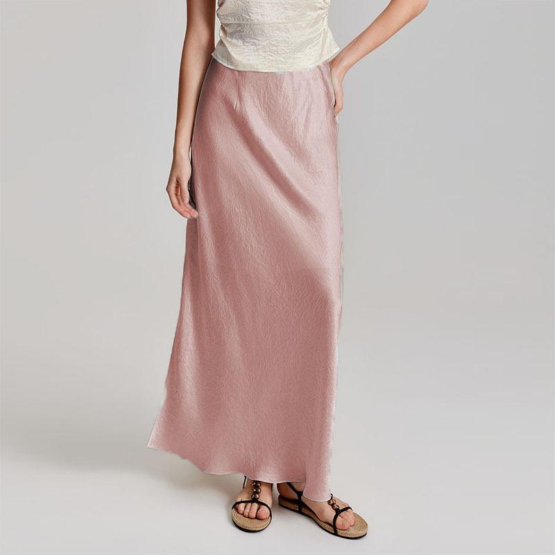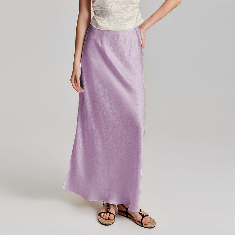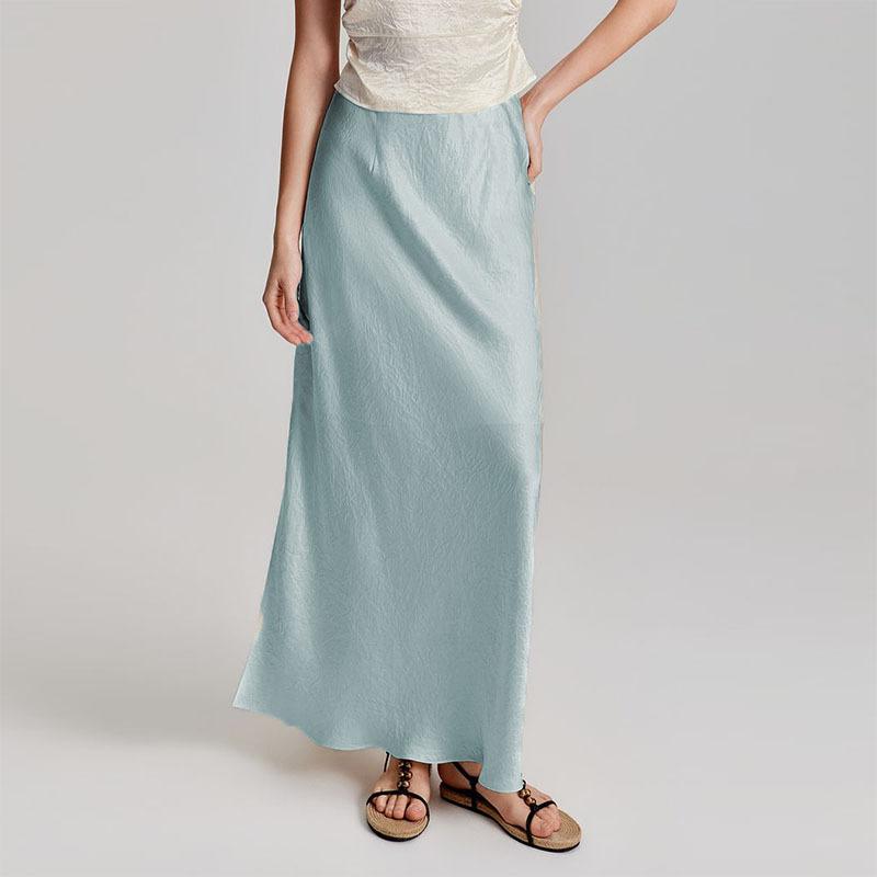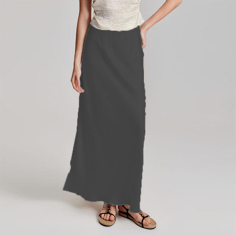 Vestido largo de satén de color liso de verano para mujer, falda de cintura alta a la moda, venta al por mayor