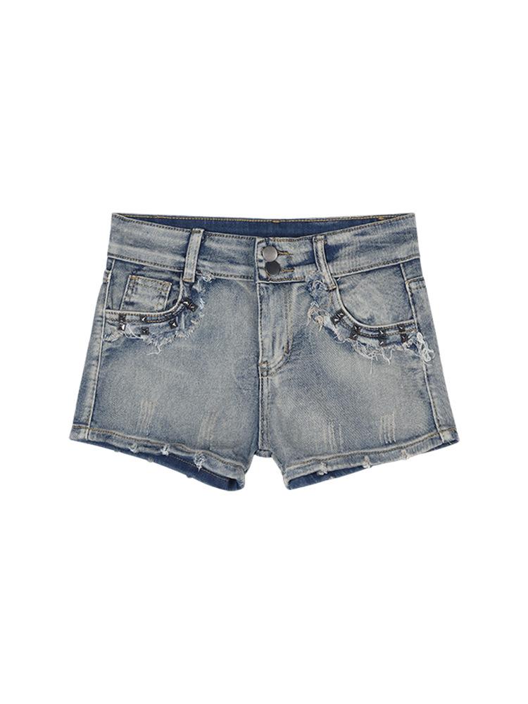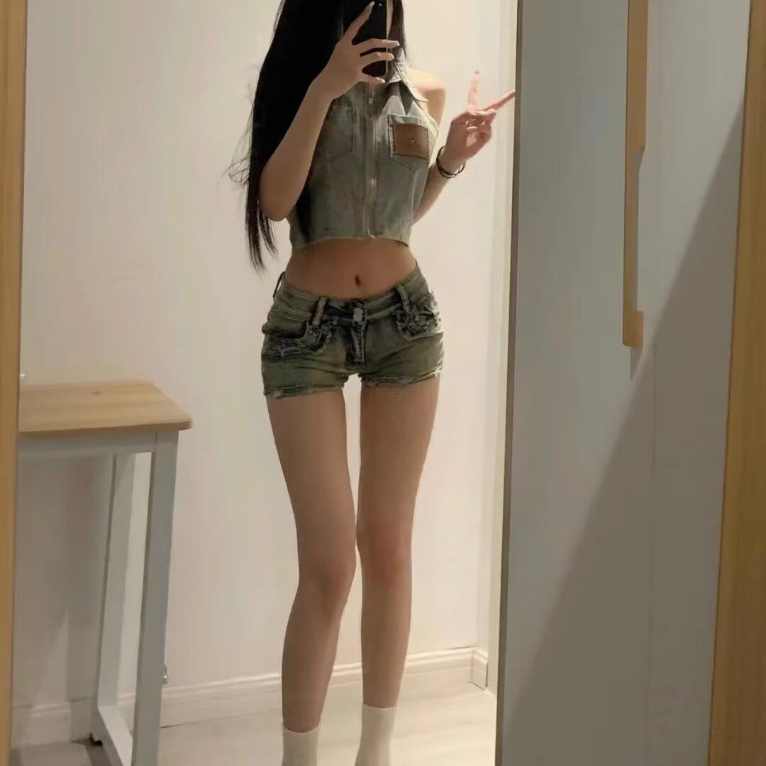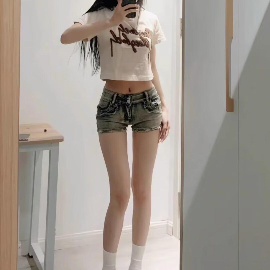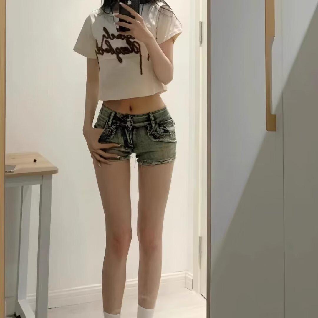 Pantalones cortos vaqueros de cintura baja estilo americano para mujer, ajustados, azules, rectos y sexis, de verano